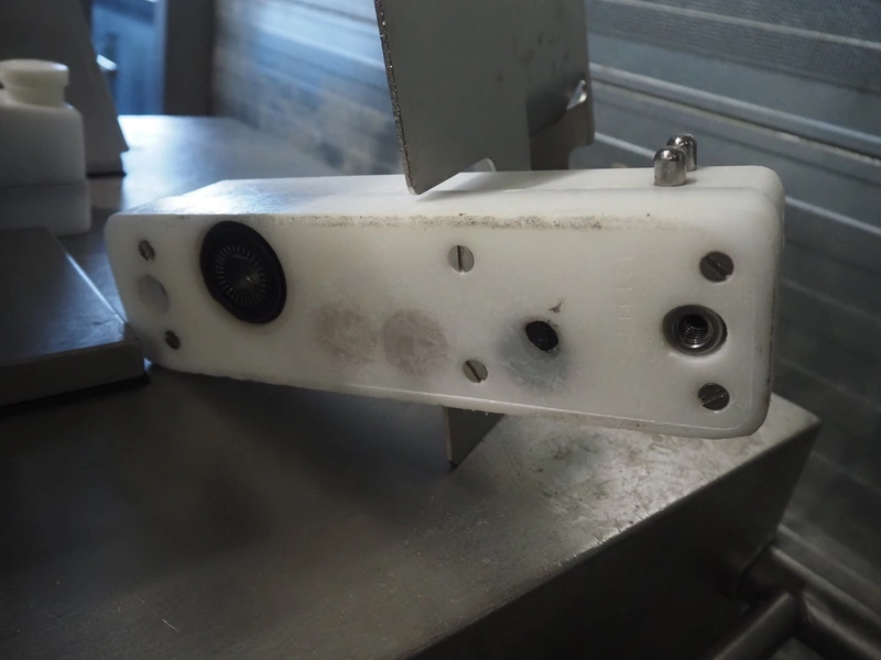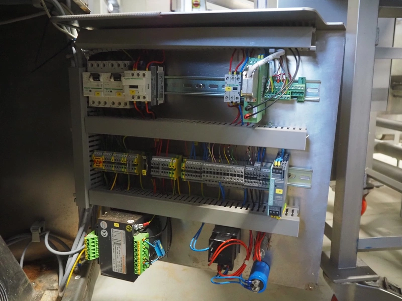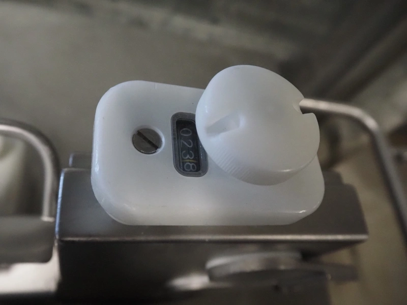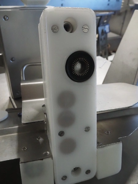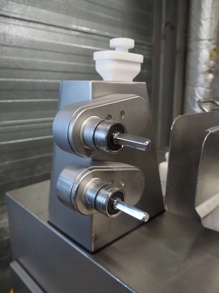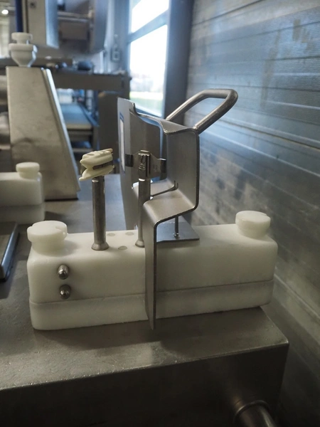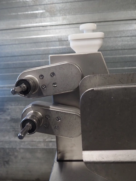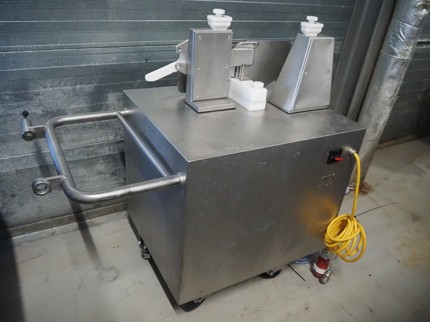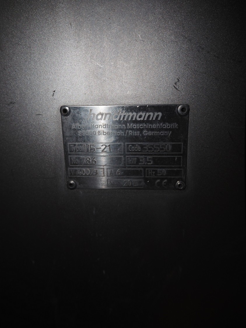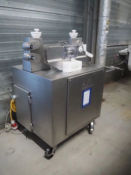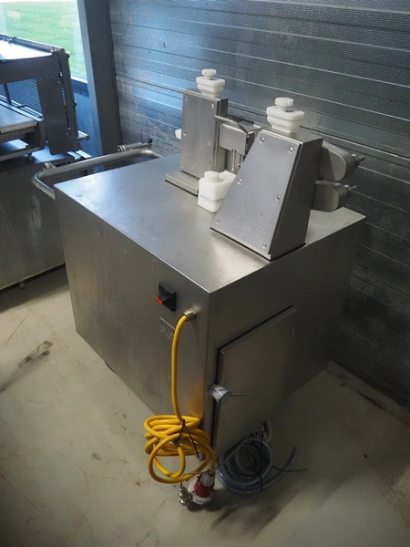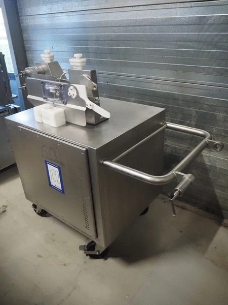 Handtmann mobile linking machine, type: 115-21, number: 786, year of construction: 2015, 400 V, 3 Ph, 50 Hz, 6 A, 3.5 kW, dimensions: 1360 mm x 740 mm x 1250 mm. Incomplete.