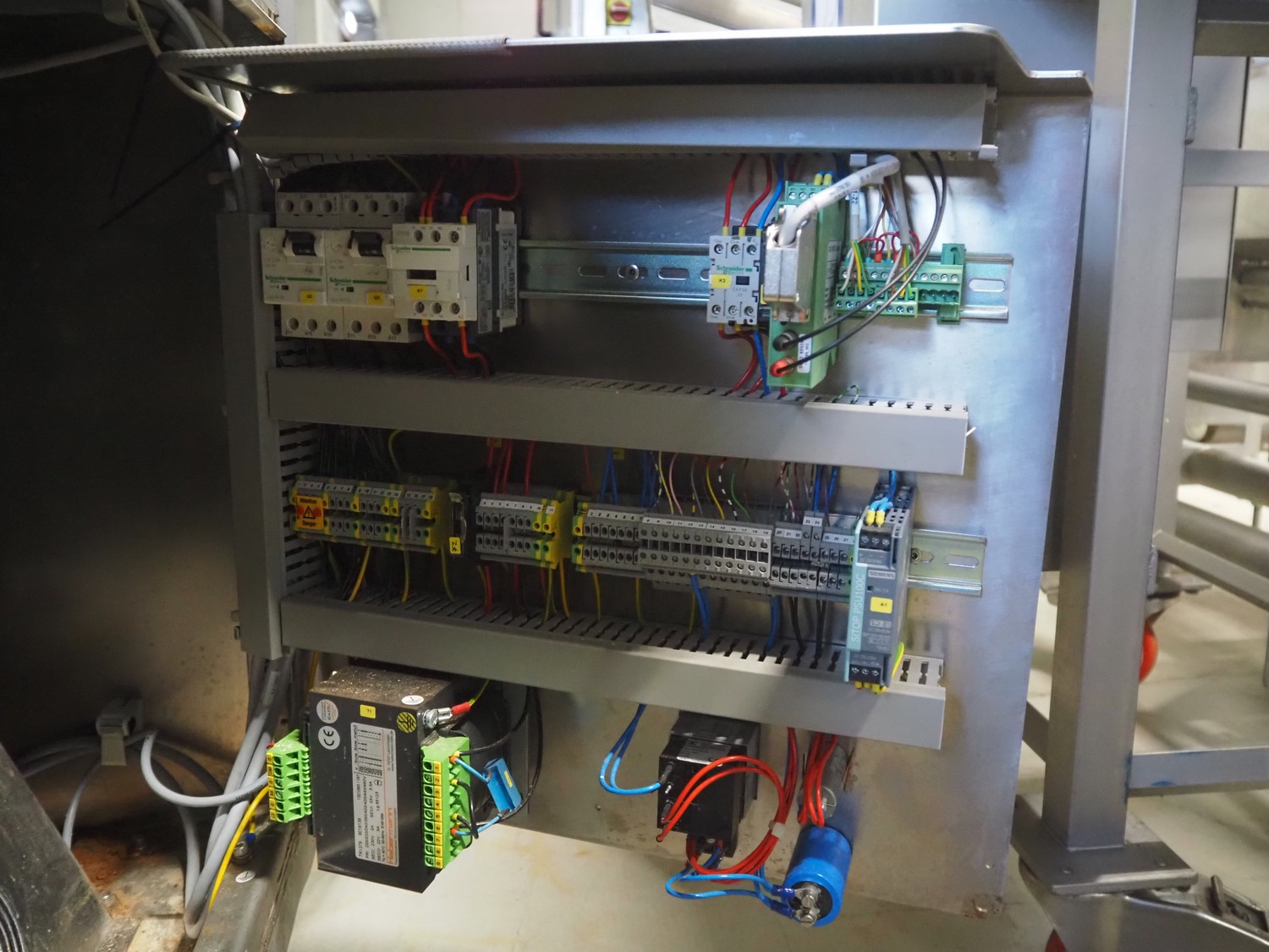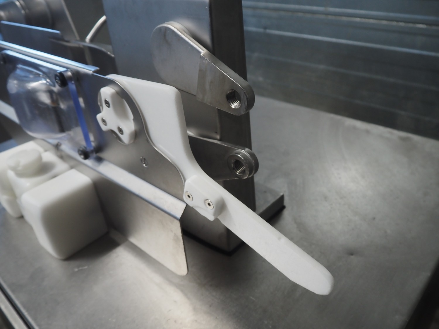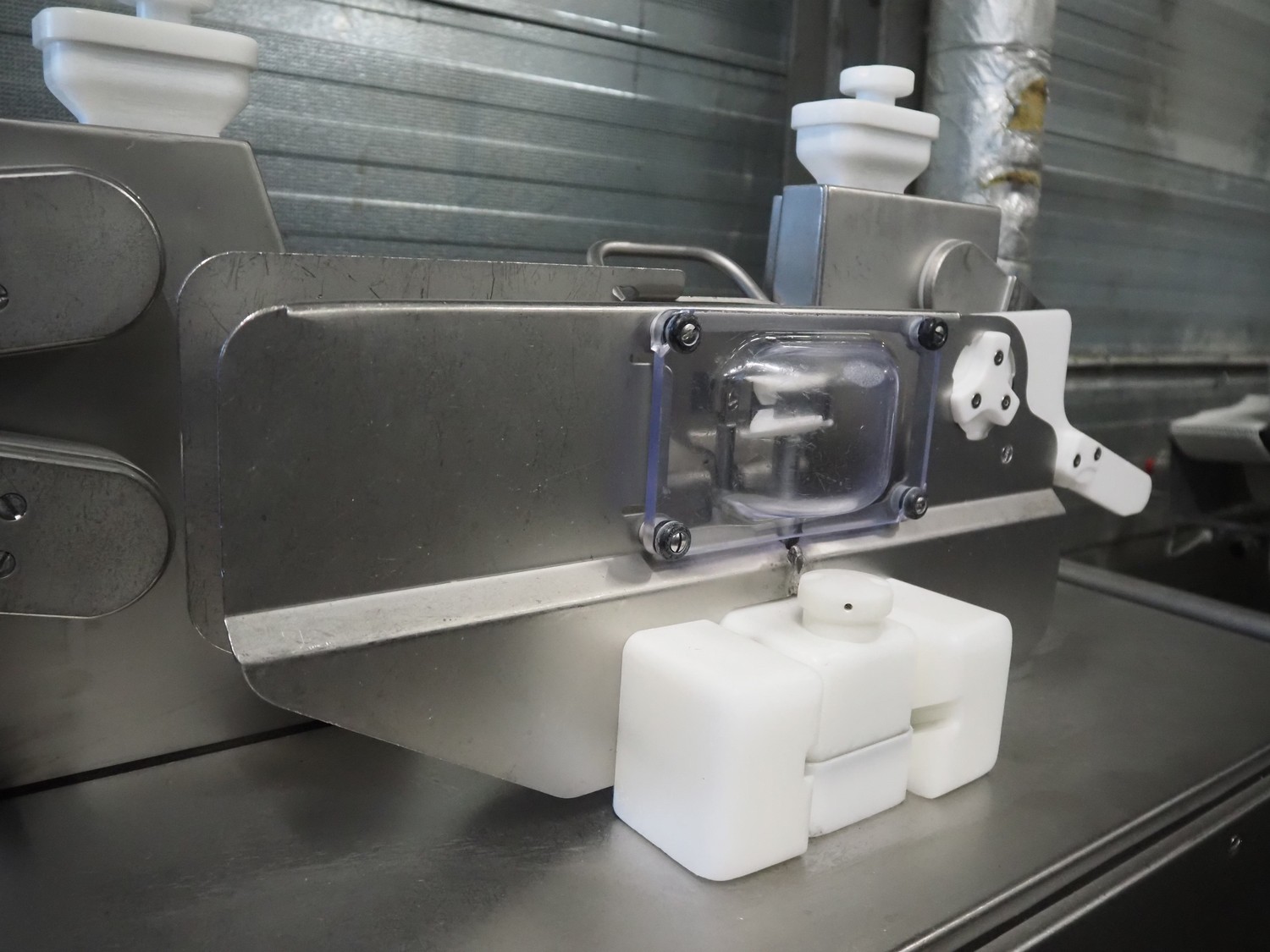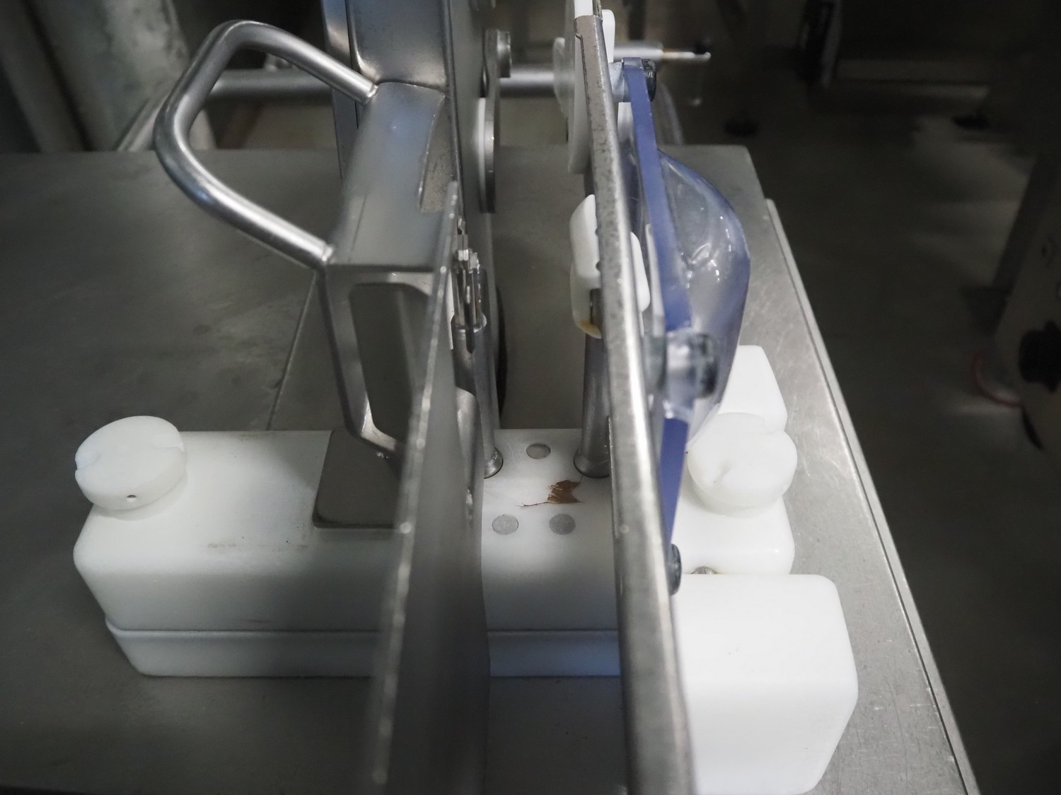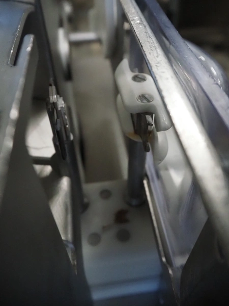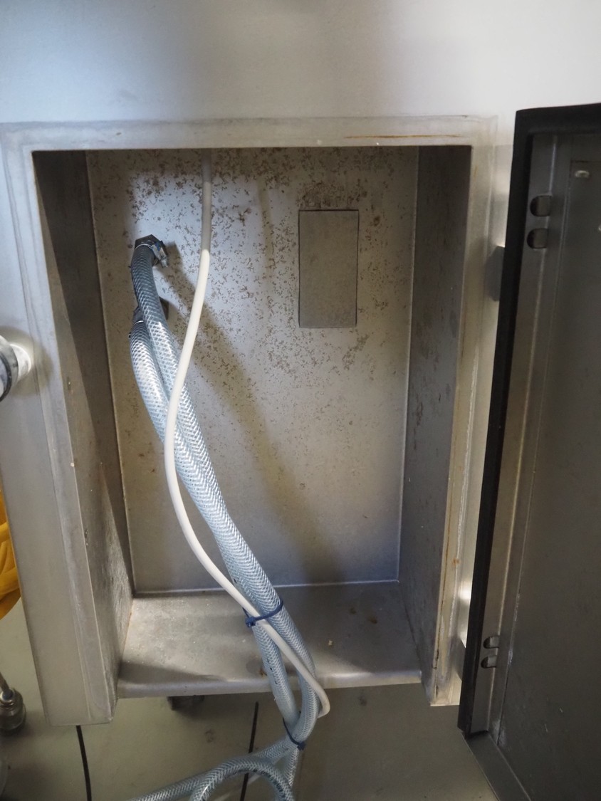 Handtmann mobile linking machine, type: 115-21, number: 786, year of construction: 2015, 400 V, 3 Ph, 50 Hz, 6 A, 3.5 kW, dimensions: 1360 mm x 740 mm x 1250 mm. Incomplete.