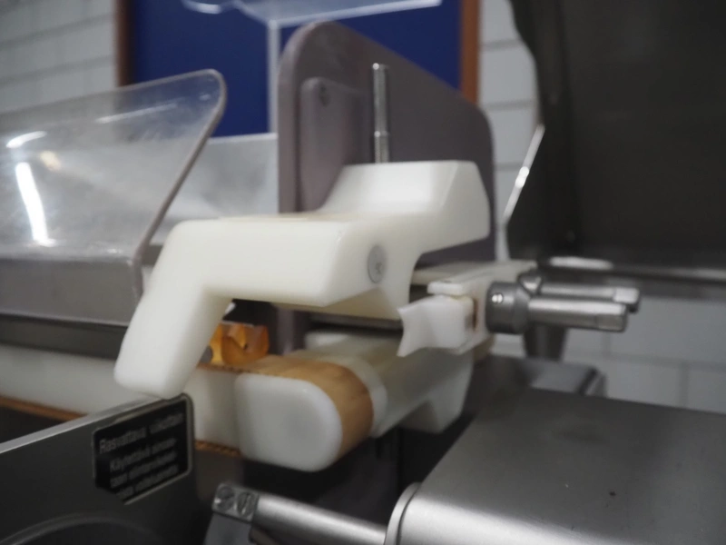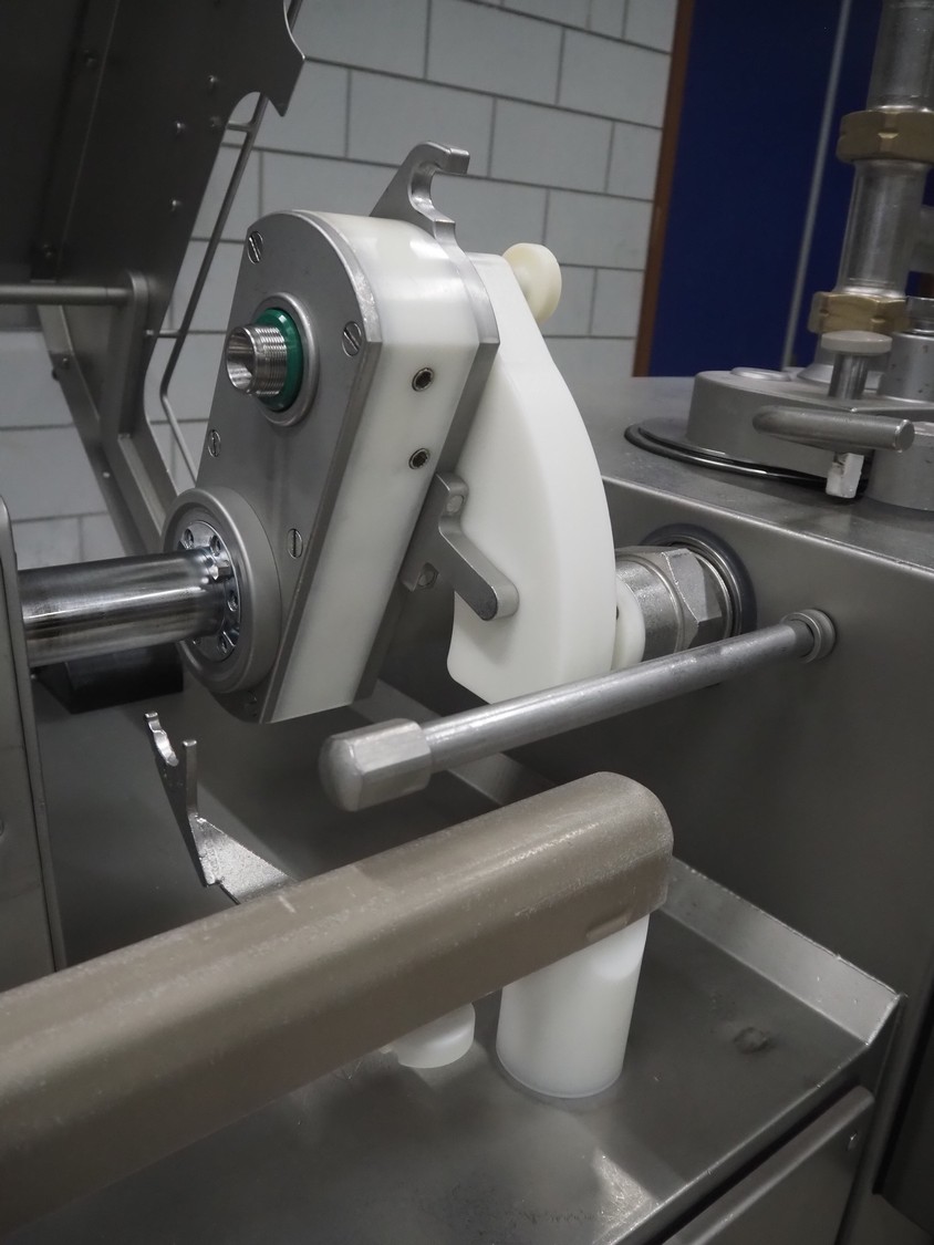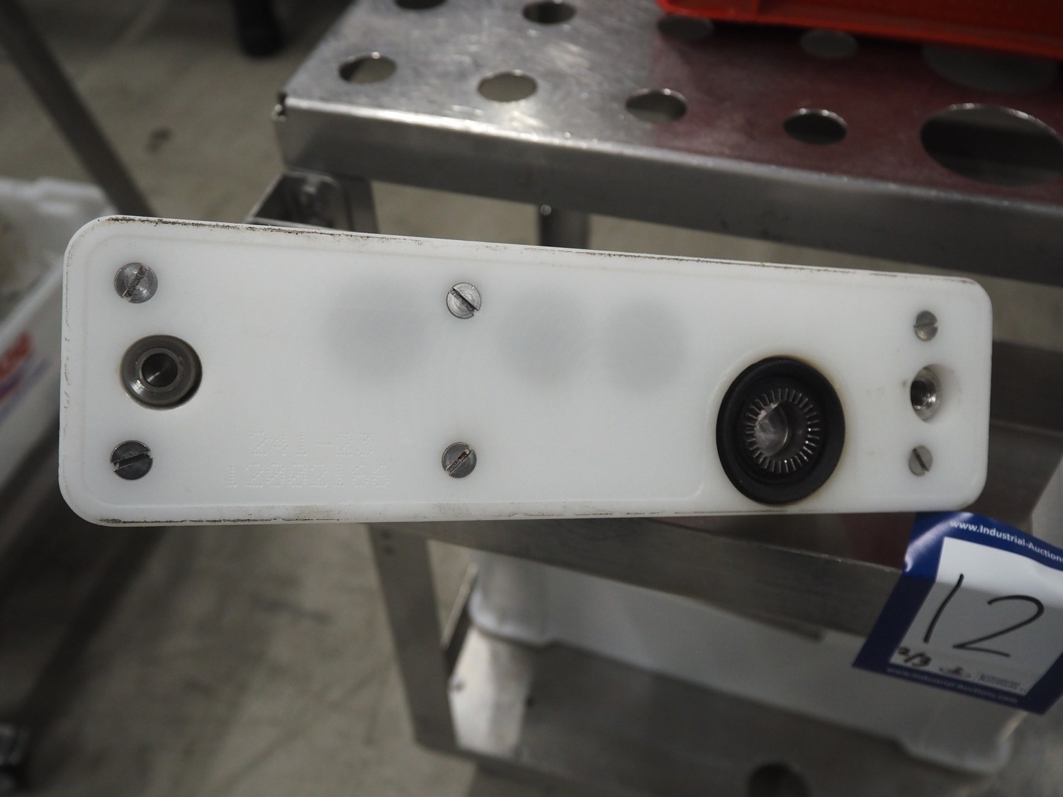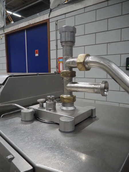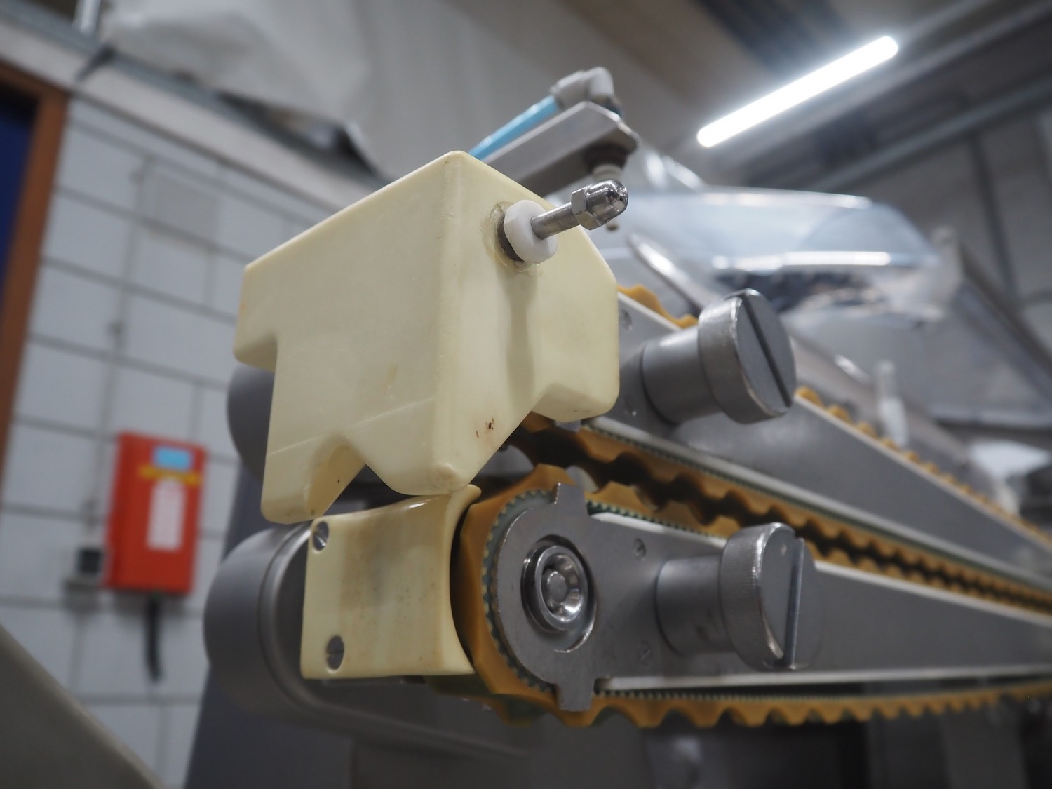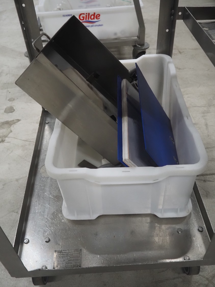 Handtmann mobile portioning and linking machine, type: 242-01, number: 501, year of construction: 2004, 400 V, 3 Ph, 50 Hz, 15 A, 10 kW, dimensions: 2600 mm x 880 mm x 1780 mm. Including 2 tool trolleys, dimensions trolleys: 1050 mm x 750 mm x 1000 mm and 900 mm x 860 mm x 880 mm.