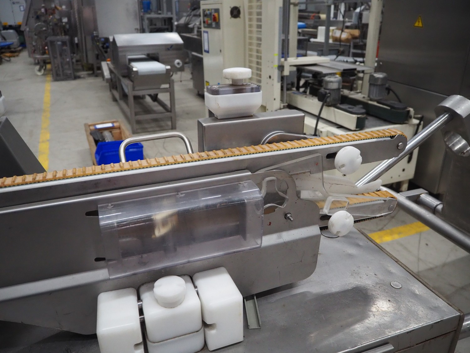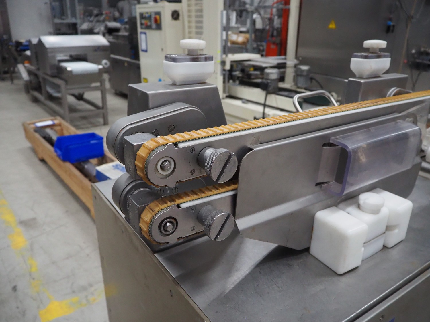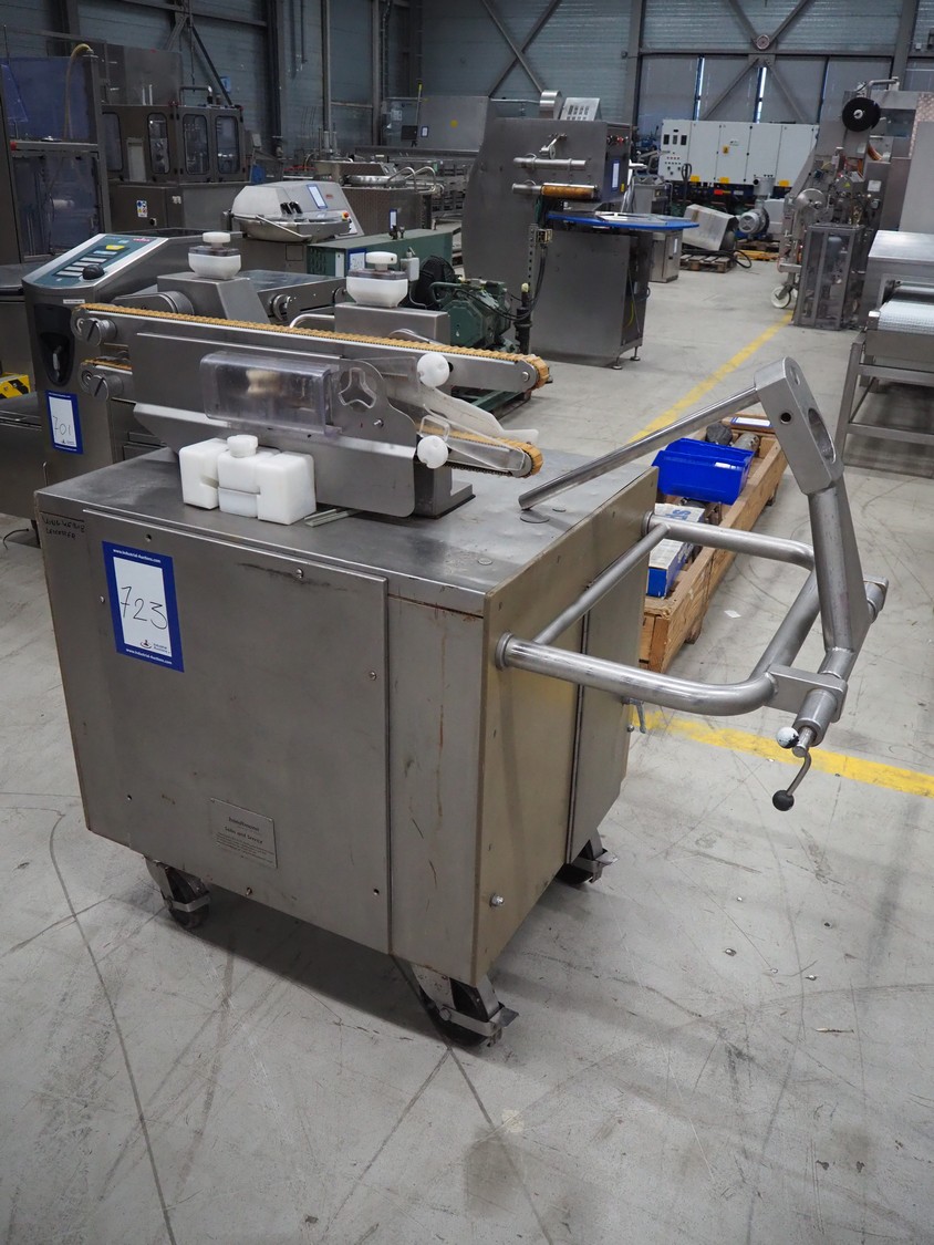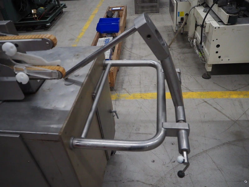 Handtmann mobile linking machine, type: 115-21, number: 524, year of construction: 2001, 400 V, 3 Ph, 50 Hz, 3.5 A, 2.5 kW, dimensions: 1300 mm x 720 mm x 1280 mm.