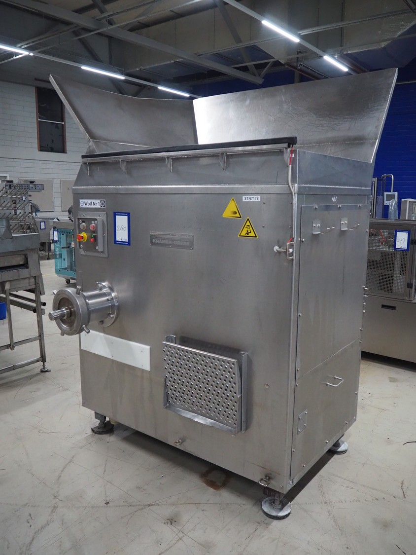 Krämer + Grebe grinder, type: SC-WW, number: 282/118, year of construction: 1991, 380 V, 3 Ph, 50 Hz, 117/160 A, plate diameter: 200 mm, total dimensions: 1750 mm x 1350 mm x 2550 mm.