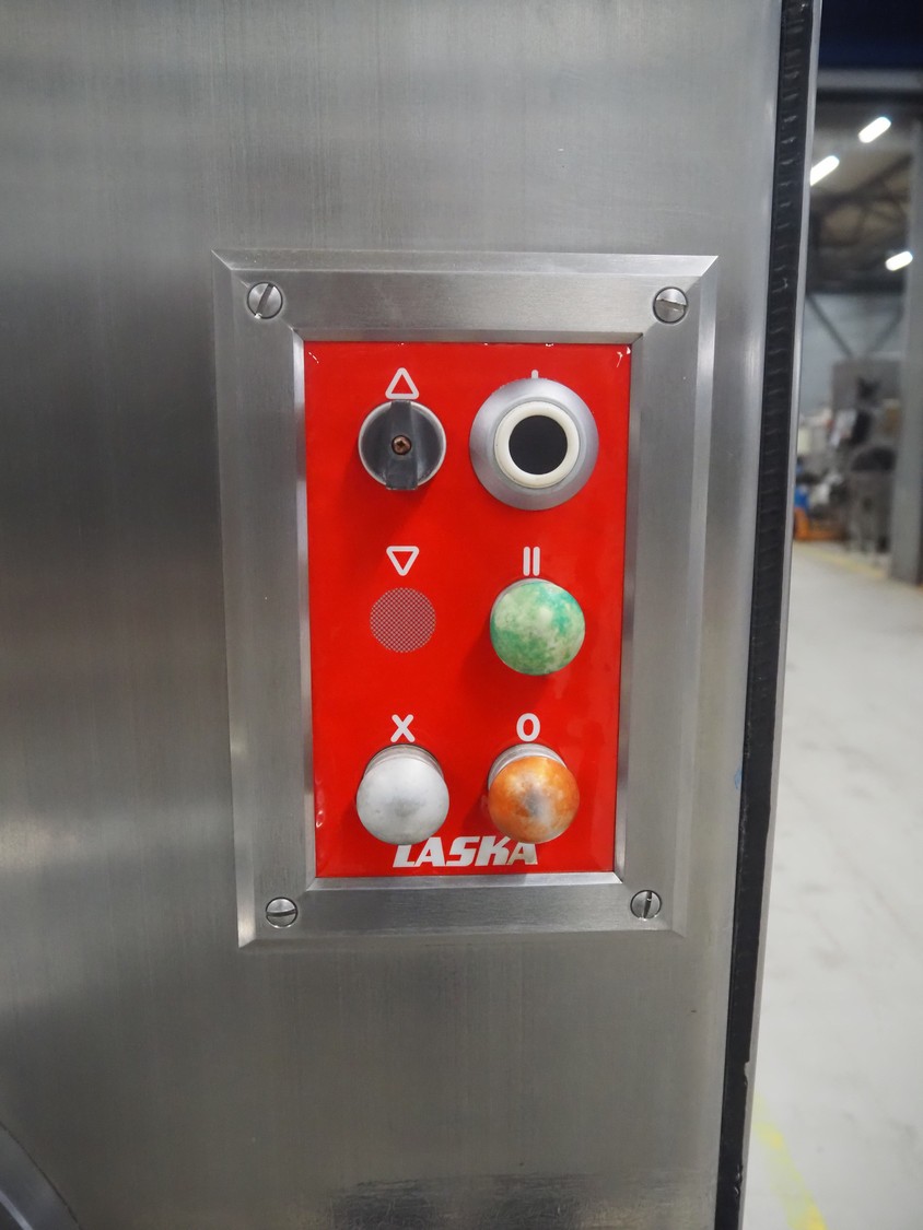 Laska Maschinenfabrik grinder, type: WW 280 2 GX, number: 12325, year of construction: 2007, 400 V, 3 Ph, 50 Hz, 230 A, 127 kW, weight: 2700 kg, plate diameter: 280 mm, total dimensions: 2400 mm x 1910 mm x 2200 mm.