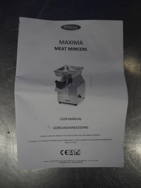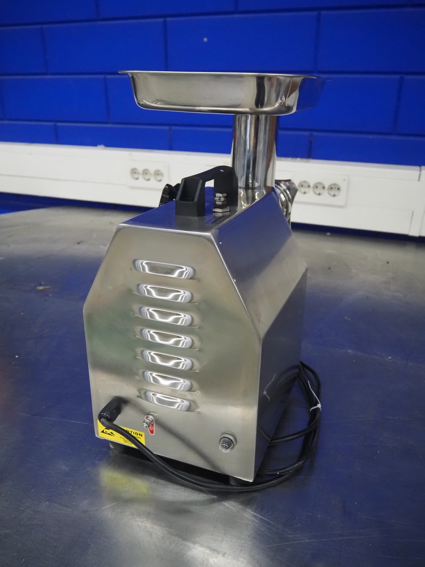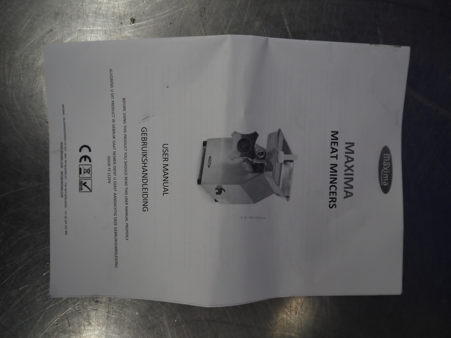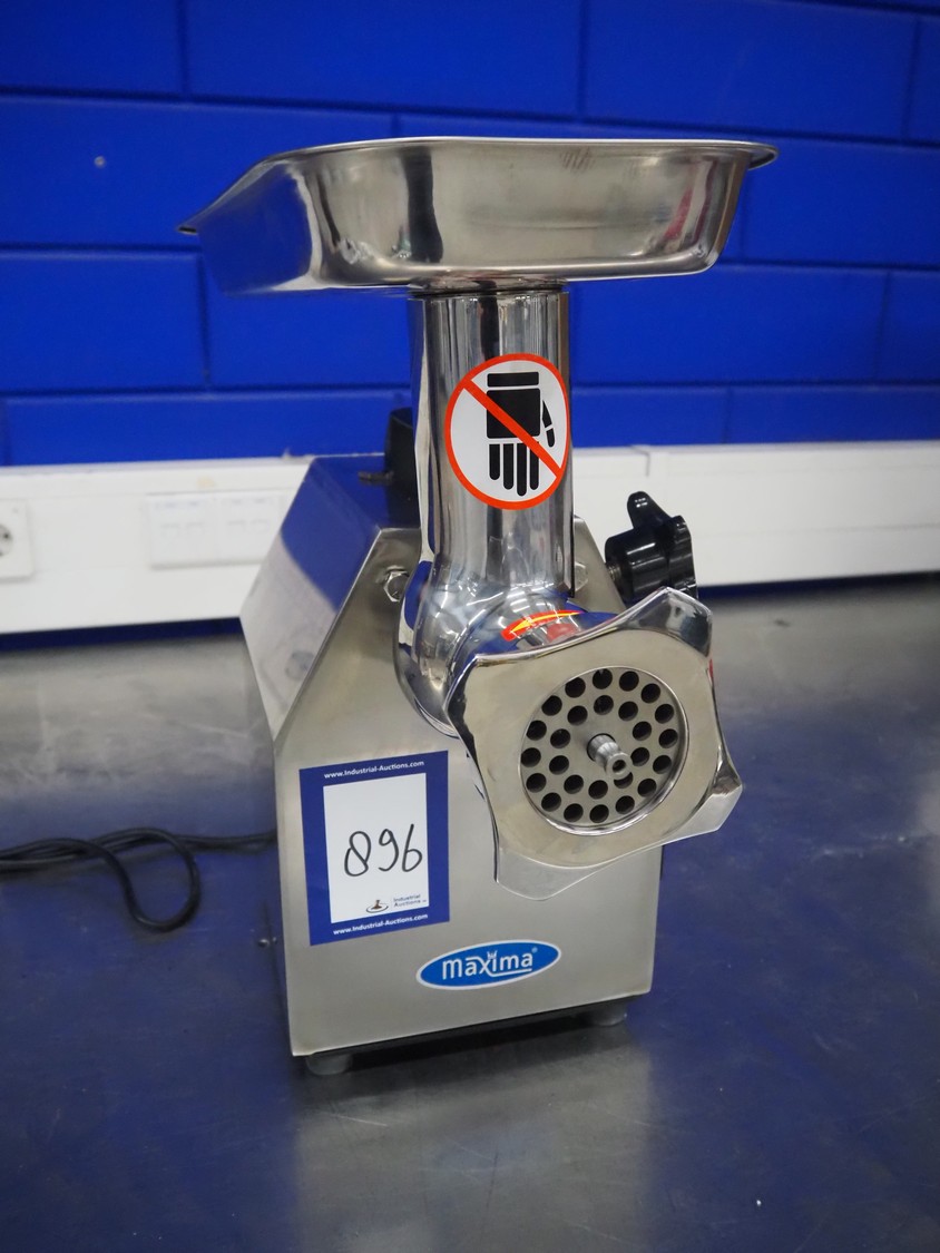 Maxima table model grinder, model: 09300445, serial number: MMM12-S597-01202410-015, 230 V, 1 Ph, 50 Hz, 750 W, weight: 23 kg, plate diameter: 70 mm, total dimensions: 440 mm x 250 mm x 460 mm.