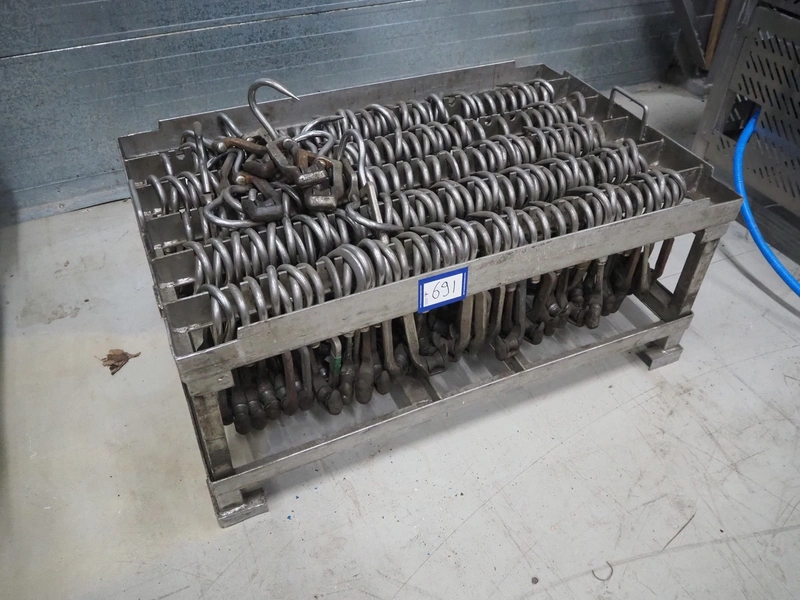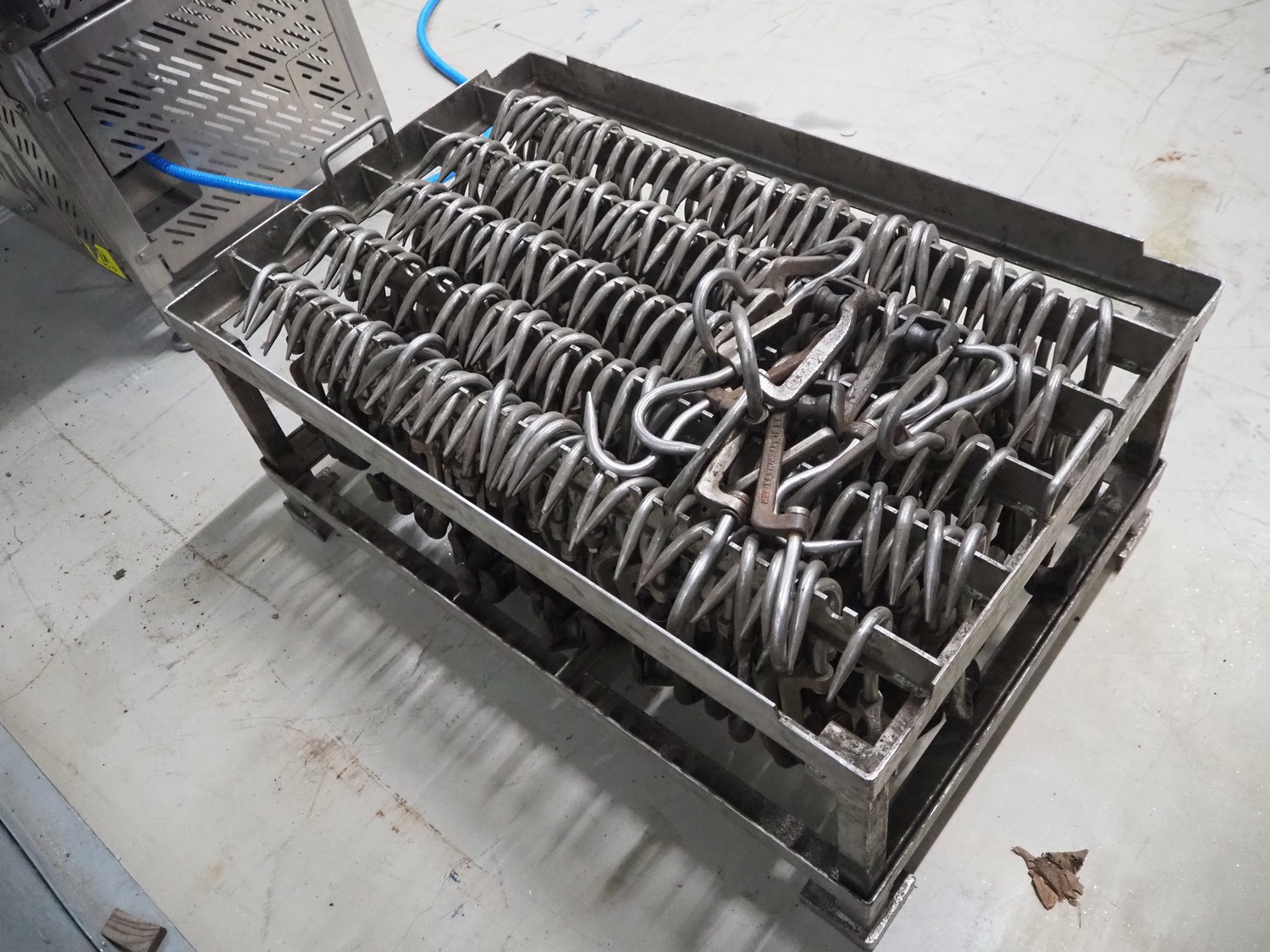 S/s rack with large amount of meat hooks, total dimensions: 1200 mm x 800 mm x 580 mm.