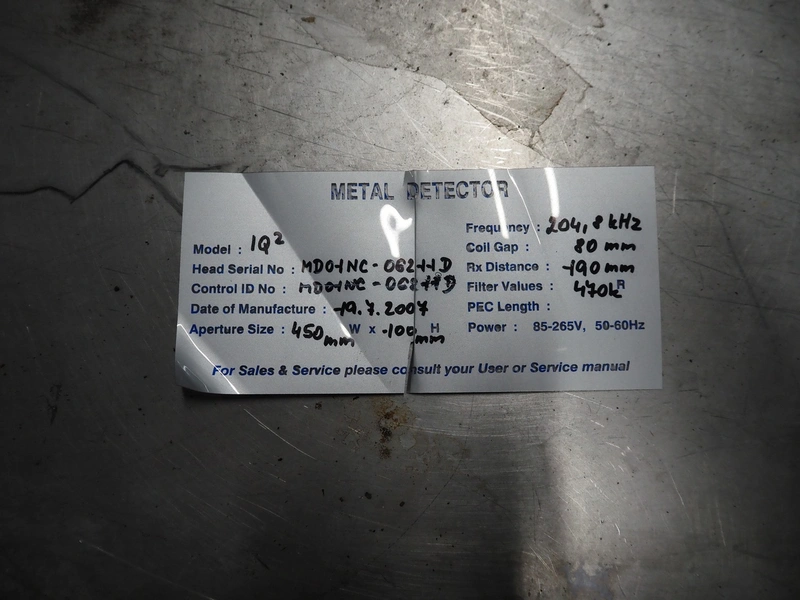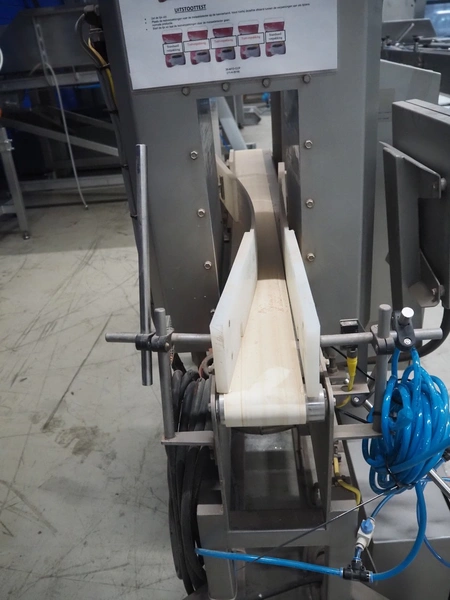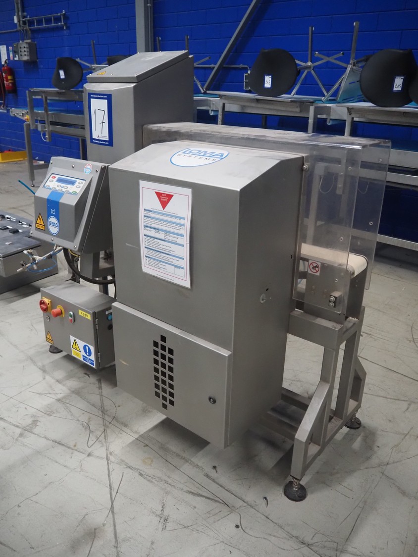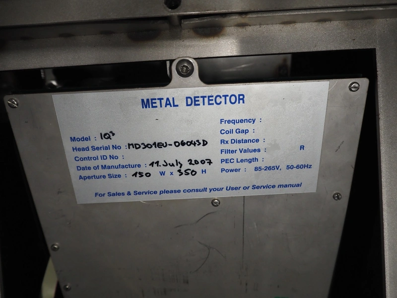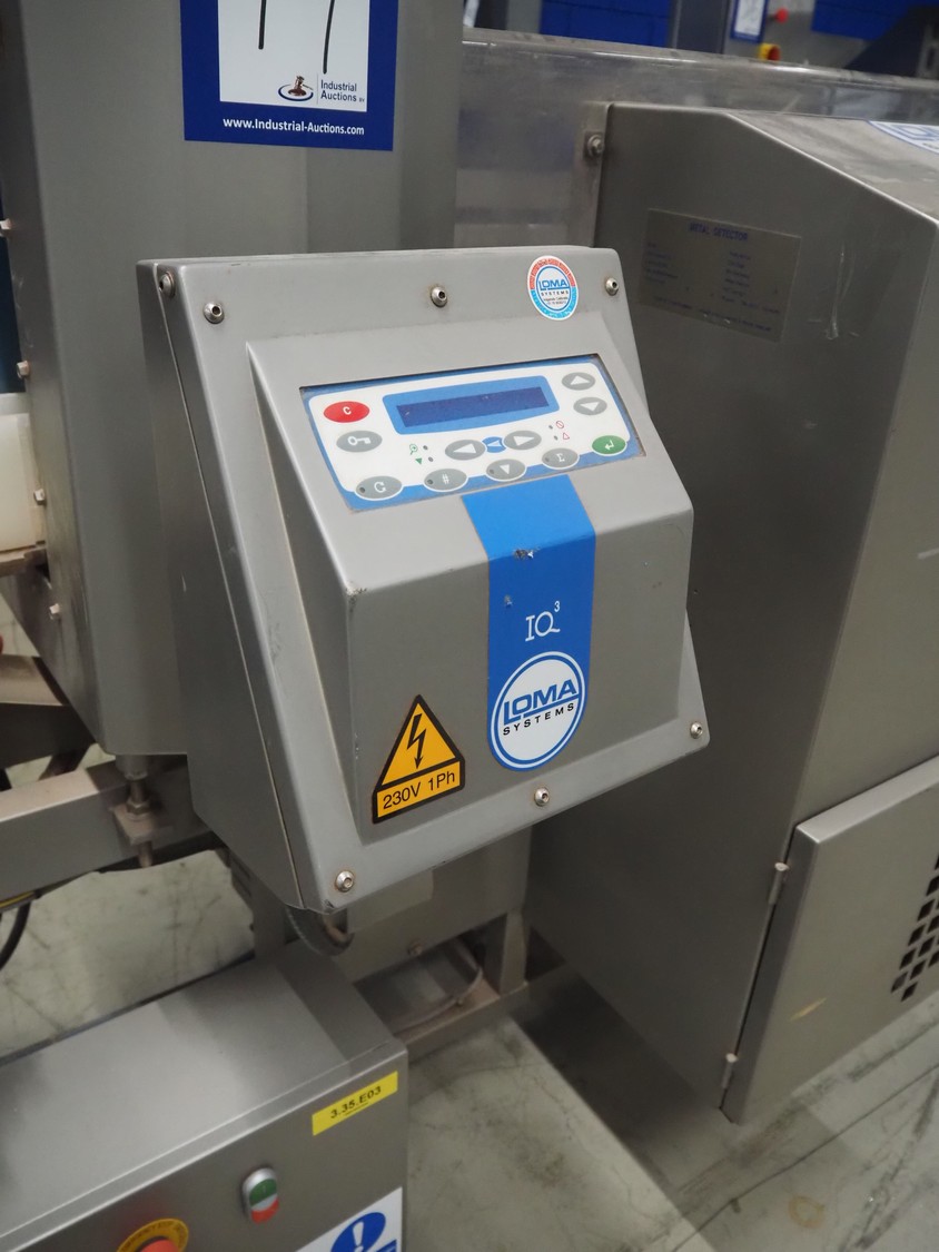 Loma systems metal detector with rejector, model: IQ3, serial number: DMC70617-06042D, year of construction: 2007, 380 V, 3 Ph, 50 Hz, 1.2 A, plastic belt, belt width: 100 mm, clearence: 315 mm x 150 mm, total dimensions: 1530 mm x 770 mm x 1470 mm.