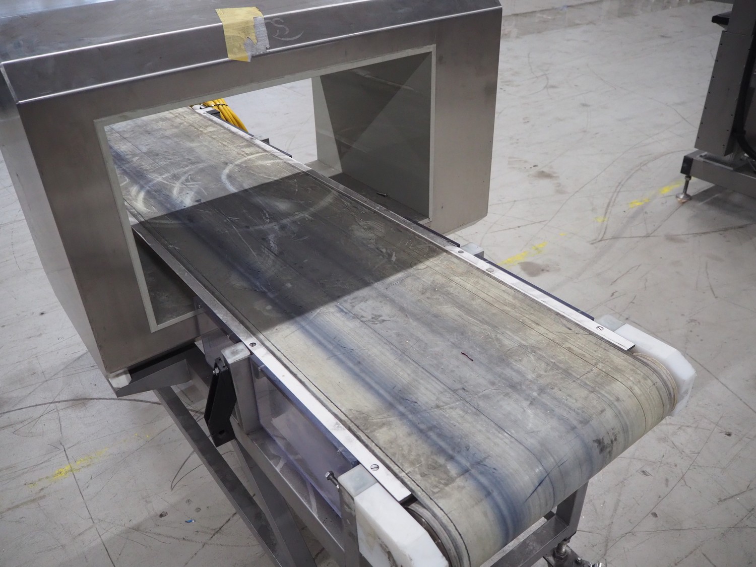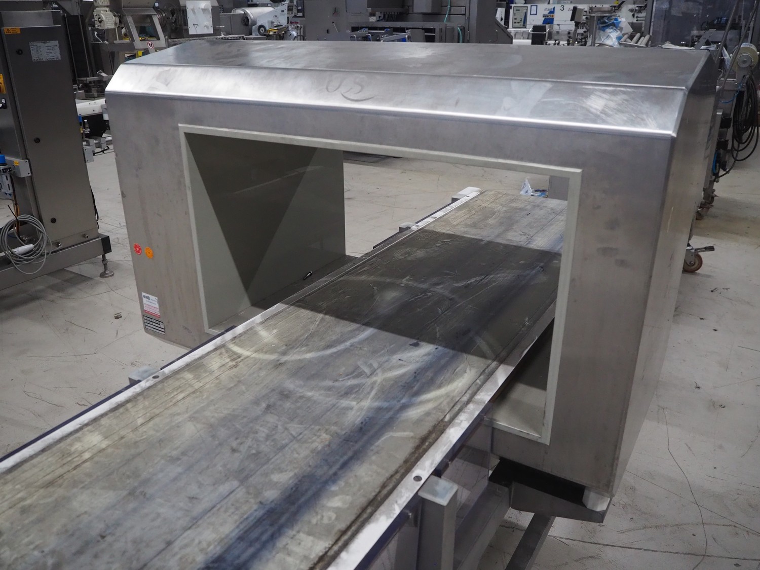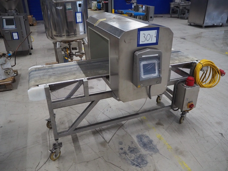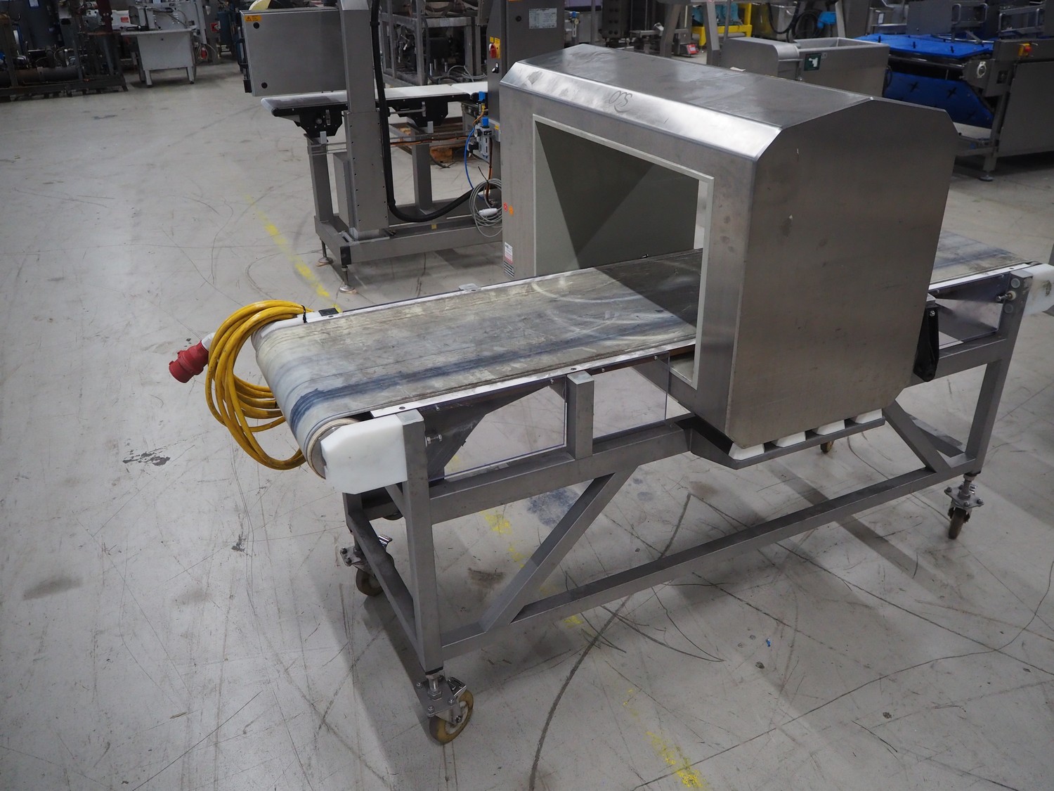 OCS mobile metal detector, type: MN 5.0 CI 700/400, serial number: 950322-CI, 100-240 V, 50/60 Hz, 50-300 mA, plastic belt, belt width: 470 mm, clearance: 700 mm x 360 mm, total dimensions: 2200 mm x 1100 mm x 1350 mm. Technical condition unknown.