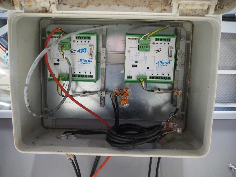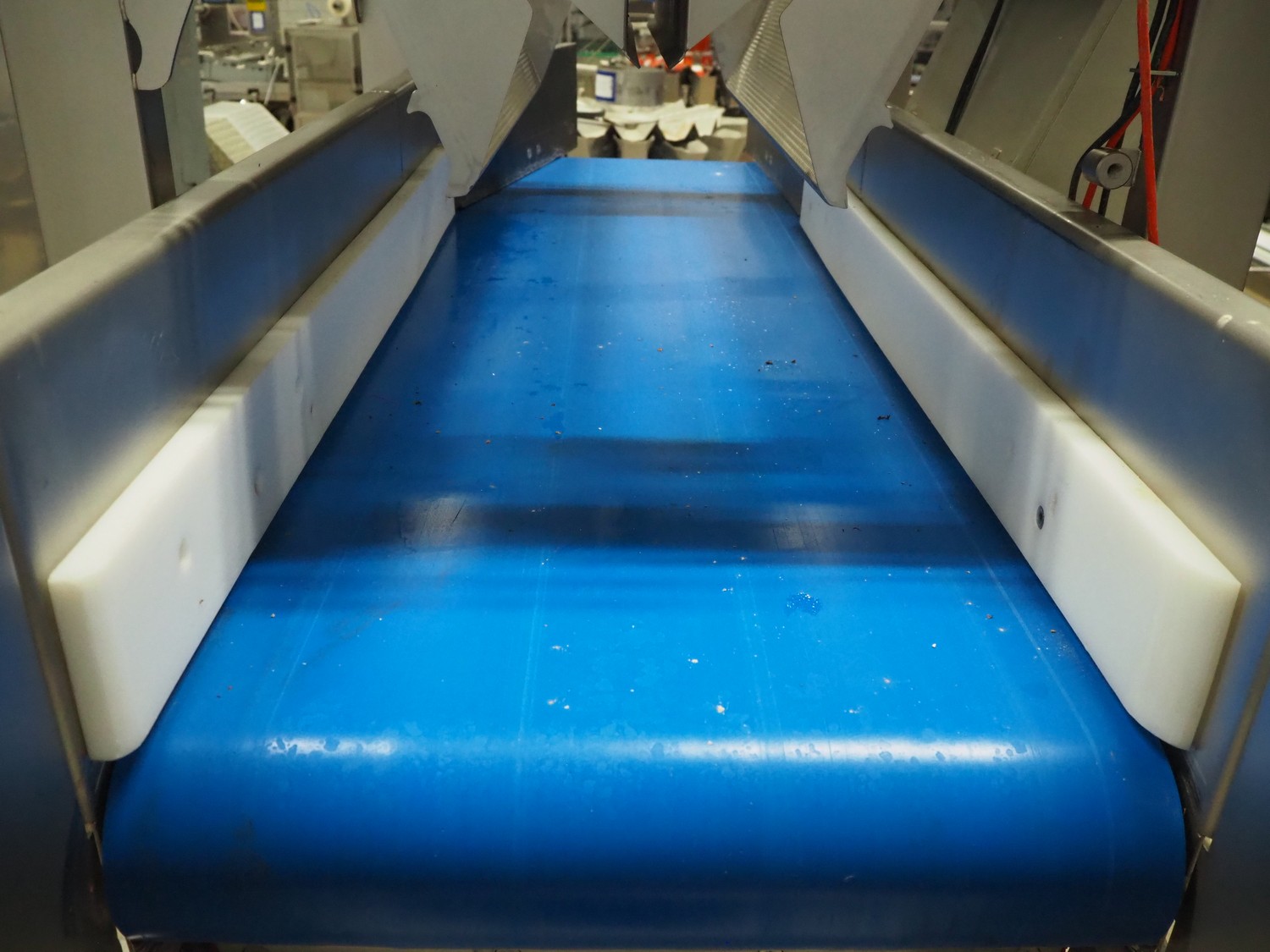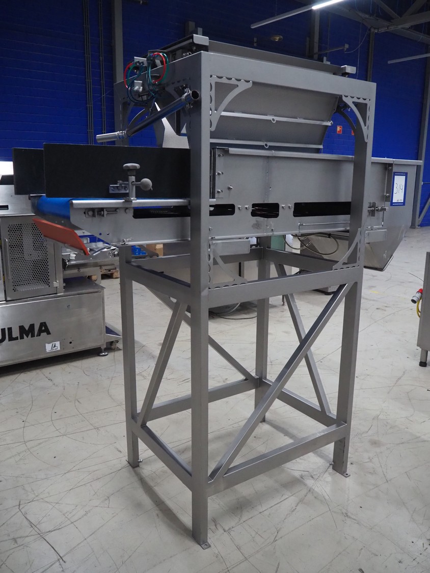 Marel part for batch weigher, s/s frame, plastic belt, belt width: 530 mm, total dimensions: 2120 mm x 950 mm x 2230 mm.