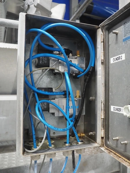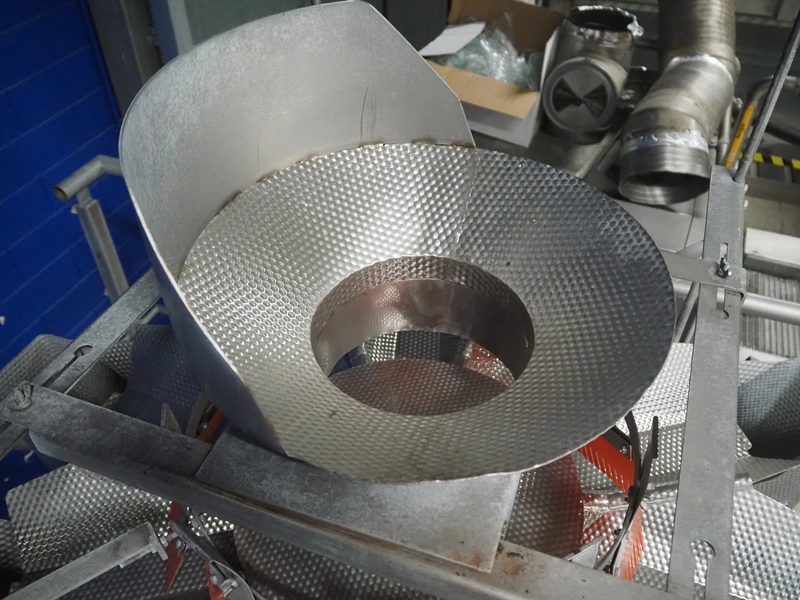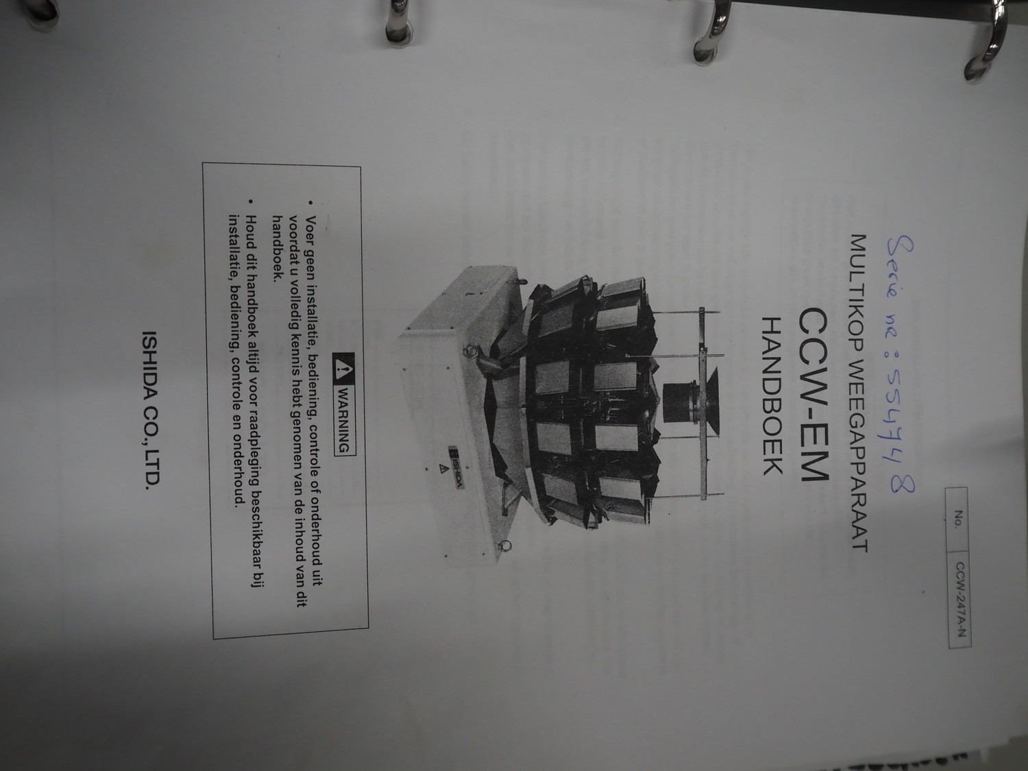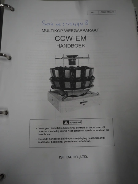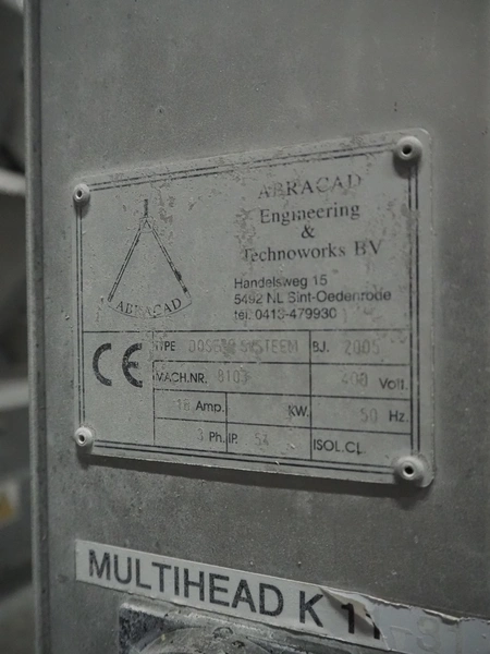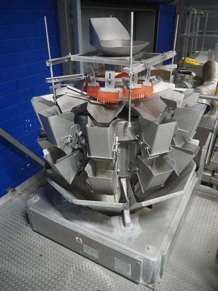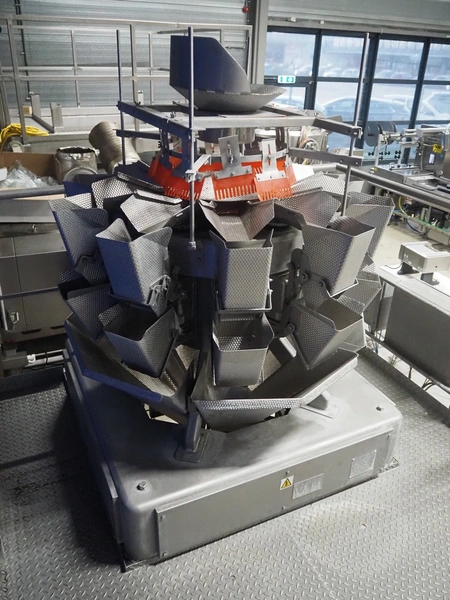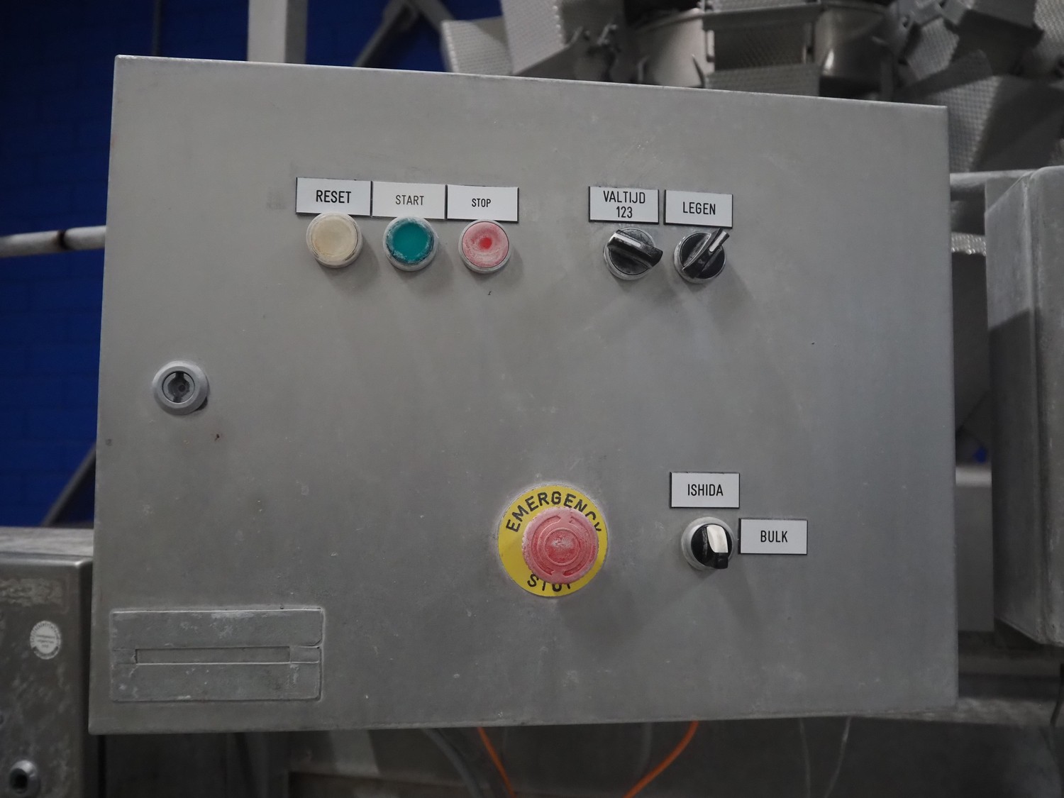 Ishida 10-heads multihead weigher on Abracat s/s platform, platform height: 1320 mm, total dimensions: 3170 mm x 2370 mm x 2500 mm. With rack for weighing heads, dimensions: 2400 mm x 1750 mm x 650 mm.
