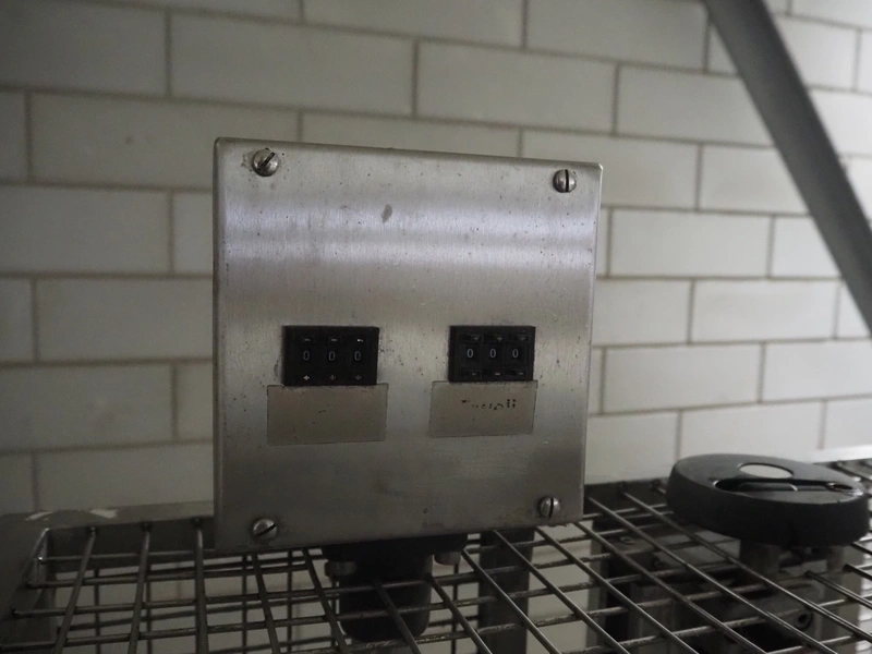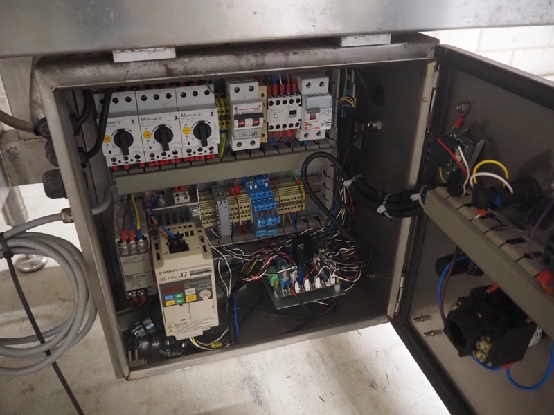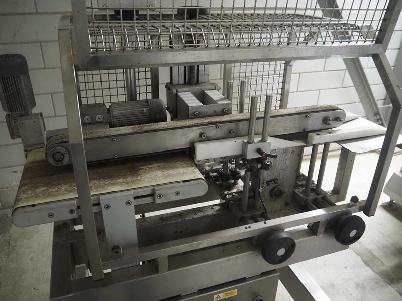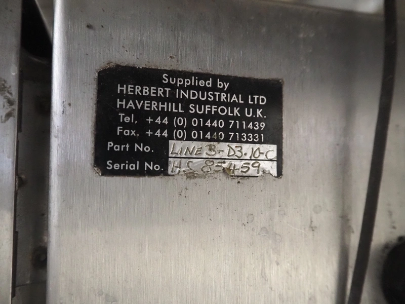 Herbert Industrial LTD pouch press, plastic belts, belt width: (2x) 45 mm and 300 mm, total dimensions: 1450 mm x 740 mm x 1850 mm.
