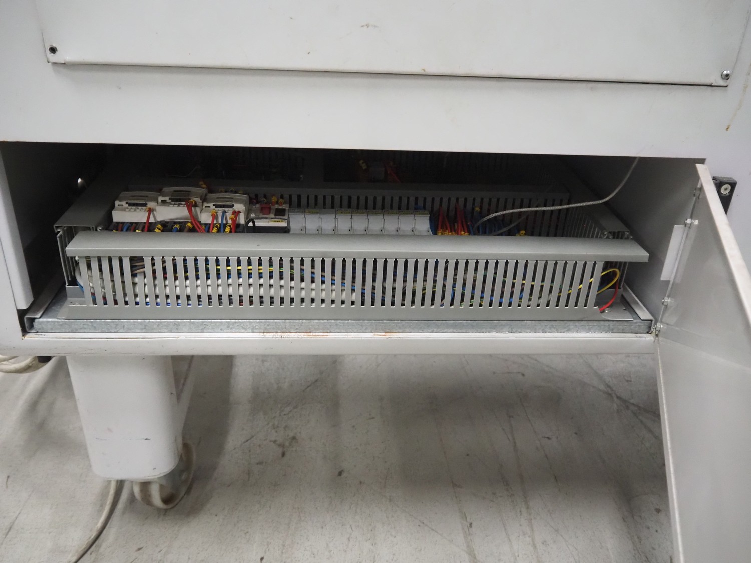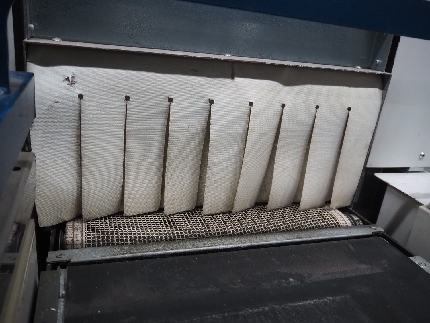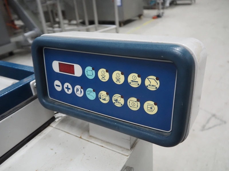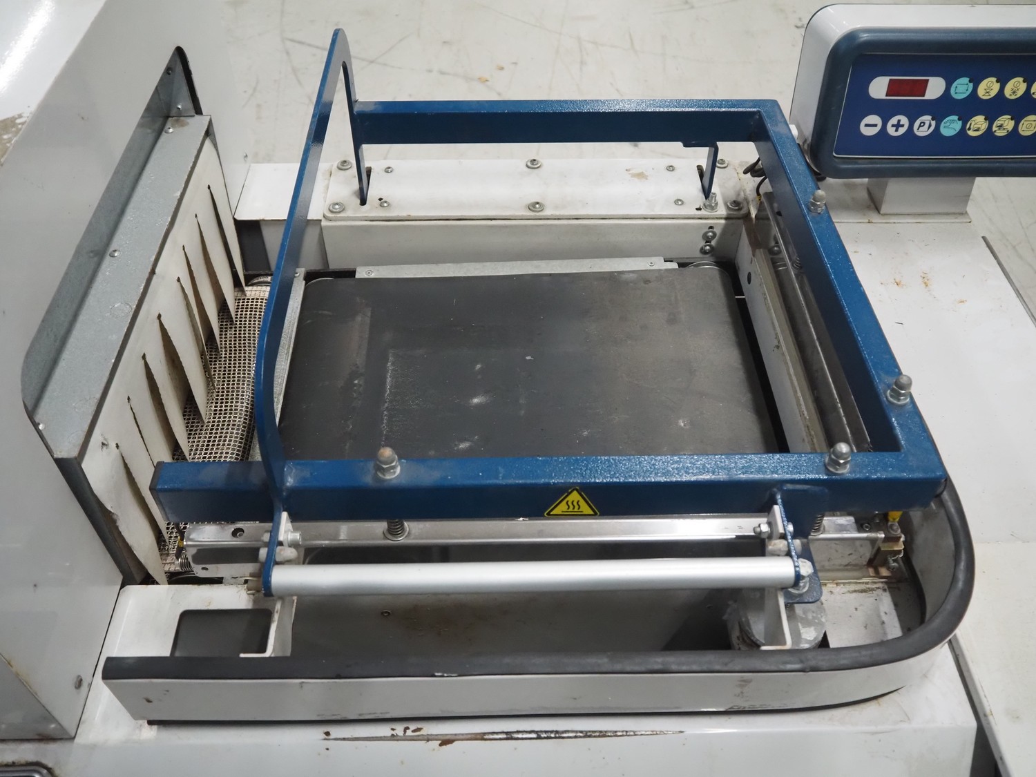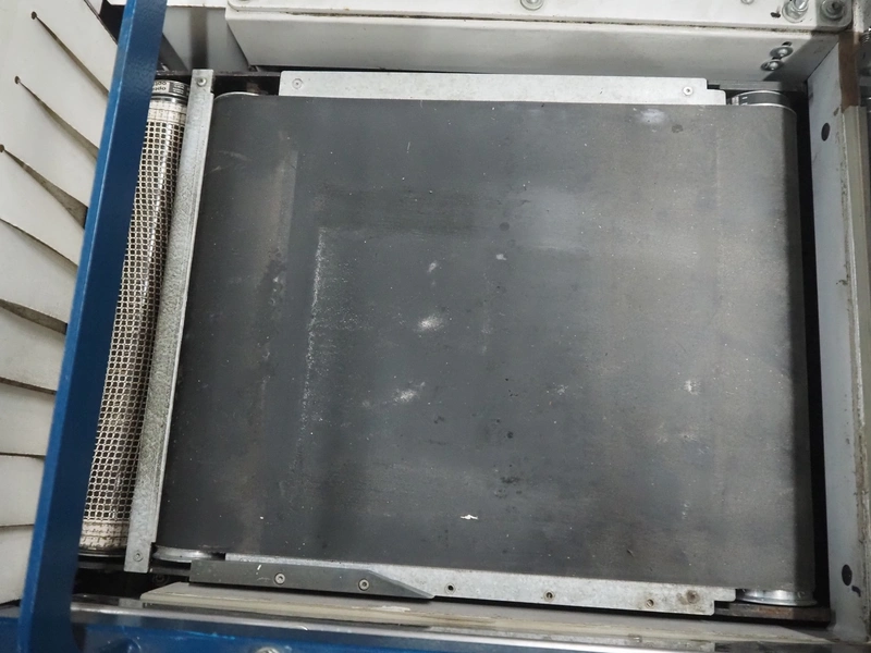 Robopac mobile automatic shrink wrapping machine, model: Ariane 5040 2TA, serial number: KN/054420, year of construction: 02/2003, 400 V, 3 Ph, 50 Hz, 9.5 A, 5.7 kW, seal length: 470 mm and 370 mm, plastic outfeed rollers, roller width: 450 mm, total dimensions: 2200 mm x 2250 mm x 1200 mm.