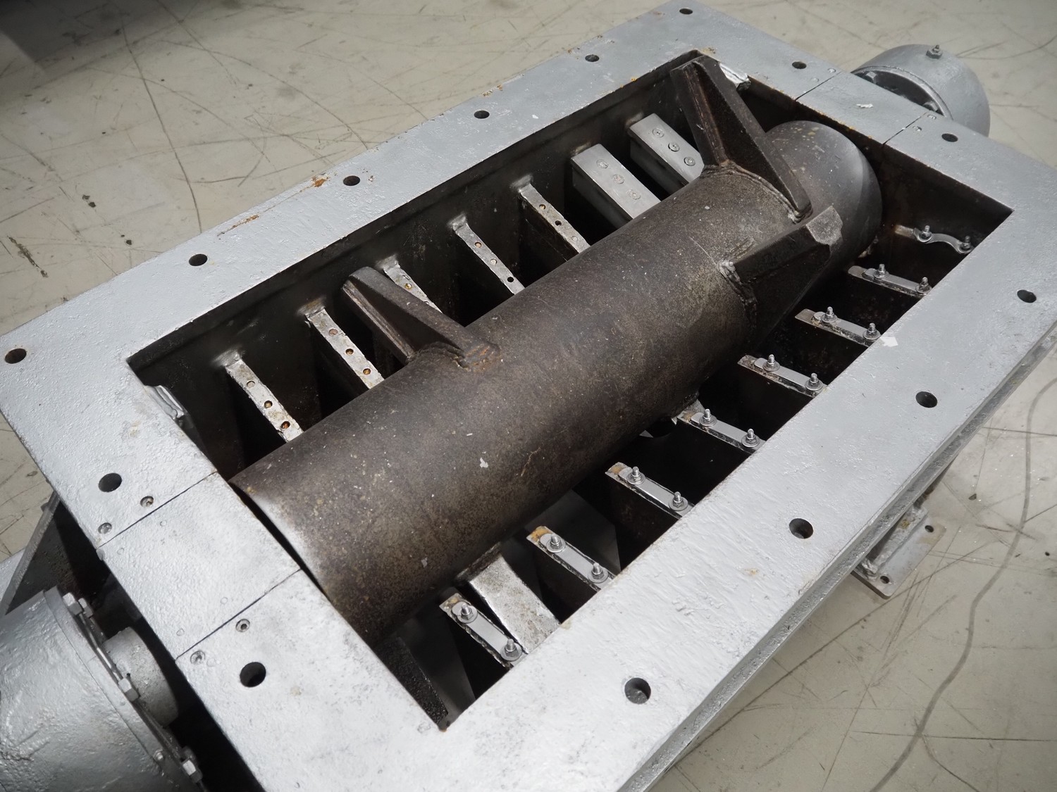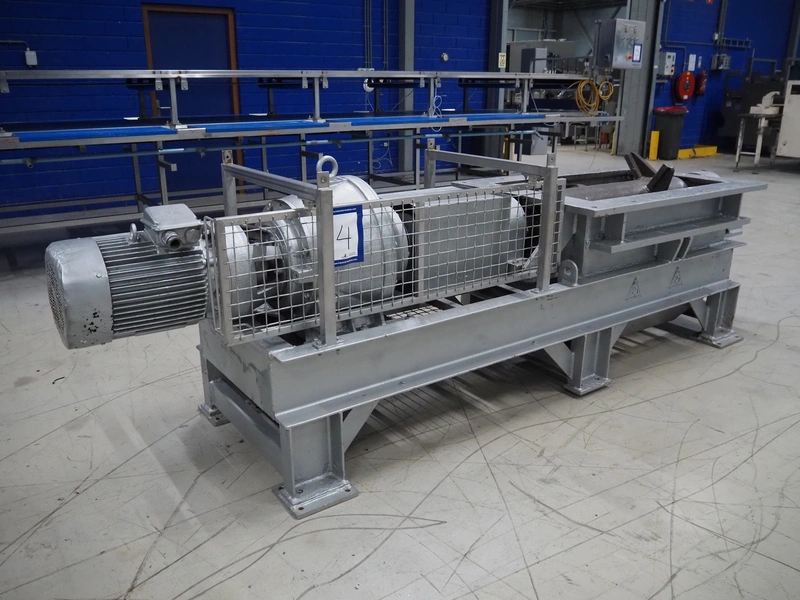 Steel shredder, clearance: 1100 mm x 620 mm, total dimensions: 3550 mm x 920 mm x 1100 mm.