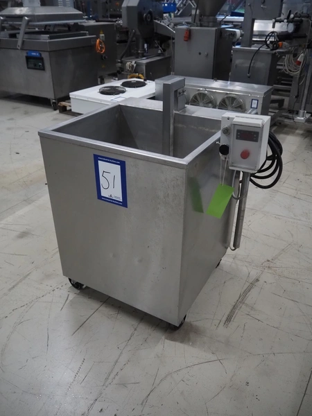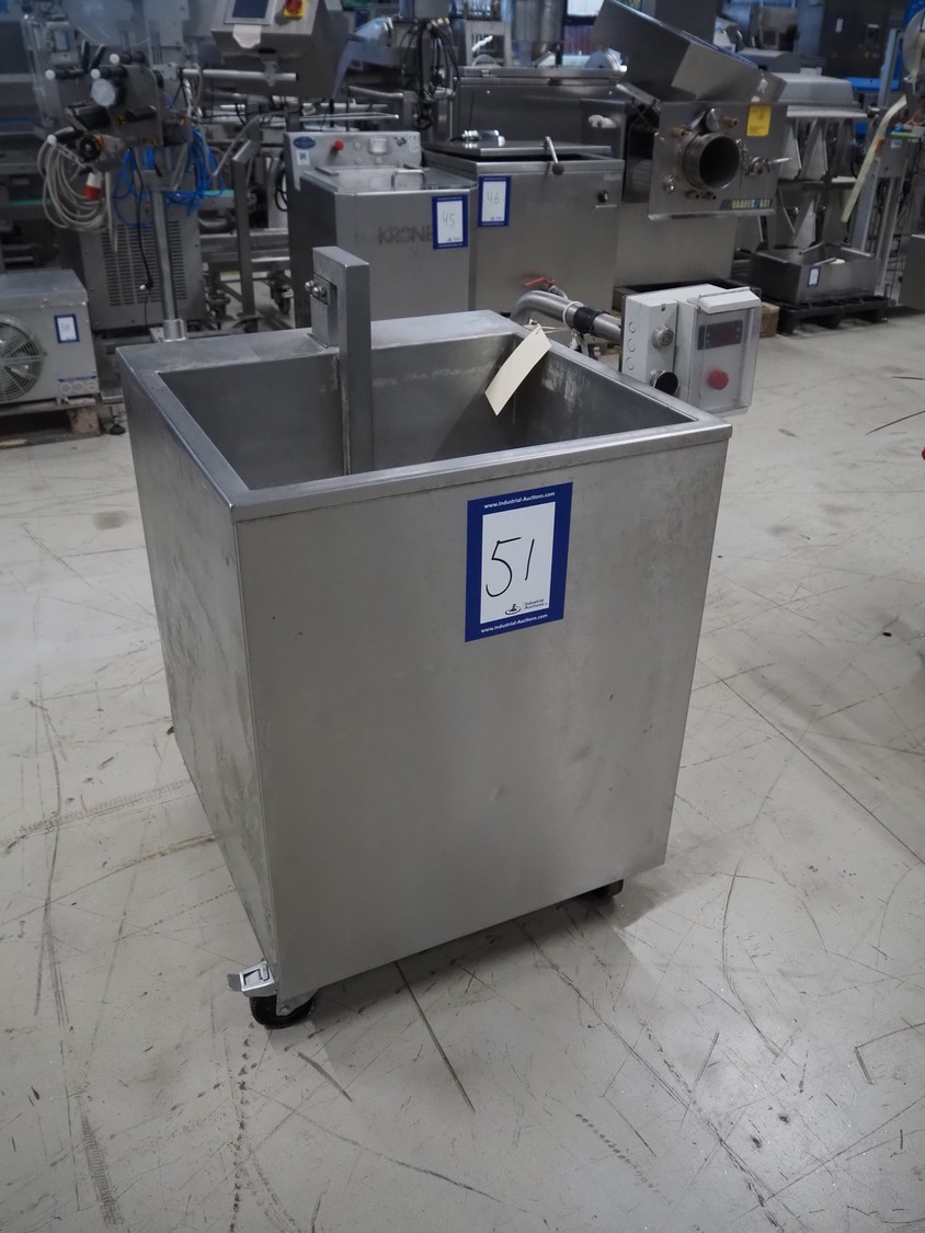 Henkelman mobile diptank, type: DT 60, machine number: DT0811048, year of construction: 2008, 400 V, 3 Ph, 50 Hz, 15 A, 9 kW, inside dimensions: 600 mm x 500 mm x 180 mm, total dimensions: 850 mm x 700 mm x 1050 mm.
