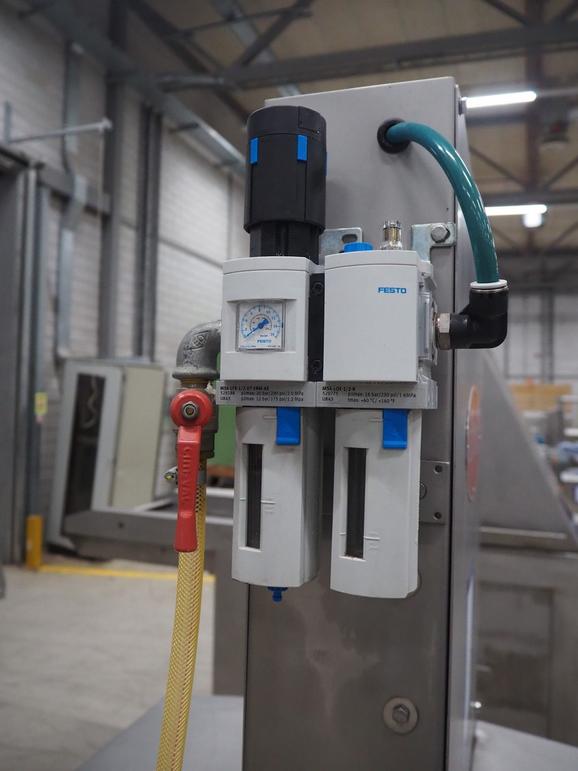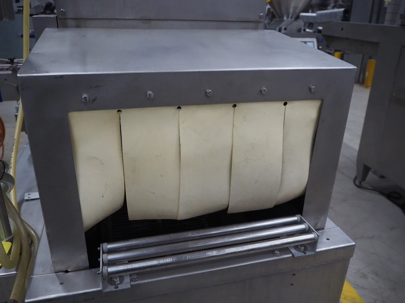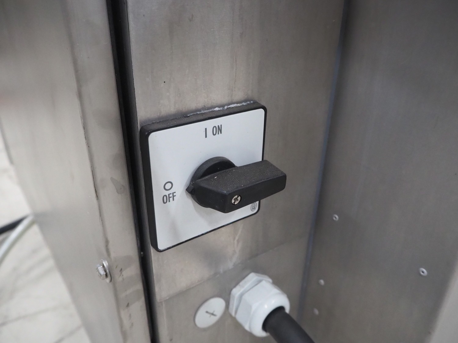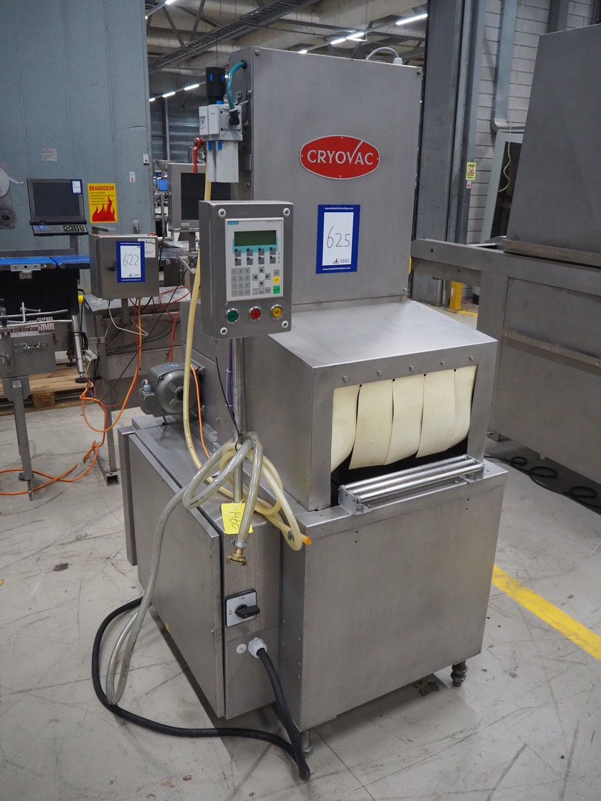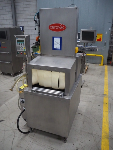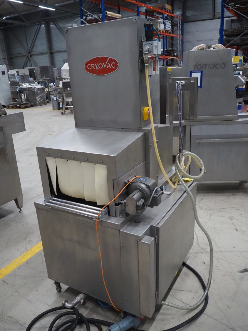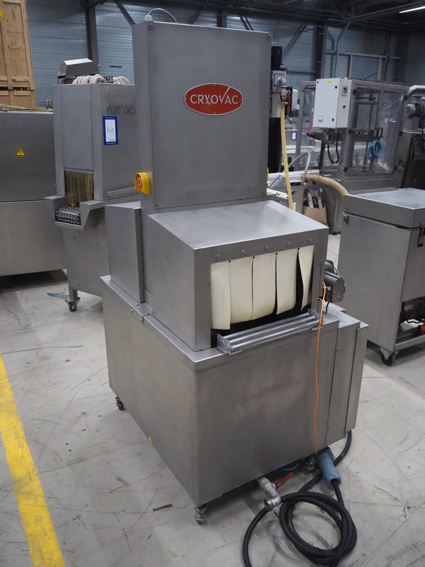 Cryovac shrink tunnel, s/s rollers, roller width: 430 mm, clearance: 480 mm x 330 mm, total dimensions: 1020 mm x 850 mm x 1920 mm.