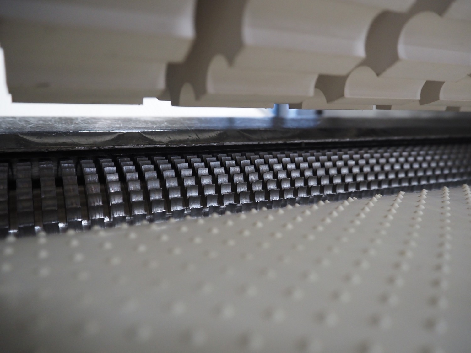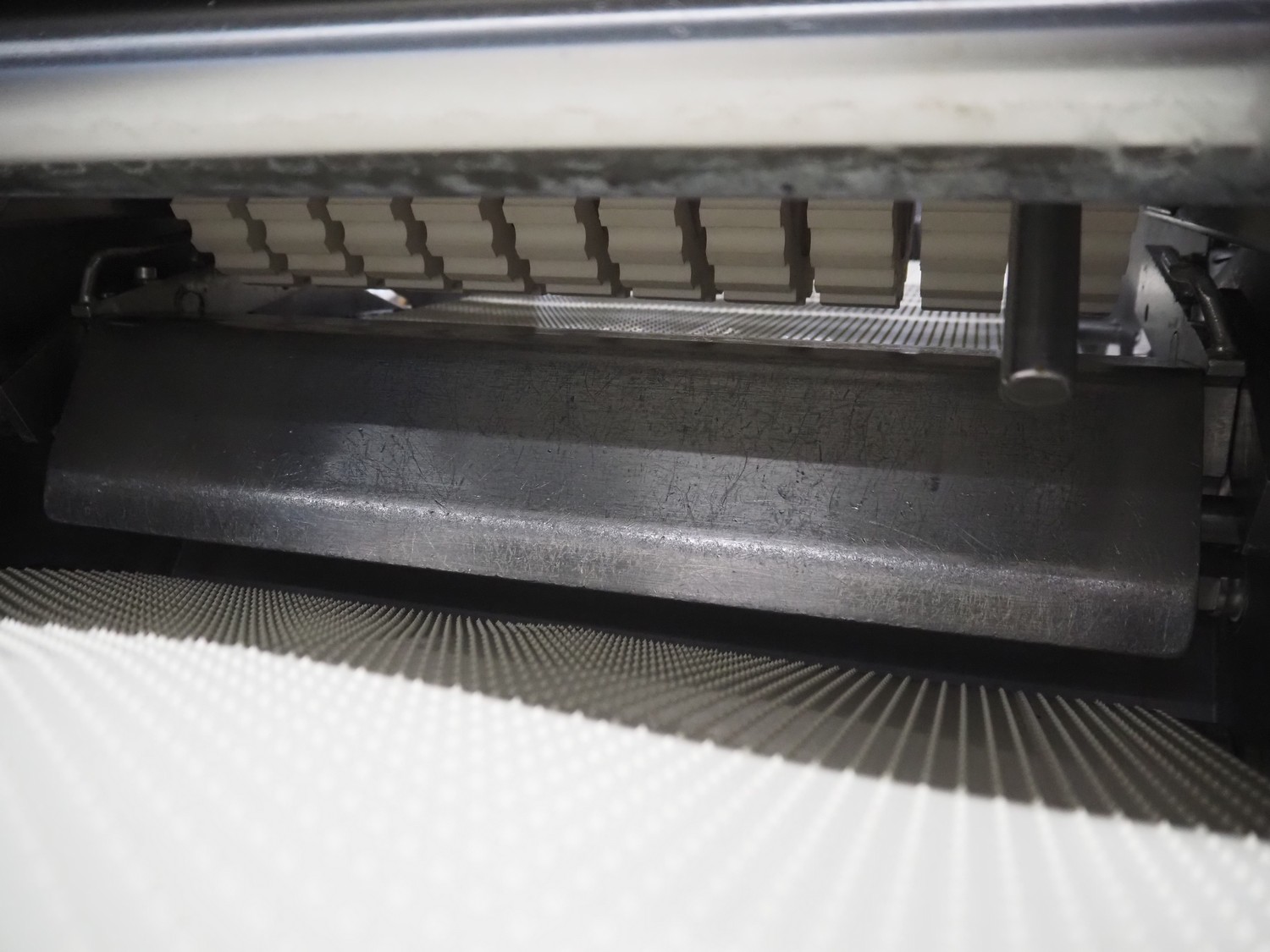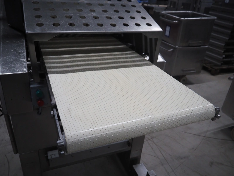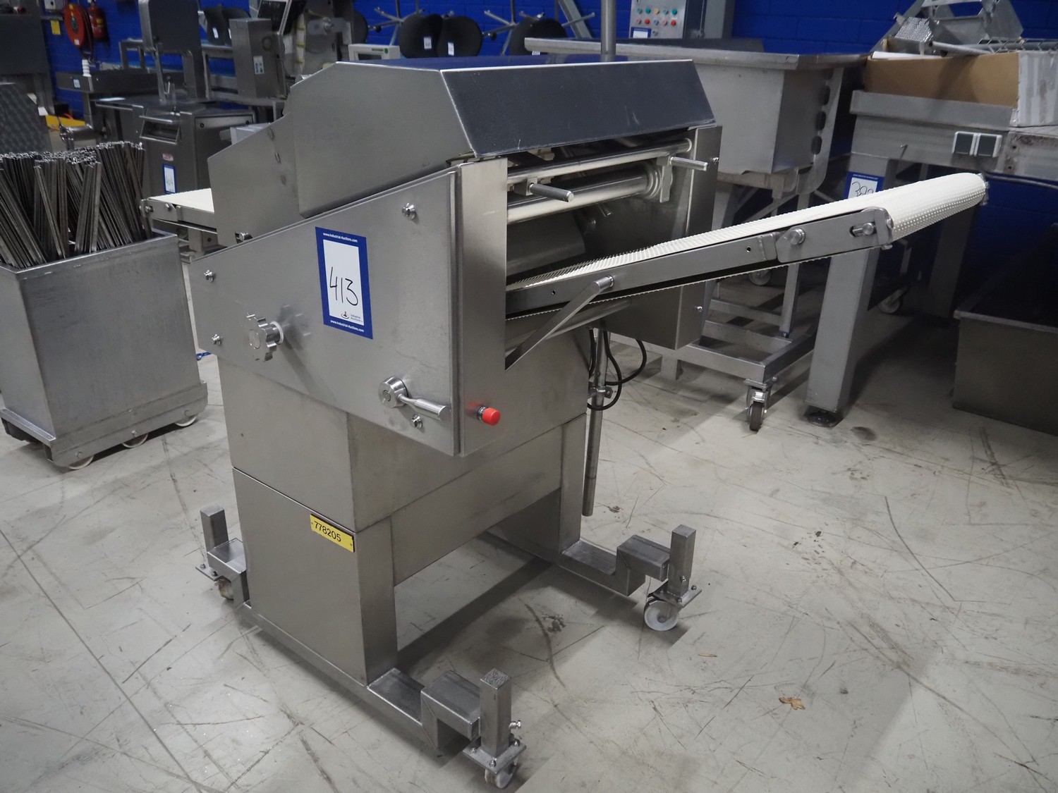 Weber mobile skinning and derinding machine, type: ASC 560, number: 215, 400 V, 50 Hz, 1.1 kW, plastic belt, belt width: 500 mm, working width: 560 mm, total dimensions: 2000 mm x 1050 mm x 1850 mm.