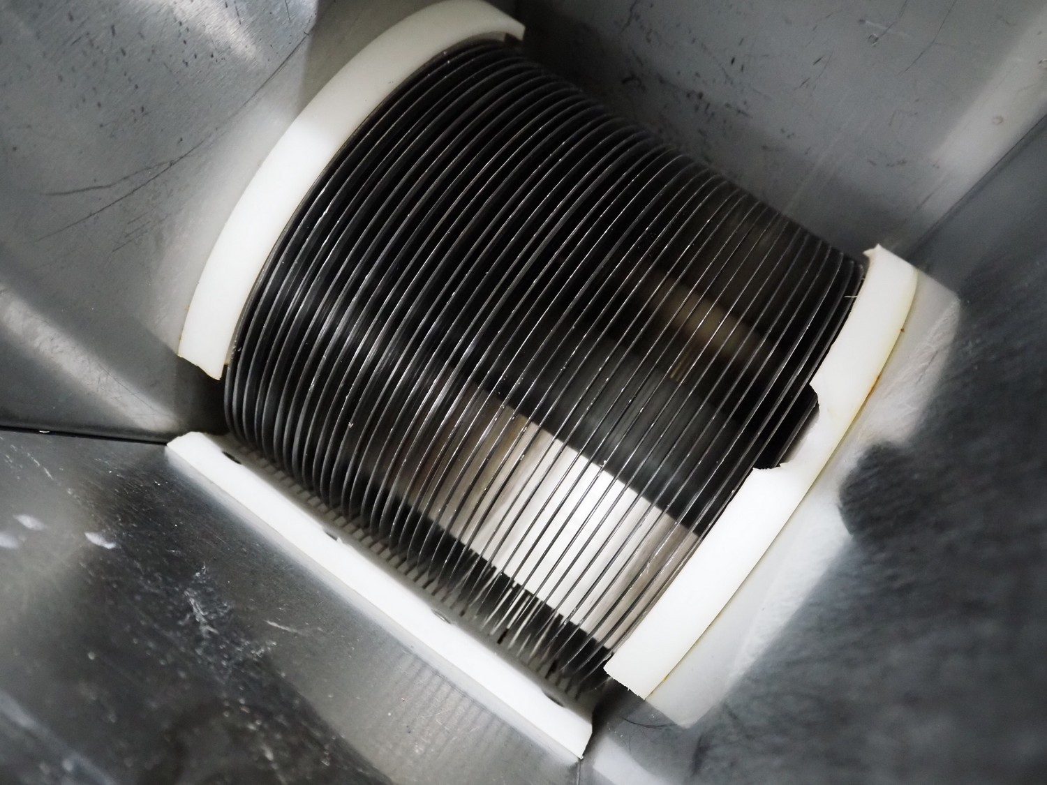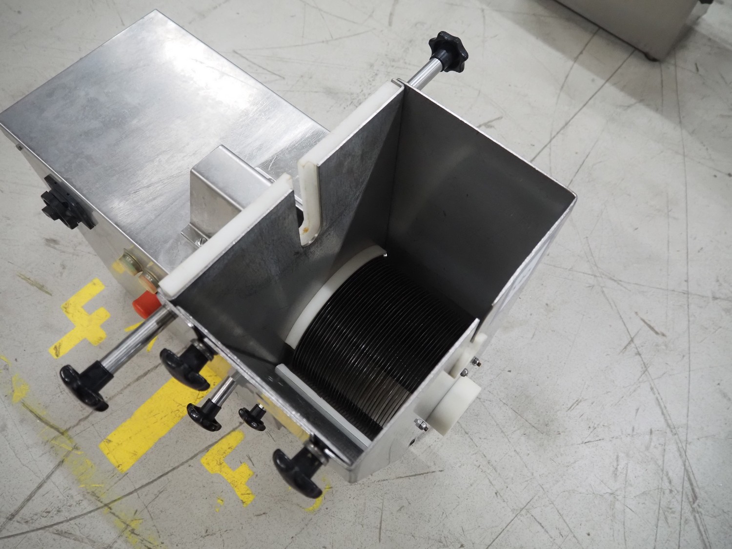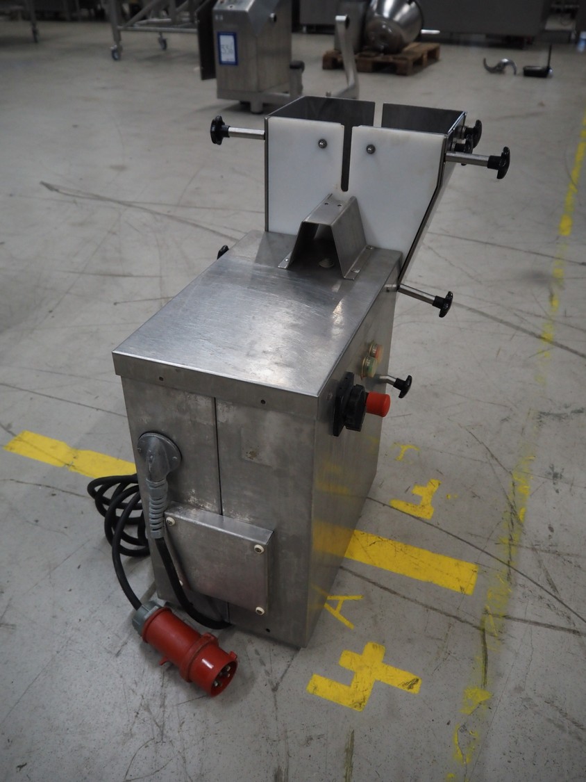 Fendo OY strip cutter, working width: 190 mm, distance between knives: 12 mm, total dimensions: 700 mm x 500 mm x 710 mm. Incomplete.