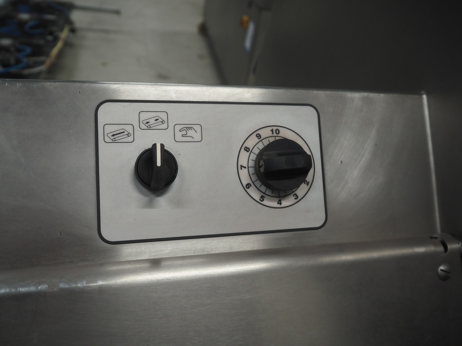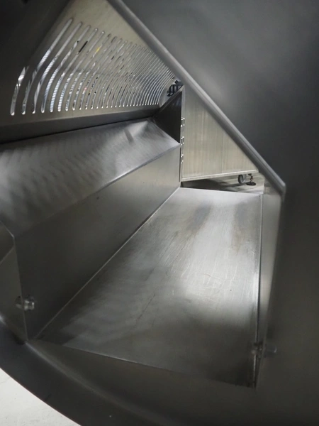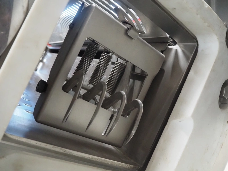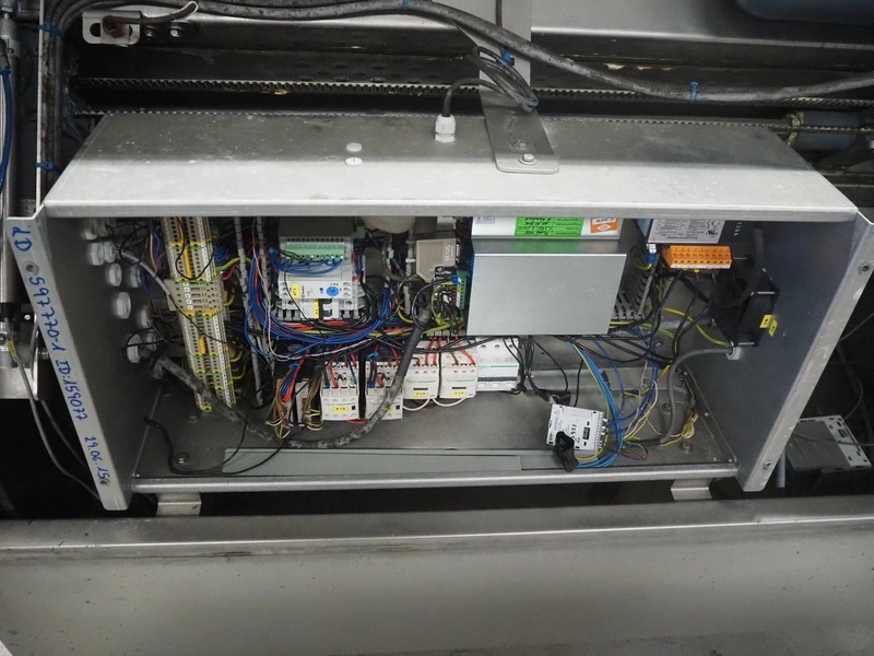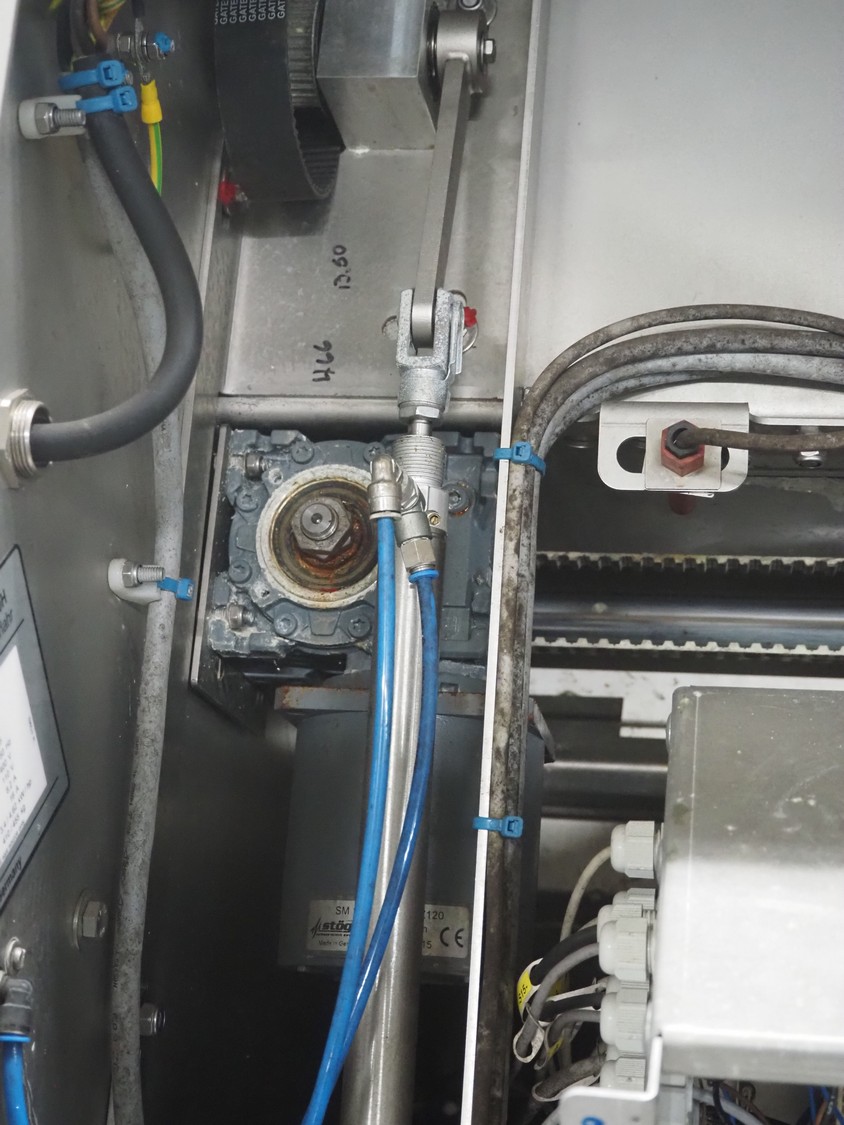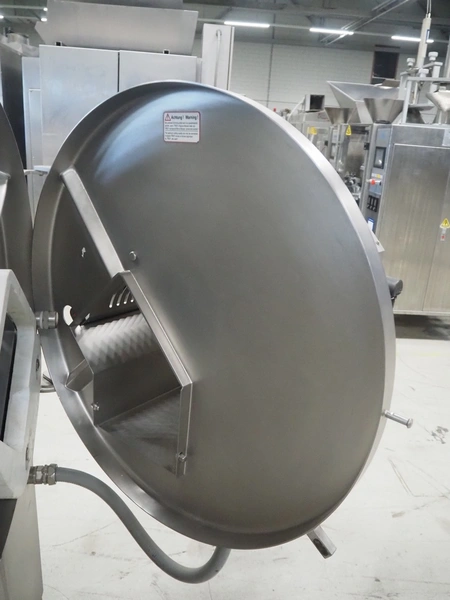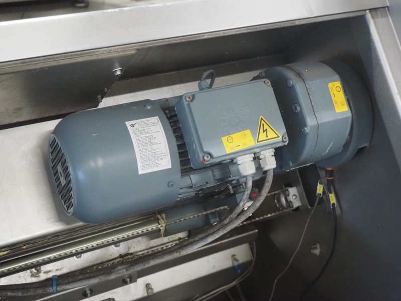 Treif Maschinenbau GmbH slicer, model: Puma 1100 E/EB (HS), machine number: 019516.195241.125241, year of construction: 2015, 400 V, 3 Ph, 50 Hz, 8.2 A, 3.4 kW, 455 kg, dimensions chamber: 230 mm x 210 mm, total dimensions: 2530 mm x 900 mm x 1430 mm. Outfeed belt damaged.
