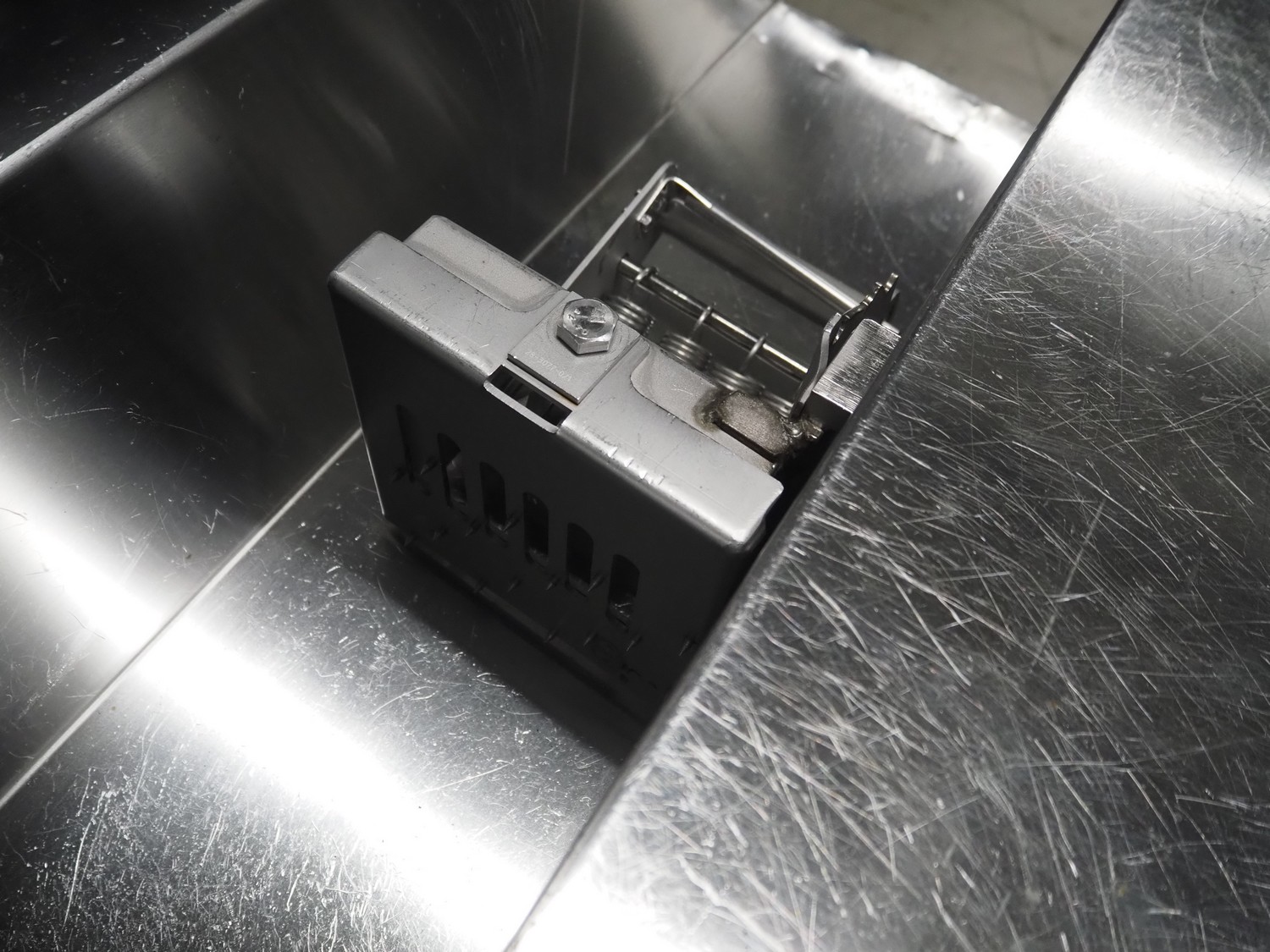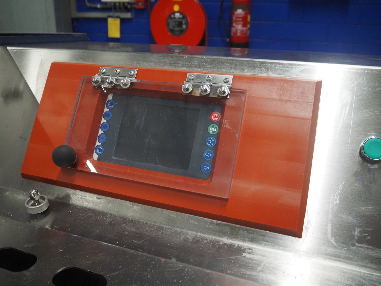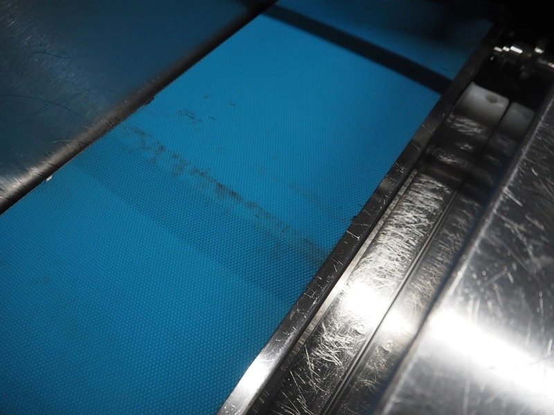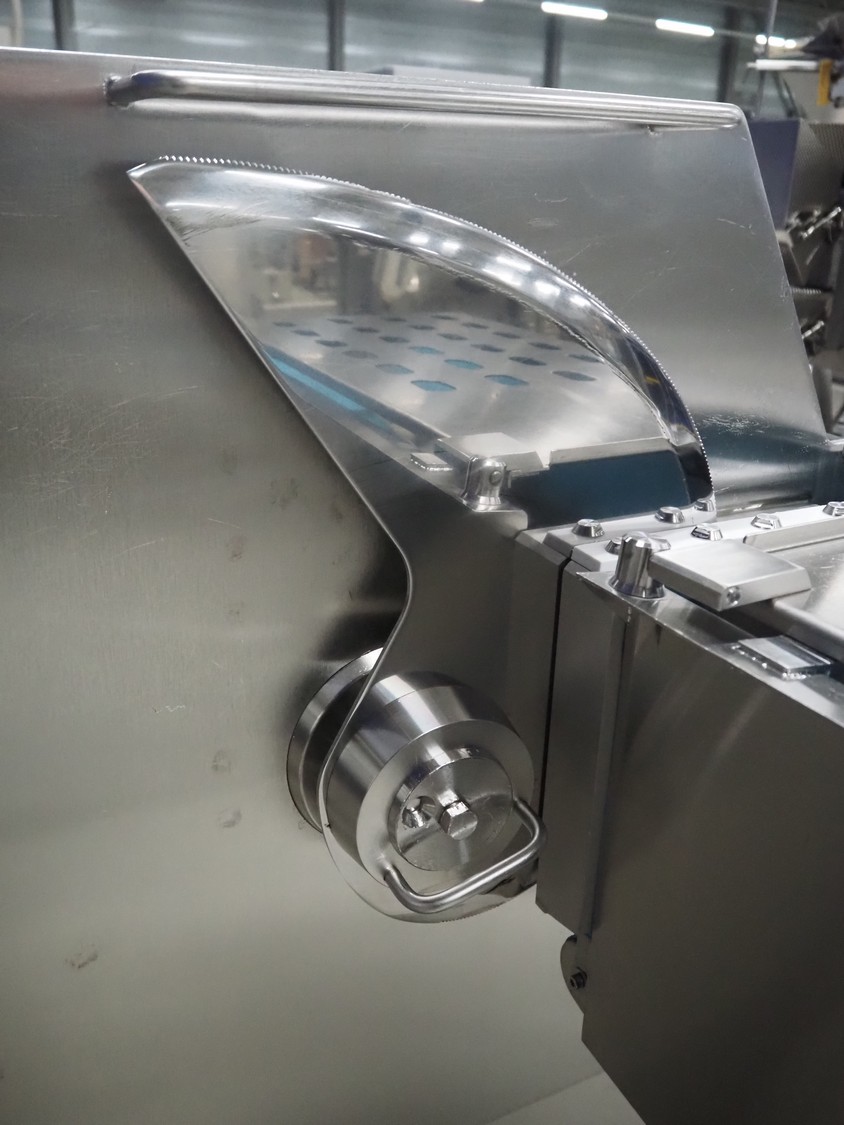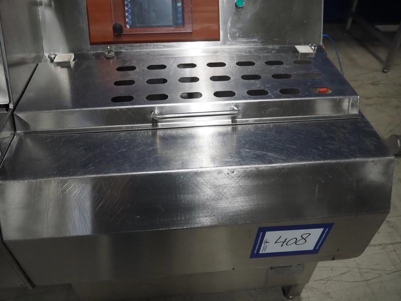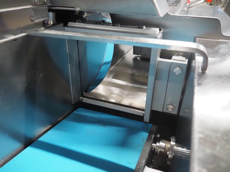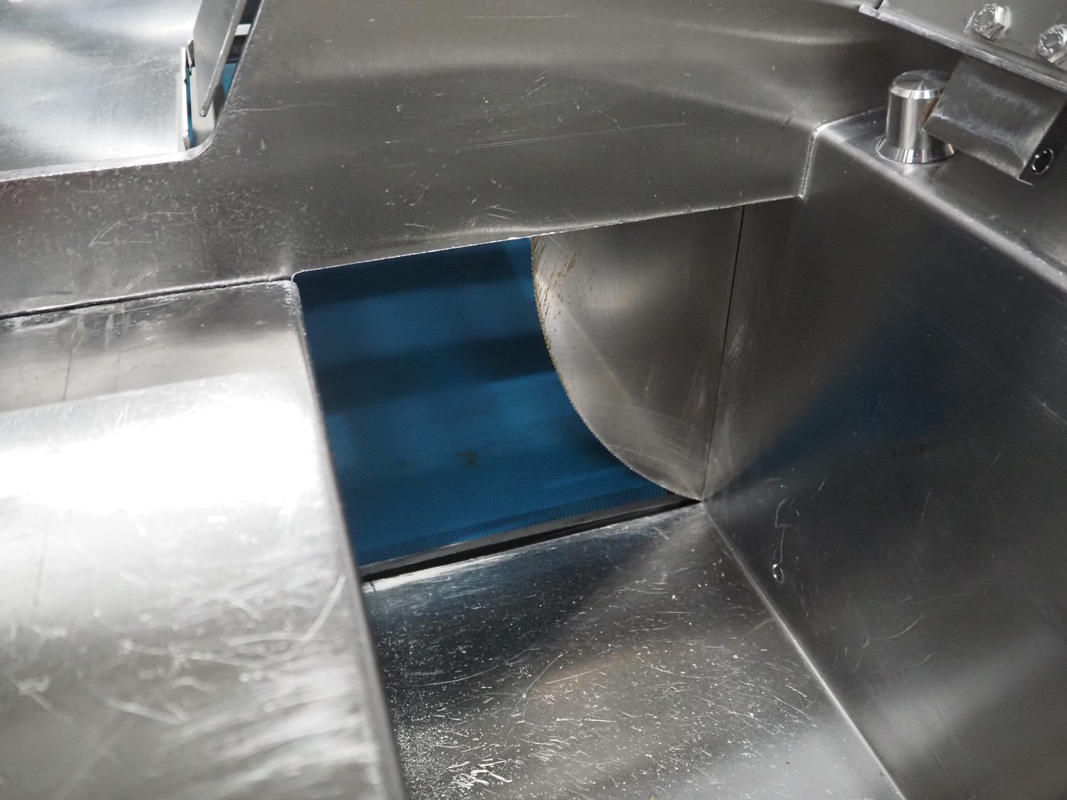 Holac slicer, model: Sect 23/74C, machine number: 283-03-44, year of construction: 2012, 400 V, 50 Hz, 13 A, 5 kW, clearance: 230 mm x 230 mm, plastic outfeed belt, belt width: 245 mm, total dimensions: 2450 mm x 1030 mm x 1230 mm.