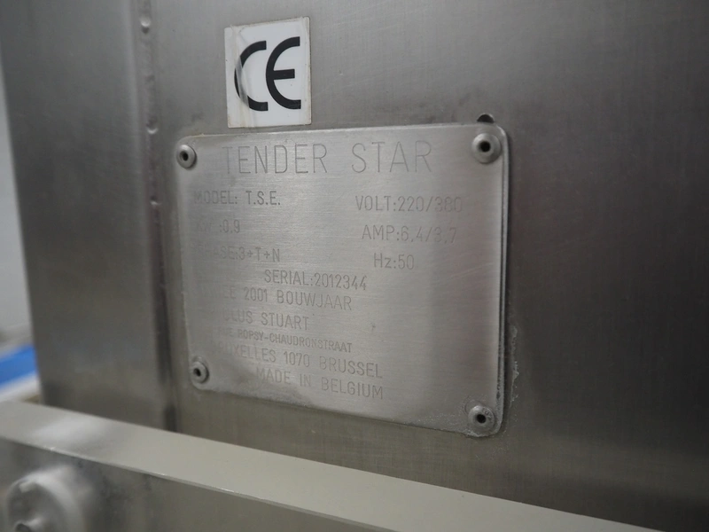 Tender Star mobile tenderizer, model: T.S.E. serial number: 2012344, year of construction: 2001, 220/380 V, 3 Ph, 50 Hz, 0.9 kW, clearance: 400 mm x 160 mm, total dimensions: 970 mm x 850 mm x 1800 mm.