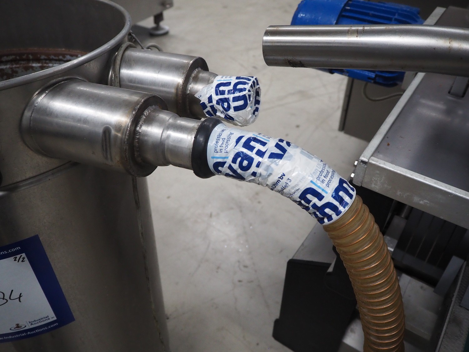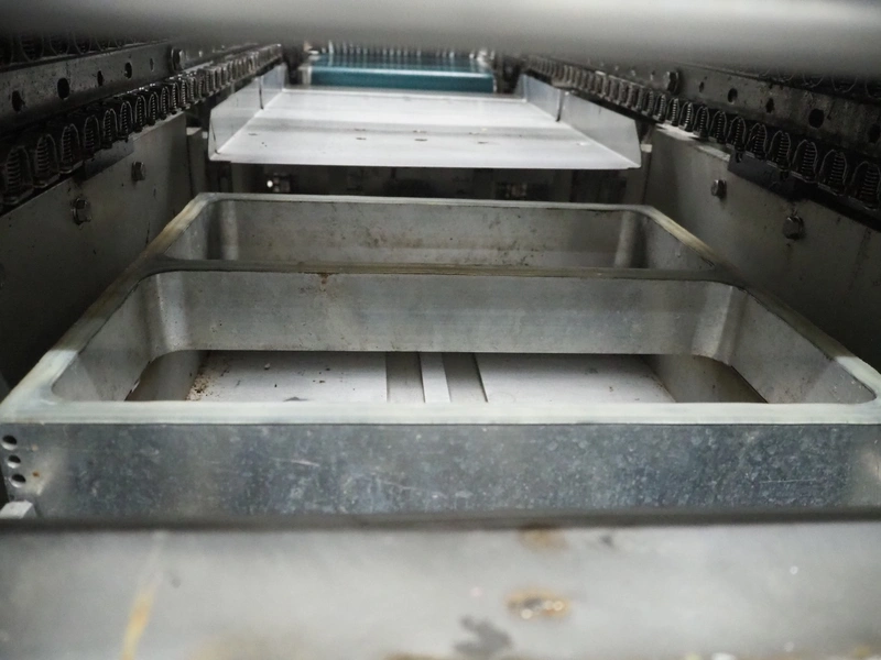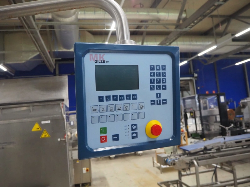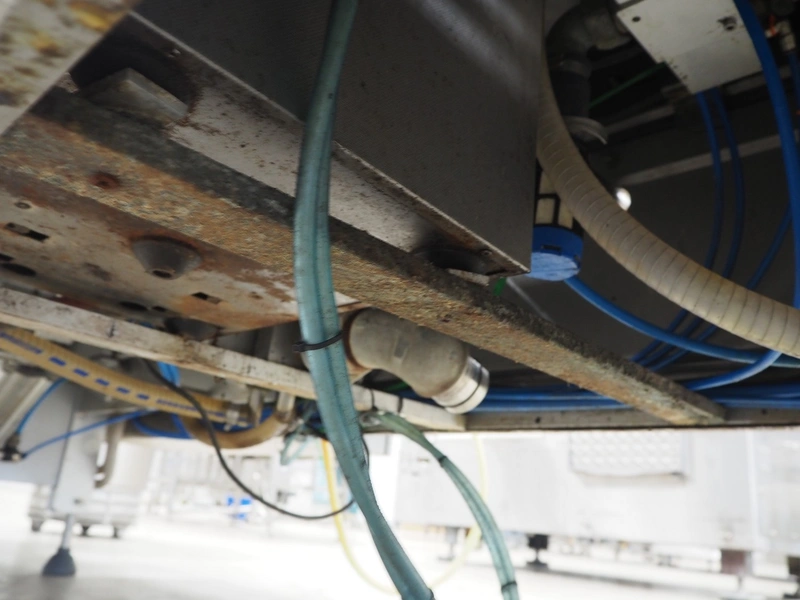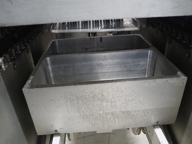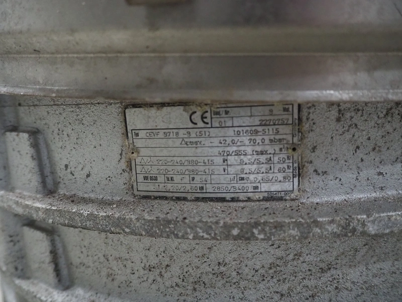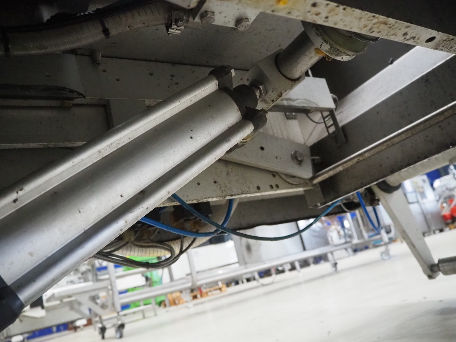 Multivac thermoformer with suction device for rest film, type: R 230, machine number: 1182, year of construction: 2001, 400 V, 3 Ph, 50 Hz, 27 A, 8 kW, dye: (2x) 387 mm x 174 mm, plastic belt, belt width: 350 mm, total dimensions: 4250 mm x 1050 mm x 2050 mm, dimensions suction device: 700 mm x 520 mm x 1150 mm. Without vacuum pump.
