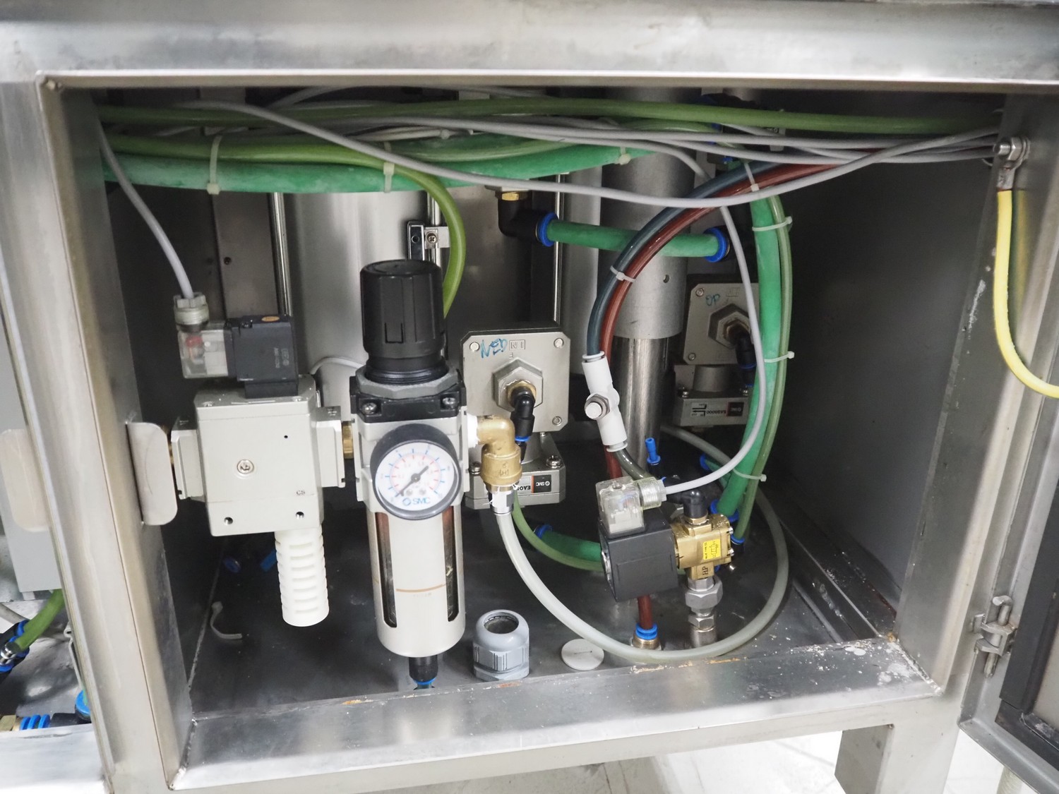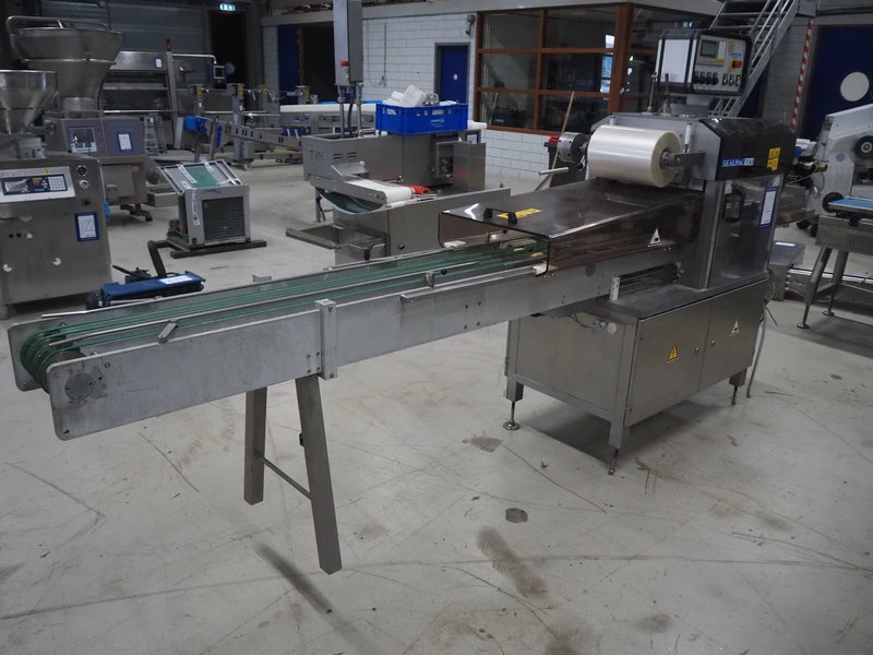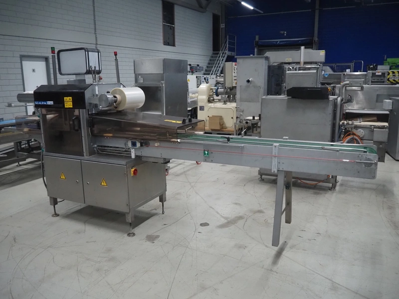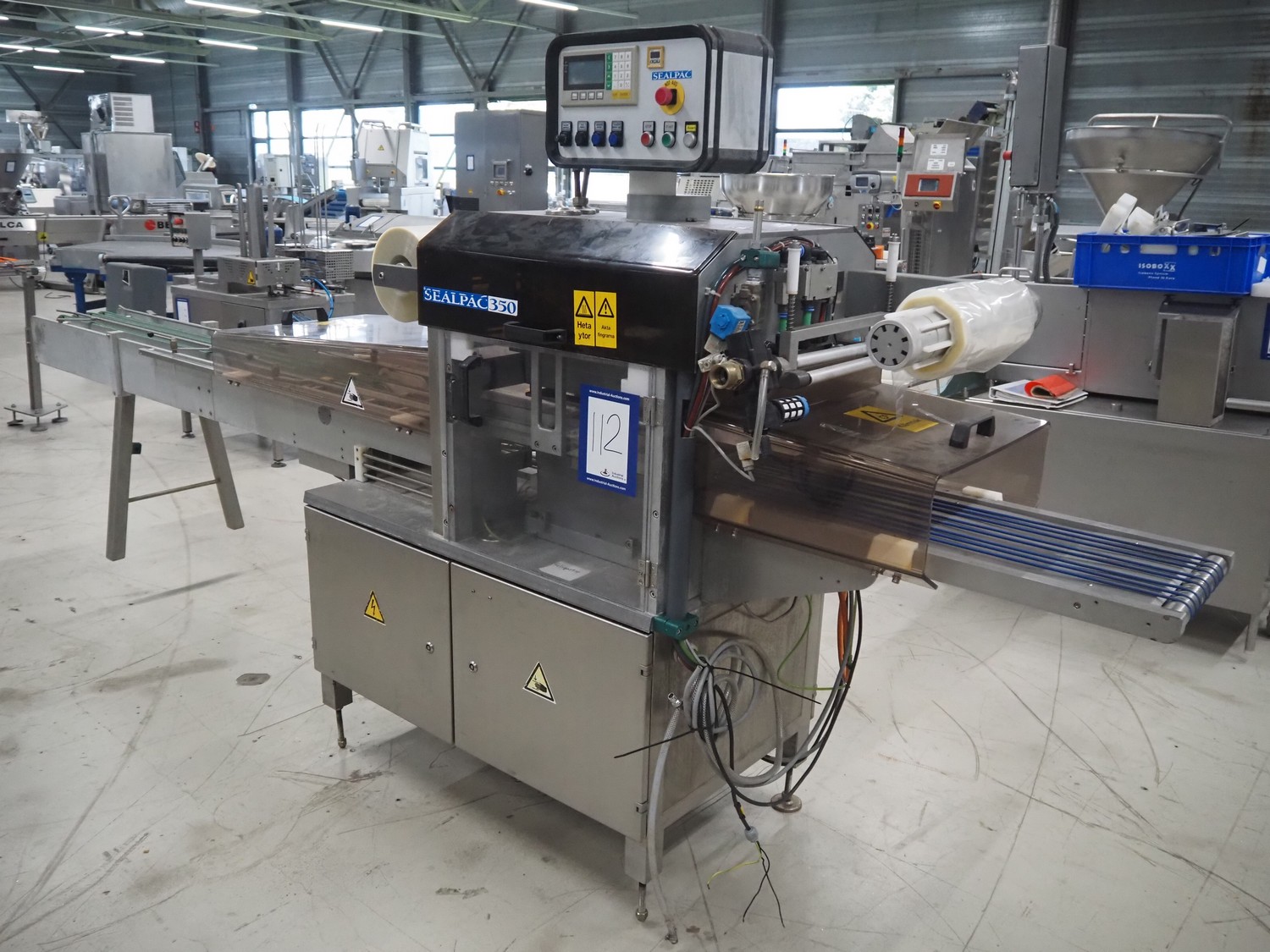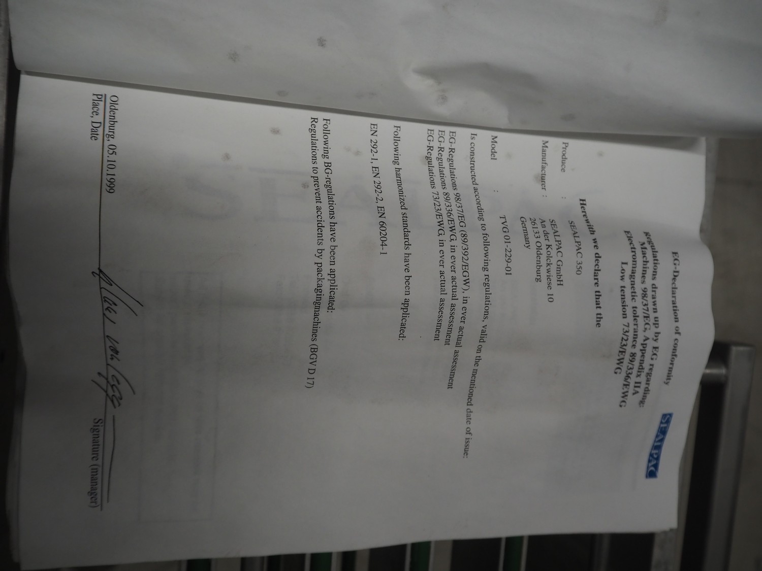 Sealpac traysealer, type: Sealpac 350, serial number: TVG 0122901, year of construction: 1999, 400/230 V, 3 Ph, 1.5 kW, weight: 1.5 kW, film width: 305 mm, dye: 300 mm x 260 mm, total dimensions: 4050 mm x 800 mm x 1850 mm.
