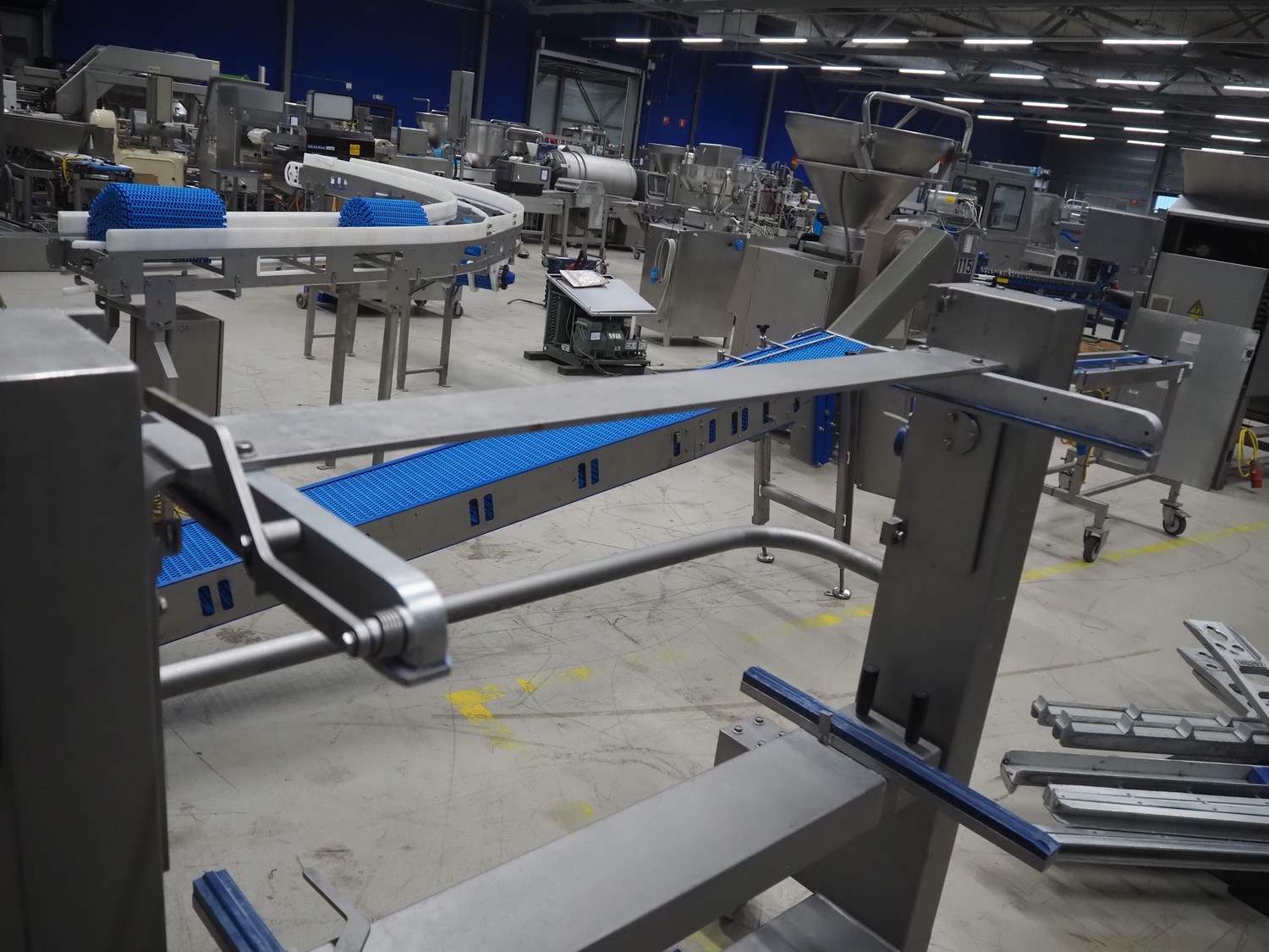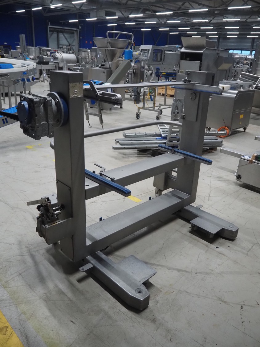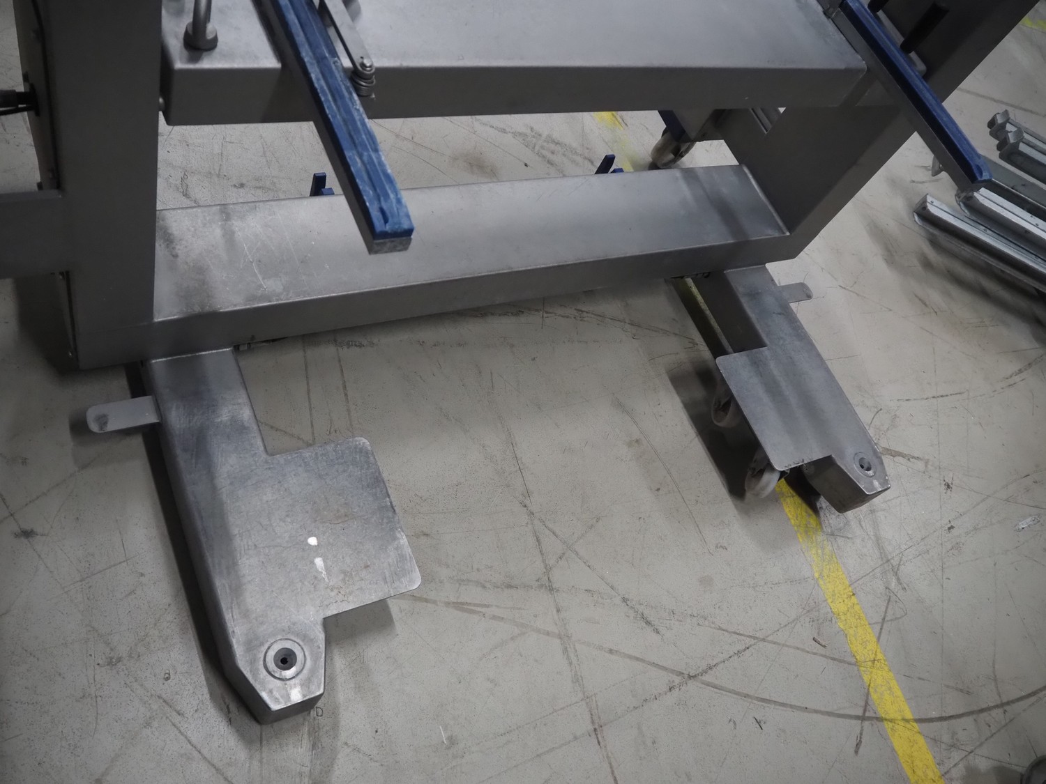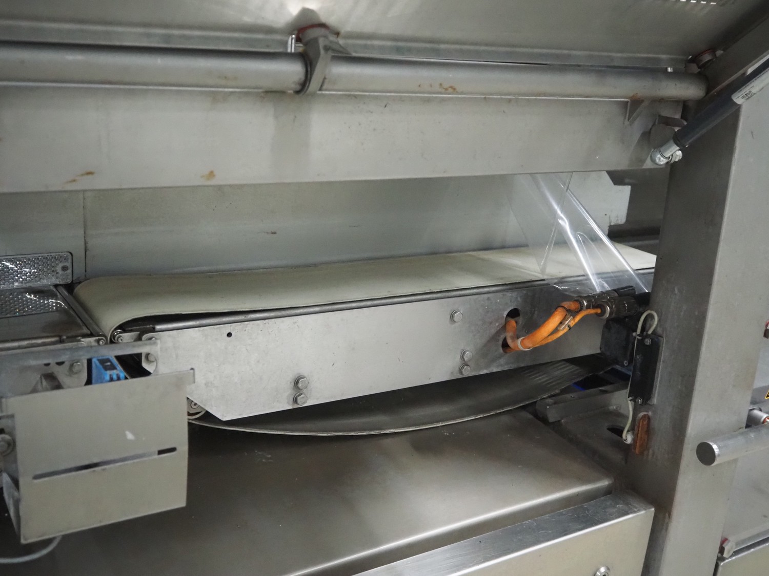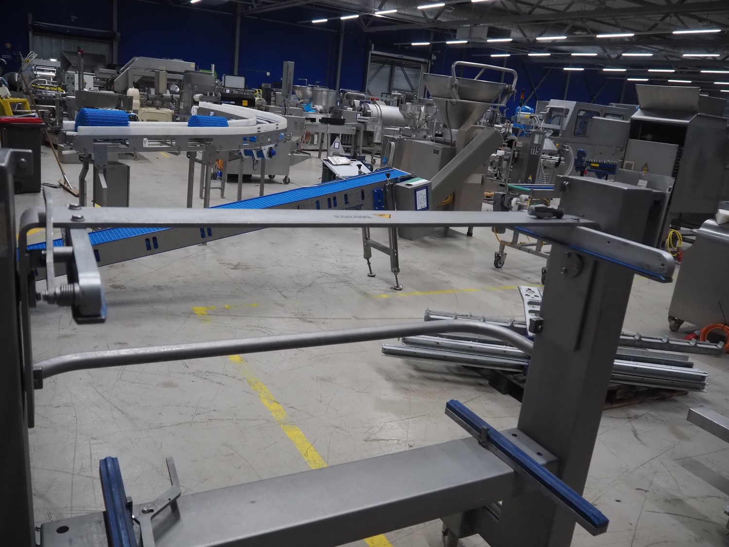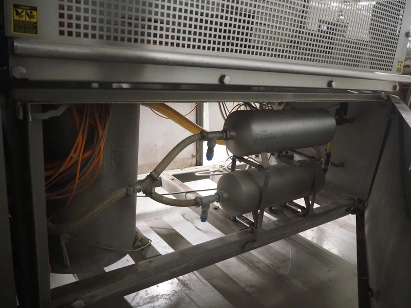 CFS traysealer, type: Twin Star, machine number: 773-116, year of construction: 2004, 400 V, 3 Ph, 50 Hz, 18 A, 12 kW, 2200 kg, plastic mesh infeed belts, belt width: (2x) 170 mm, total dimensions: 4600 mm x 1100 mm x 2200 mm, 2100 mm x 600 mm x 1100 mm and 4000 mm x 1000 mm x 1100 mm. With pallet with spacers and 2 trolleys for changing dyes, dimensions pallet: 2000 mm x 1300 mm x 900 mm, dimensions trolleys: (2x) 1900 mm x 1100 mm x 1350 mm. Incomplete.