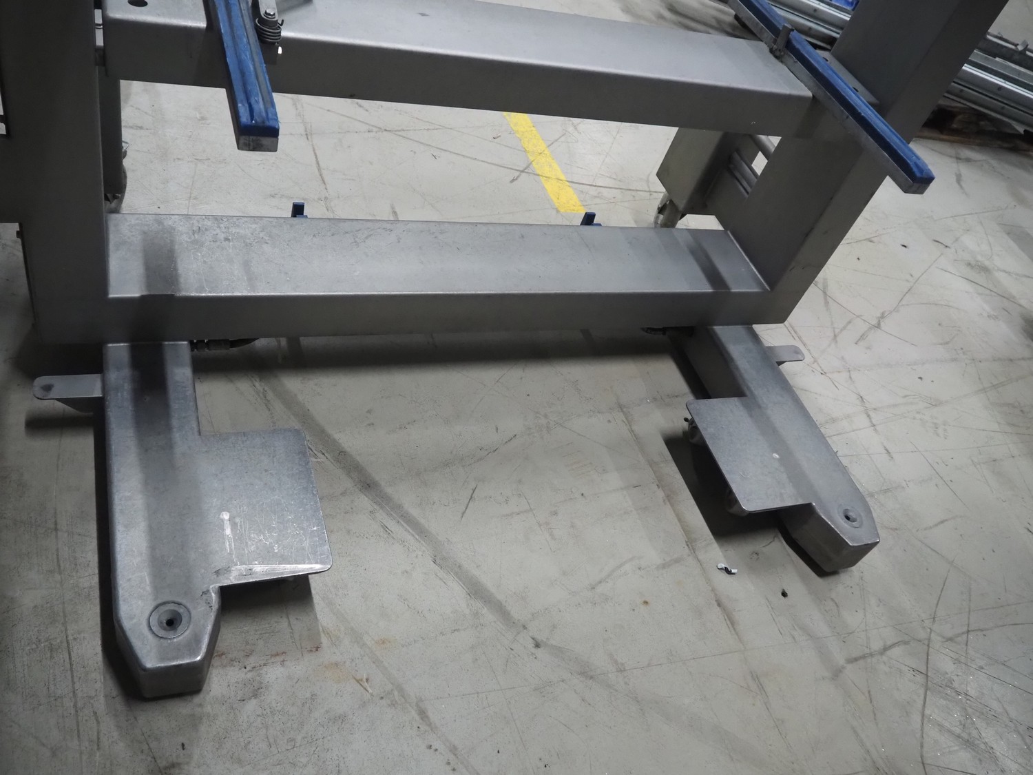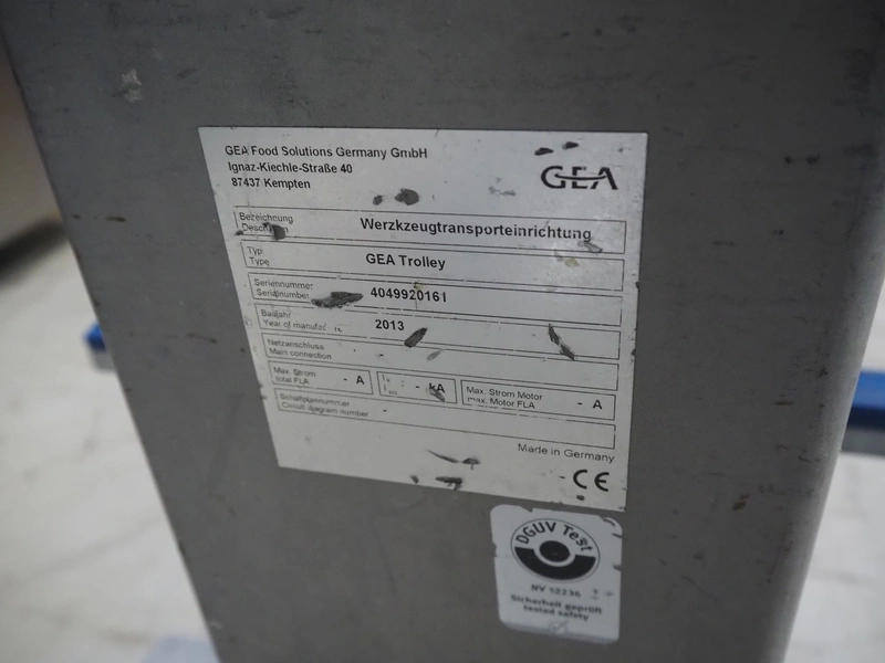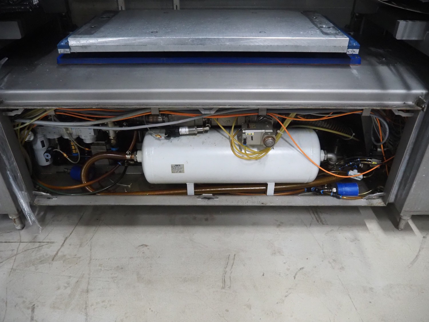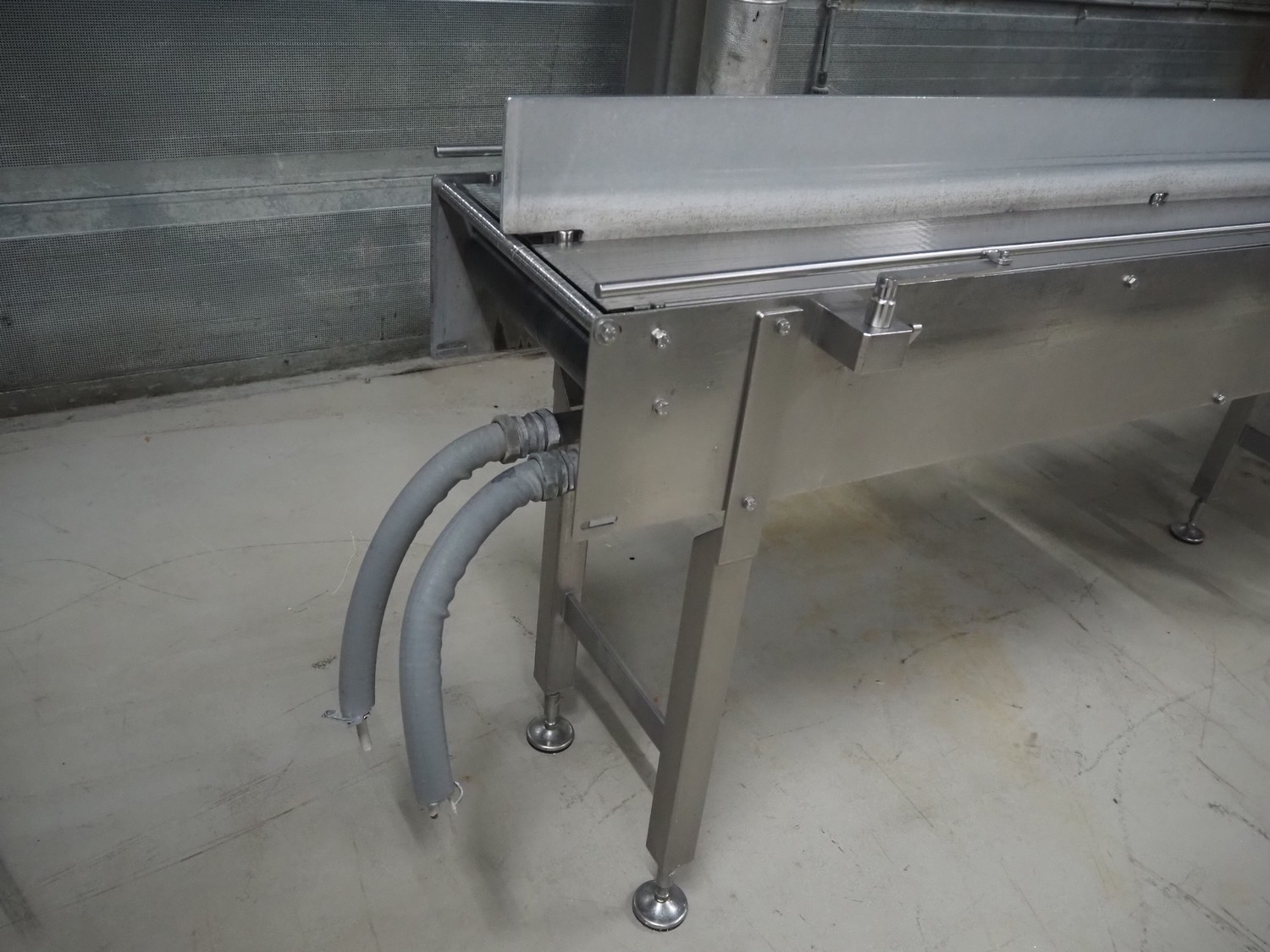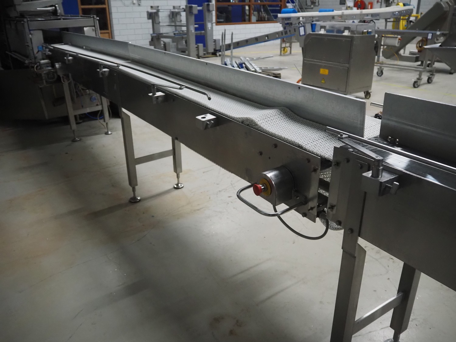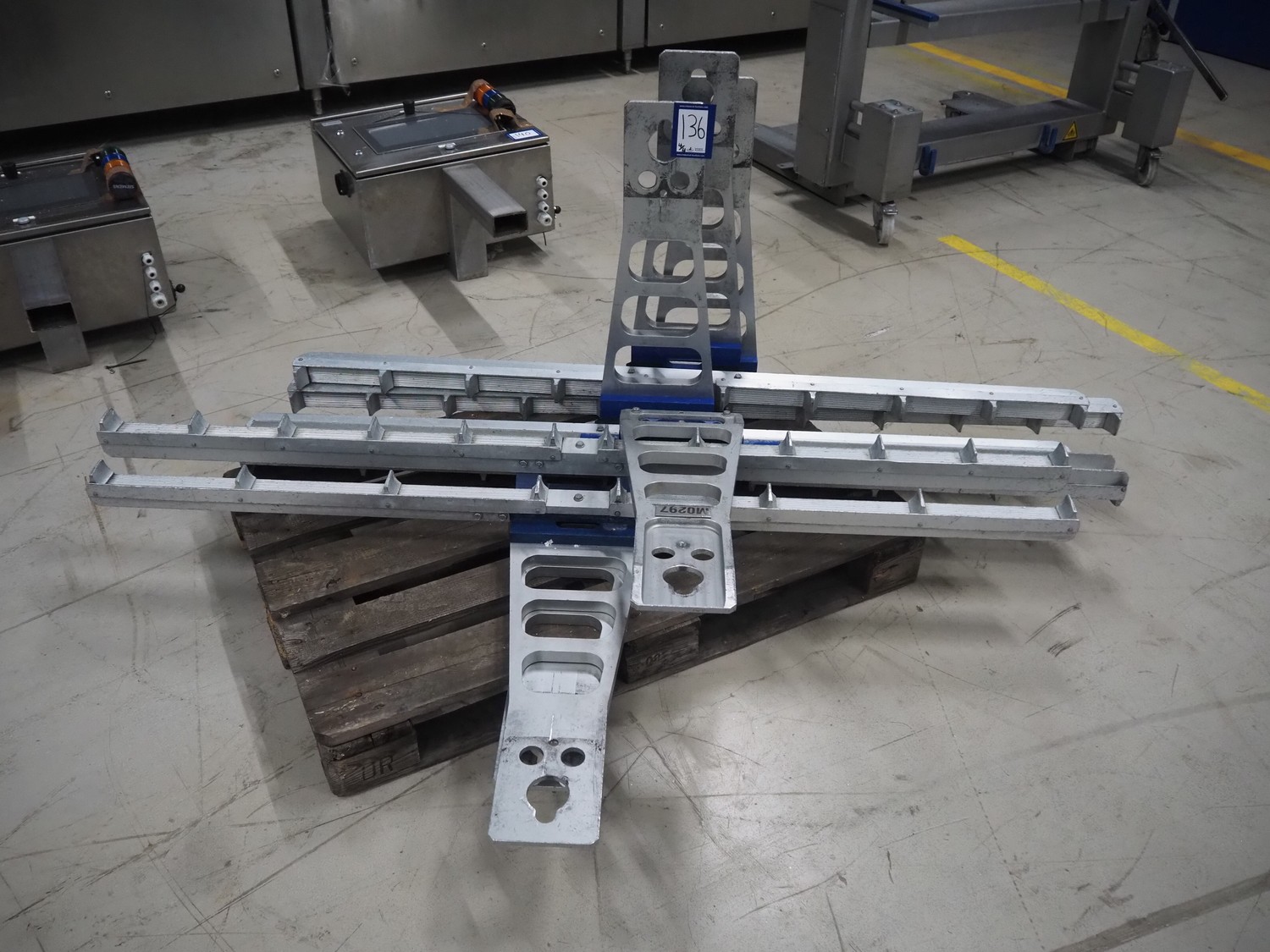 CFS traysealer, type: Twin Star, machine number: 773-116, year of construction: 2004, 400 V, 3 Ph, 50 Hz, 18 A, 12 kW, 2200 kg, plastic mesh infeed belts, belt width: (2x) 170 mm, total dimensions: 4600 mm x 1100 mm x 2200 mm, 2100 mm x 600 mm x 1100 mm and 4000 mm x 1000 mm x 1100 mm. With pallet with spacers and 2 trolleys for changing dyes, dimensions pallet: 2000 mm x 1300 mm x 900 mm, dimensions trolleys: (2x) 1900 mm x 1100 mm x 1350 mm. Incomplete.