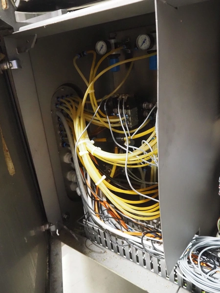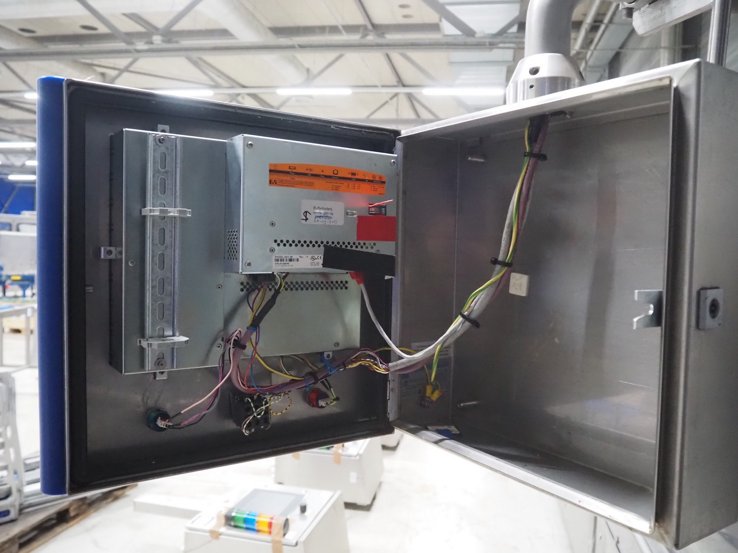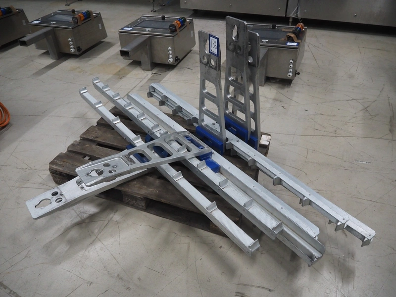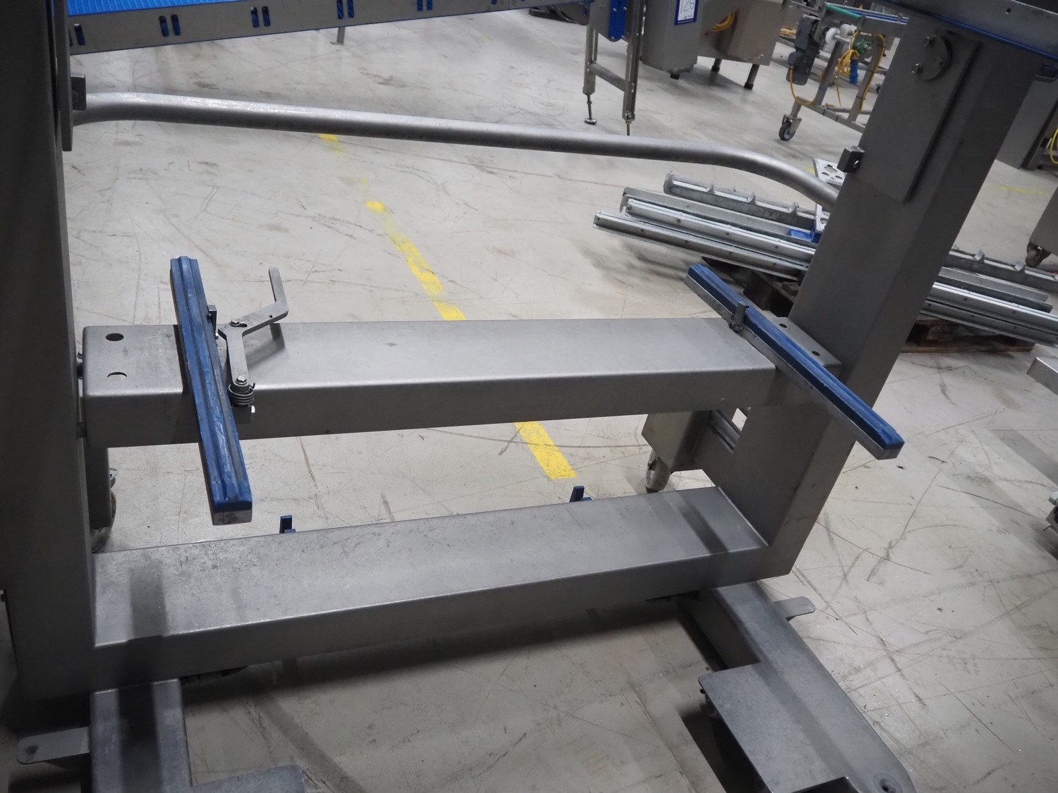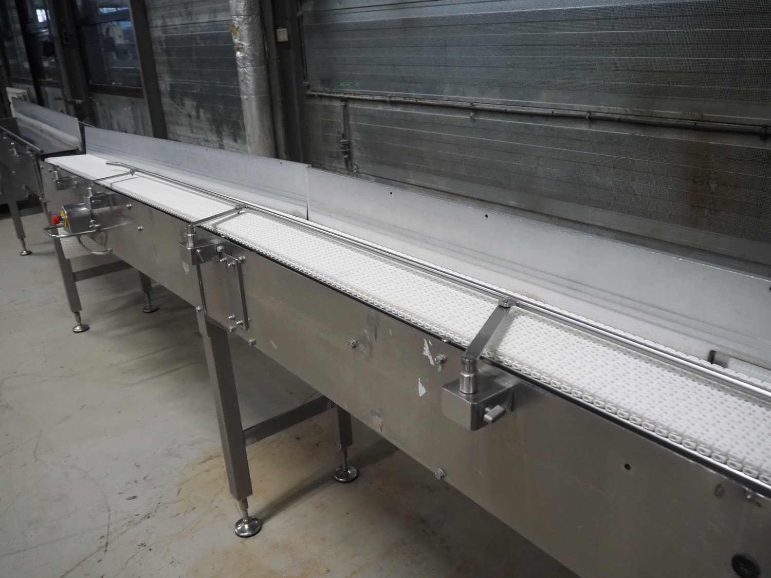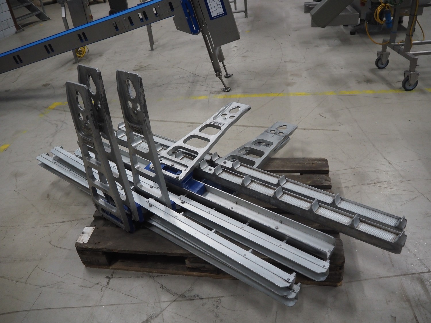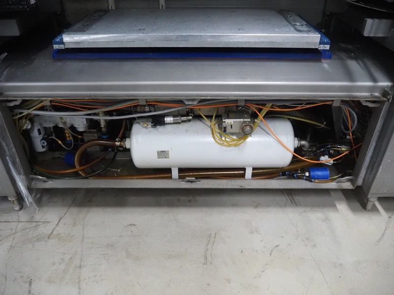 CFS traysealer, type: Twin Star, machine number: 773-116, year of construction: 2004, 400 V, 3 Ph, 50 Hz, 18 A, 12 kW, 2200 kg, plastic mesh infeed belts, belt width: (2x) 170 mm, total dimensions: 4600 mm x 1100 mm x 2200 mm, 2100 mm x 600 mm x 1100 mm and 4000 mm x 1000 mm x 1100 mm. With pallet with spacers and 2 trolleys for changing dyes, dimensions pallet: 2000 mm x 1300 mm x 900 mm, dimensions trolleys: (2x) 1900 mm x 1100 mm x 1350 mm. Incomplete.