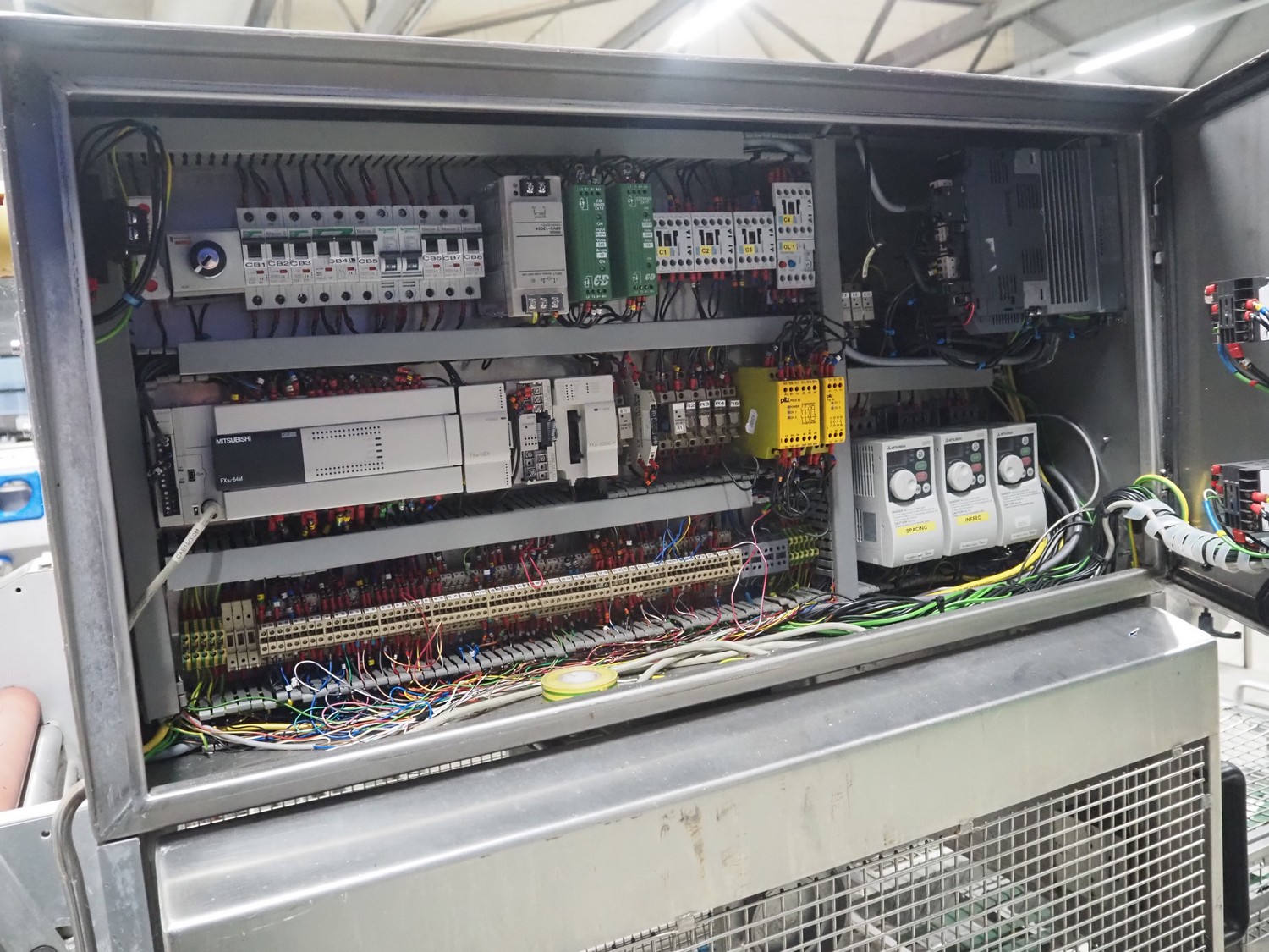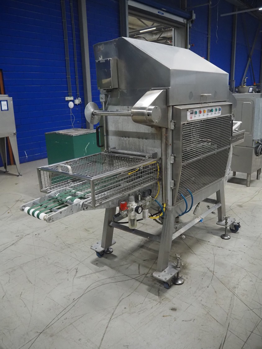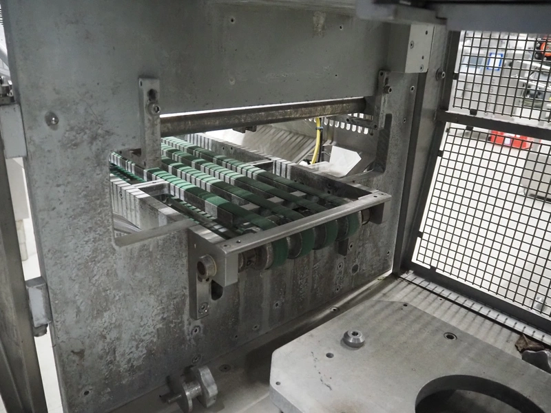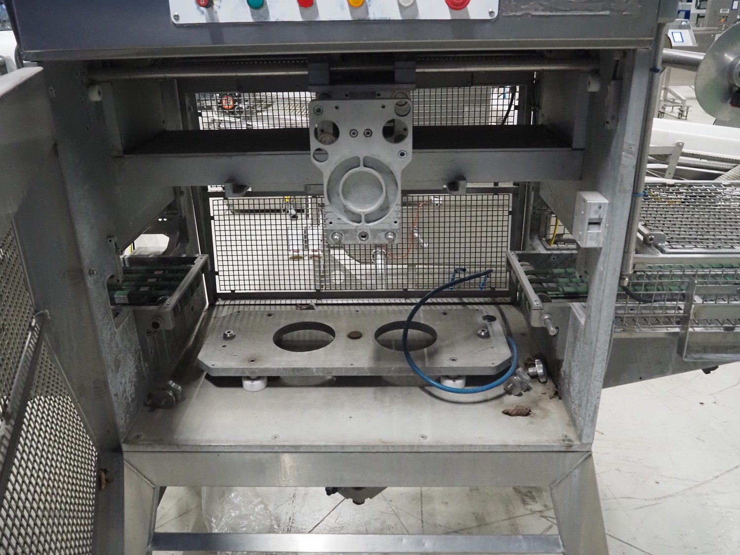 Proseal traysealer, type: Fastpack F45, serial number: 1202, 50 Hz, wire belt, belt width: 175 mm, film width: 215 mm, total dimensions: 2980 mm x 850 mm x 1950 mm. Incomplete, missing dye.