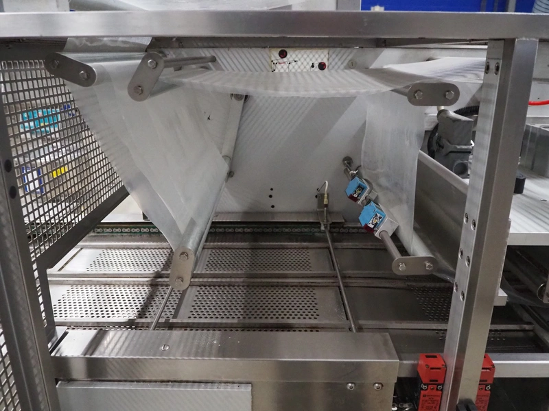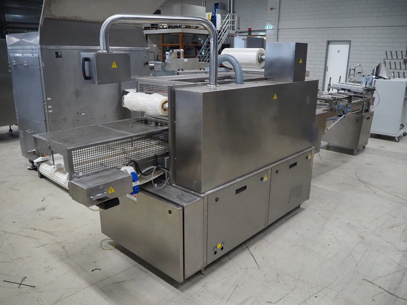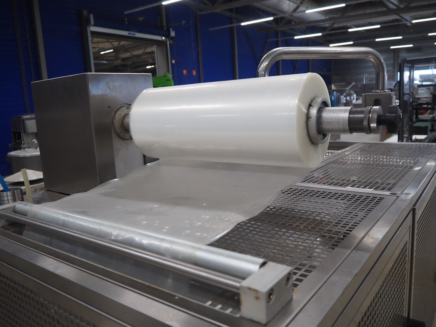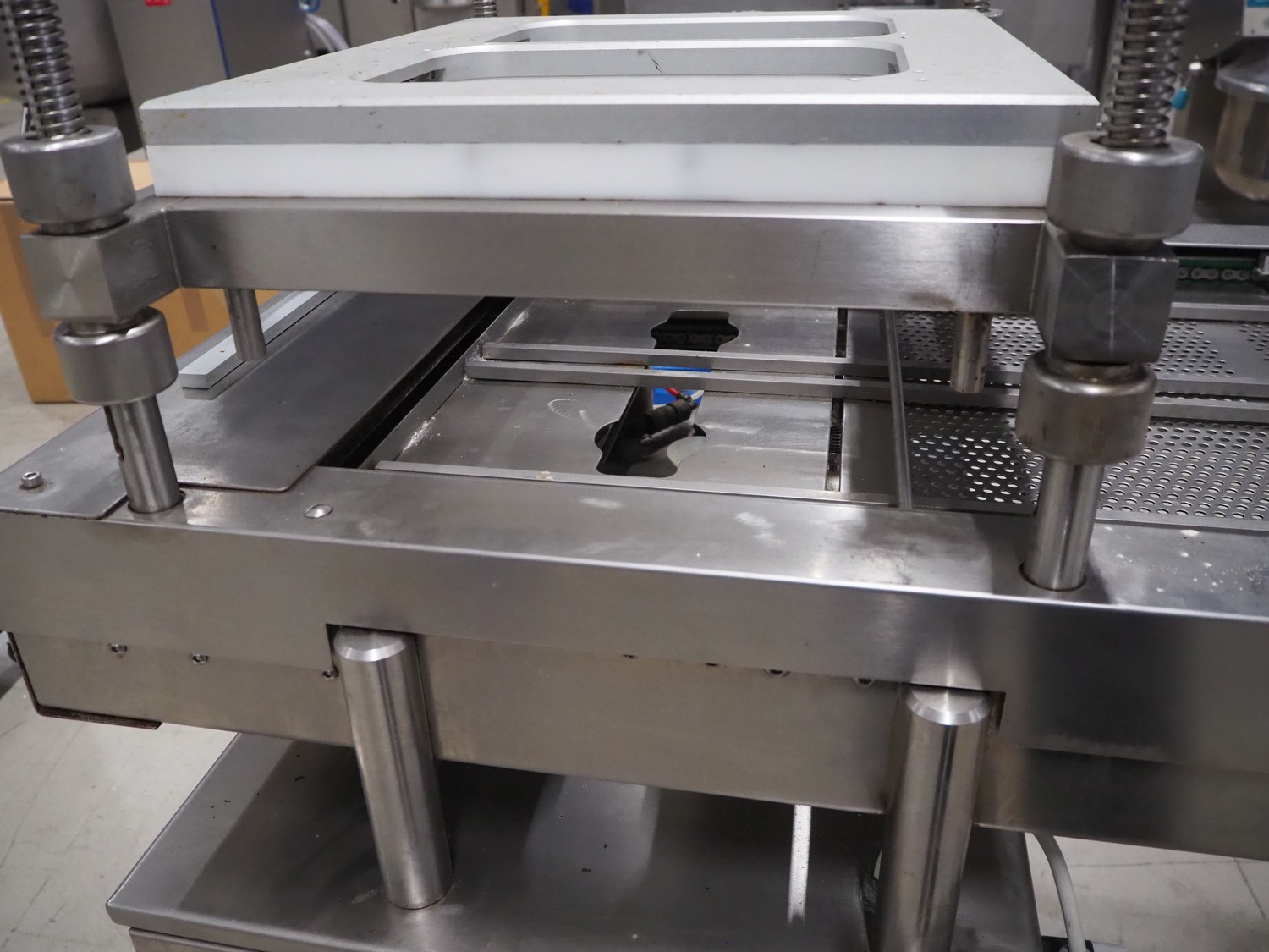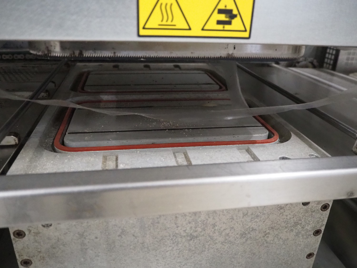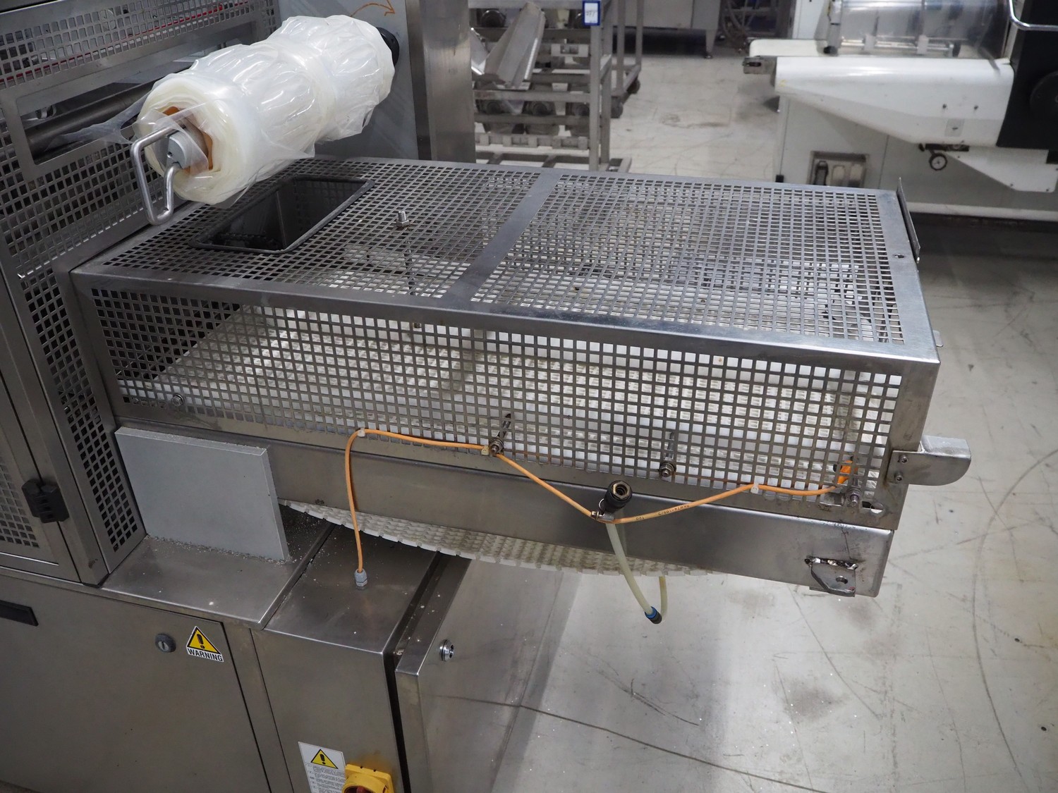 Polimoon traysealer, model: 1911VG, serial number: 1203007, year of construction: 2003, 220 V, 3 Ph, 50 Hz, 31 A, dye: (2x) 250 mm x 150 mm, film width: 430 mm, total dimensions: 5550 mm x 1000 mm x 1900 mm.