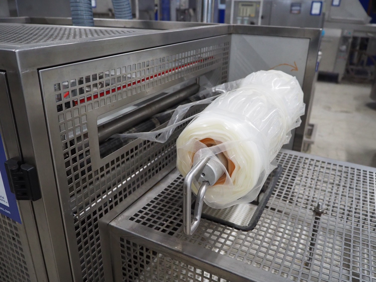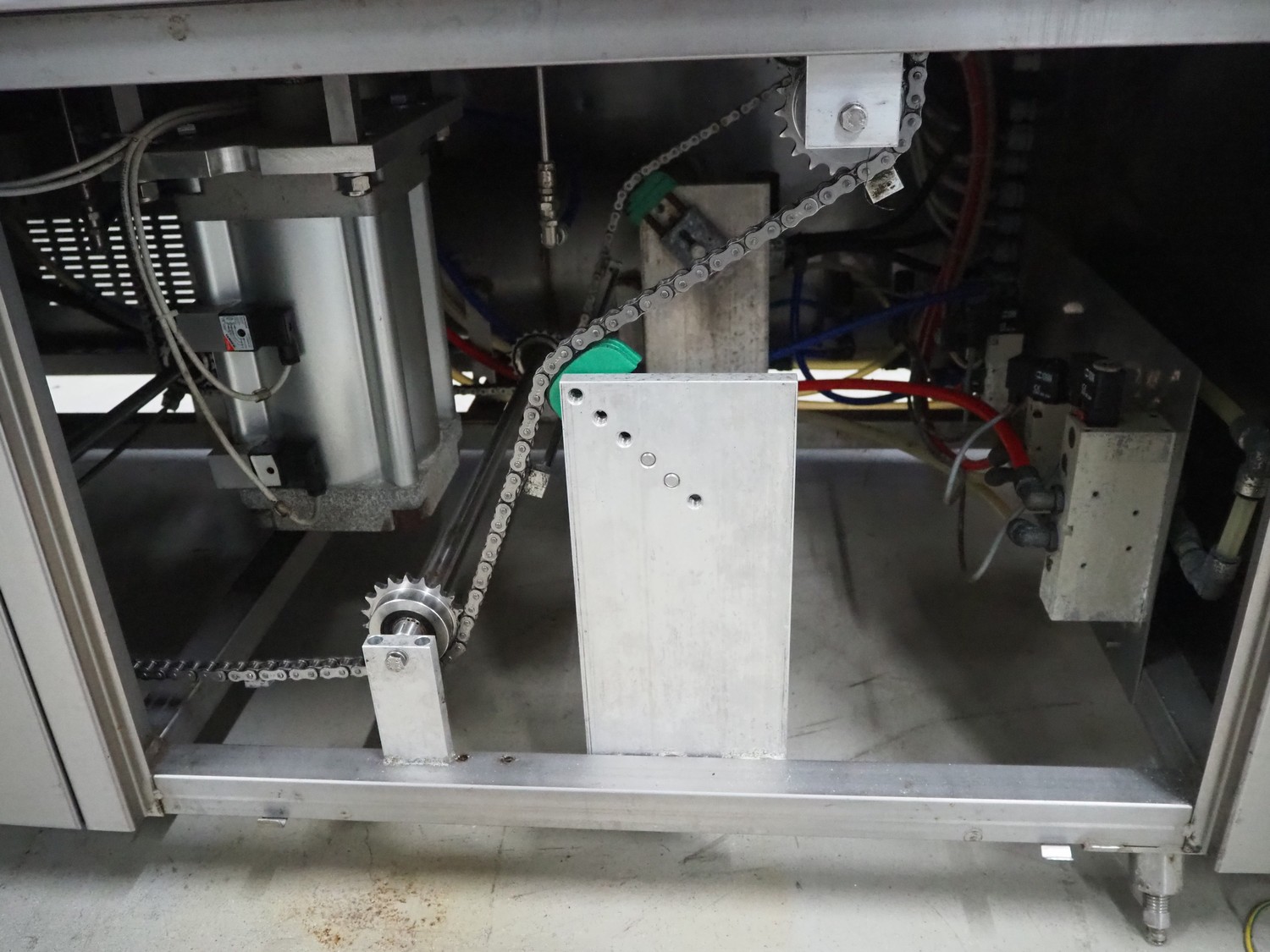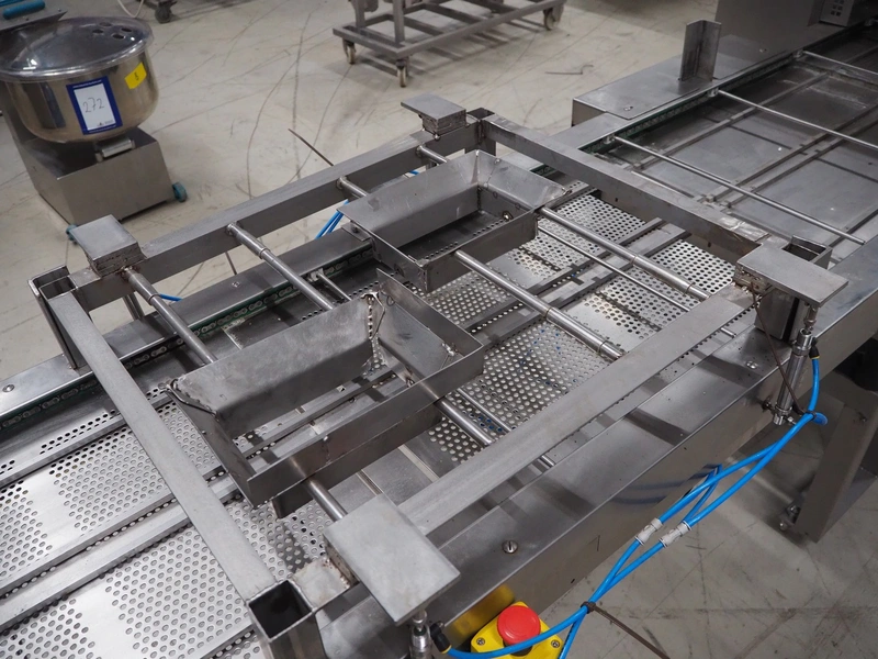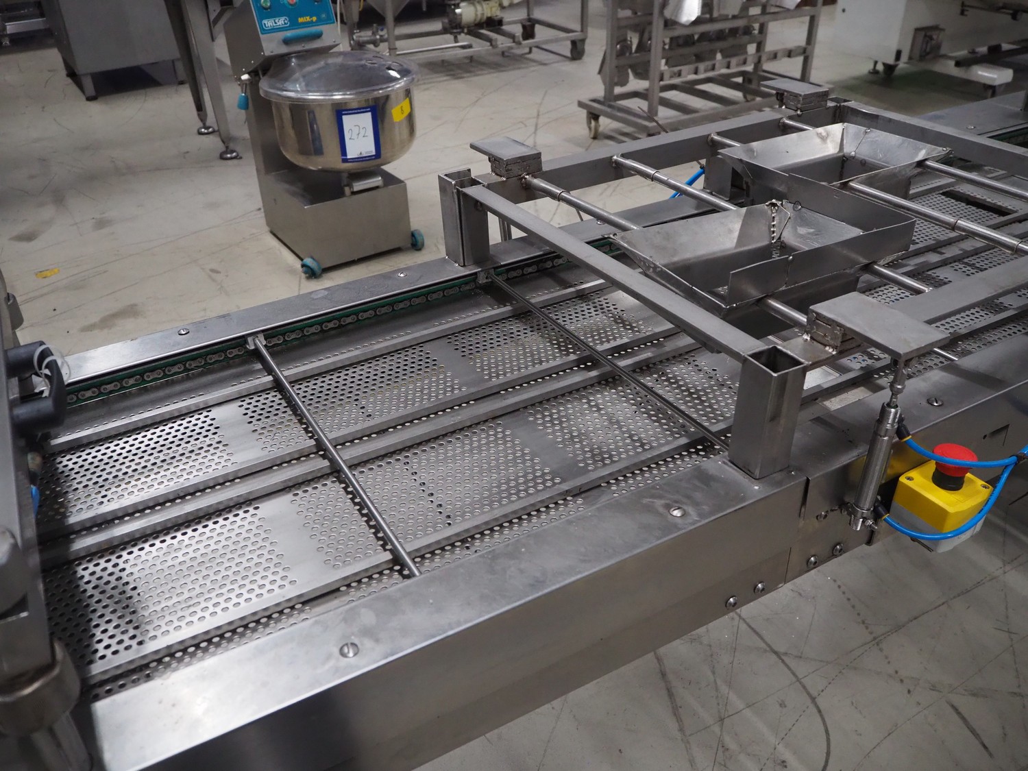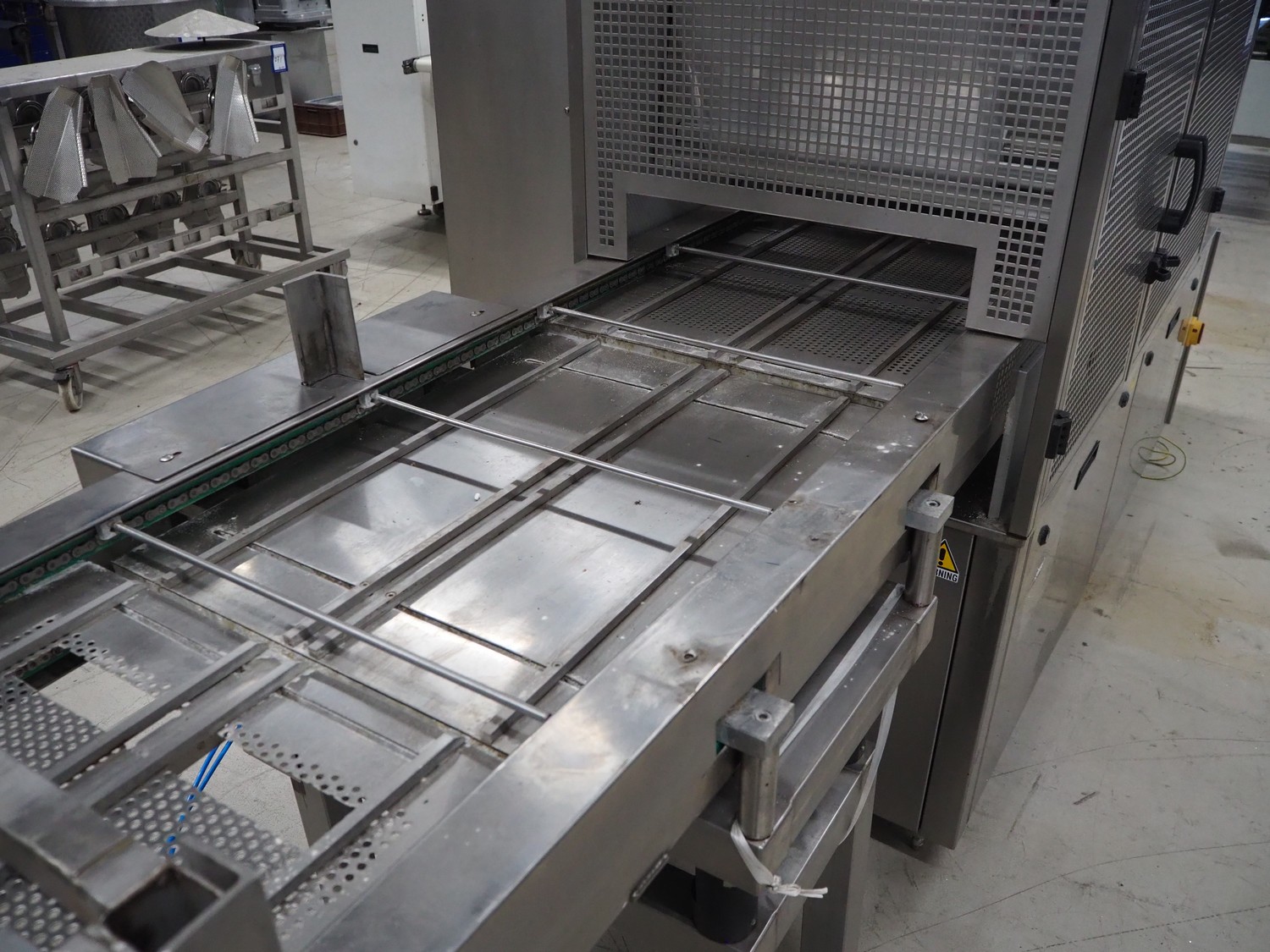 Polimoon traysealer, model: 1911VG, serial number: 1203007, year of construction: 2003, 220 V, 3 Ph, 50 Hz, 31 A, dye: (2x) 250 mm x 150 mm, film width: 430 mm, total dimensions: 5550 mm x 1000 mm x 1900 mm.
