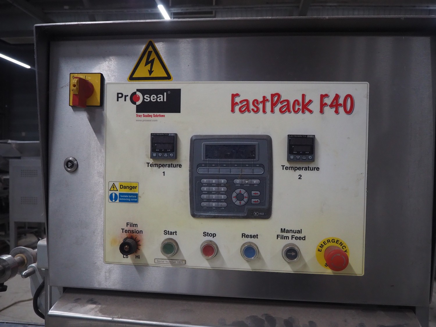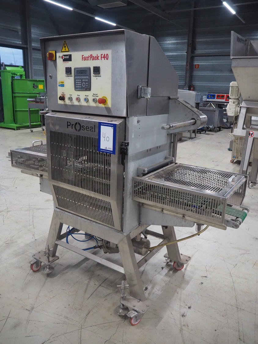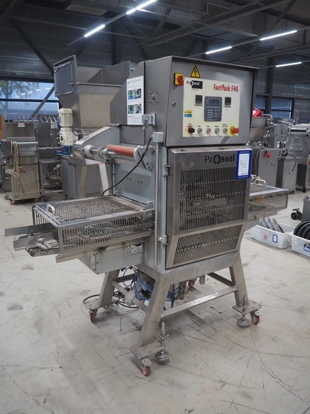 Proseal mobile traysealer, model: Fastpak F40, serial number: 1871, year of construction: 2009, 230 V, 50 Hz, plastic string belt, belt width: 175 mm, dimensions dye: (2x) 180 mm x 170 mm, total dimensions: 2350 mm x 860 mm x 1970 mm. Including pallet with parts, dimensions: 1200 mm x 800 mm x 600 mm. Overhauled in 2023.