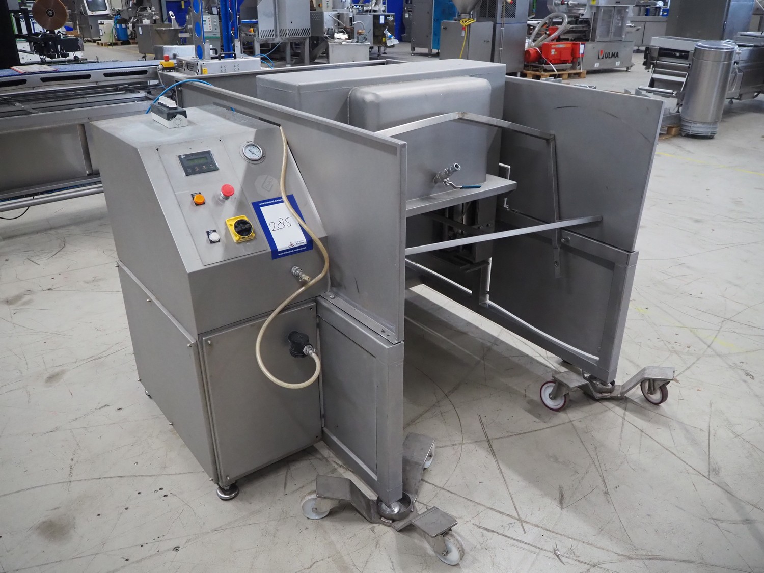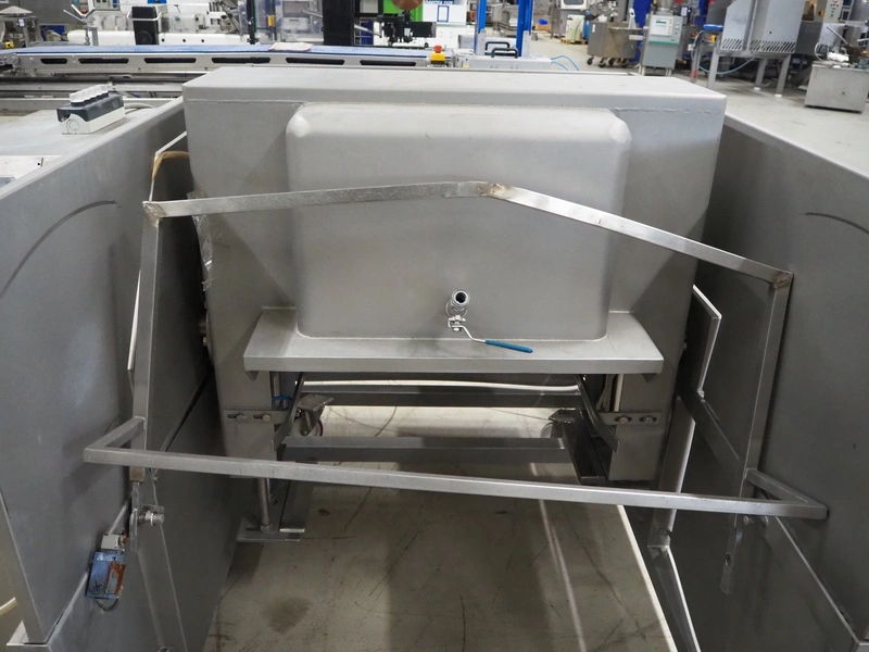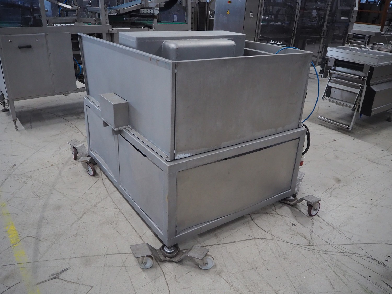 Garos tumbler for 200 liter meat bins, type: GAT 300, machine number: 41015048, year of construction: 2000, 380/220 V, 50 Hz, 2.3 A, weight: 685 kg, capacity: 400 kg, dimensions: 1750 mm x 1600 mm x 1300 mm. Without rollies.