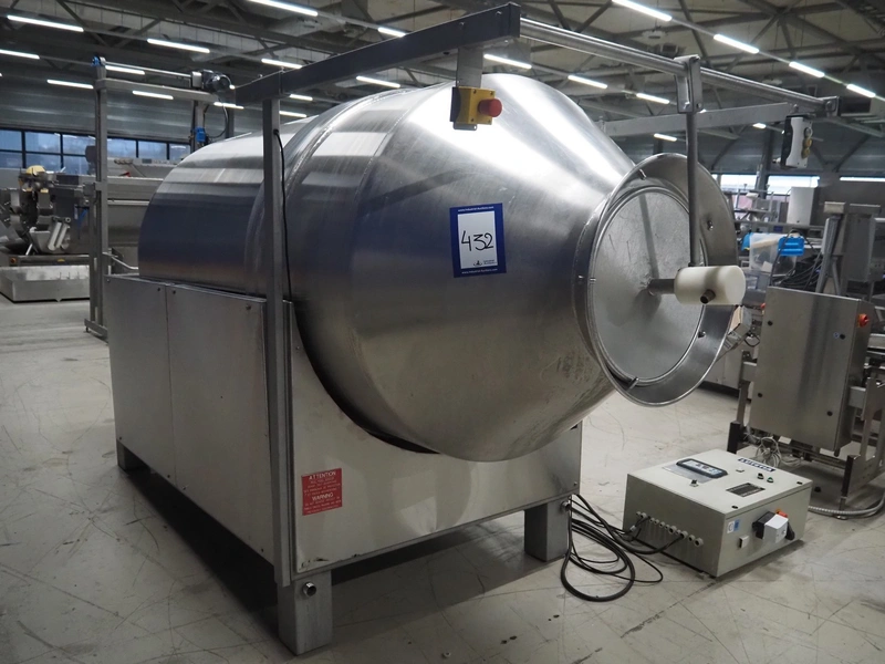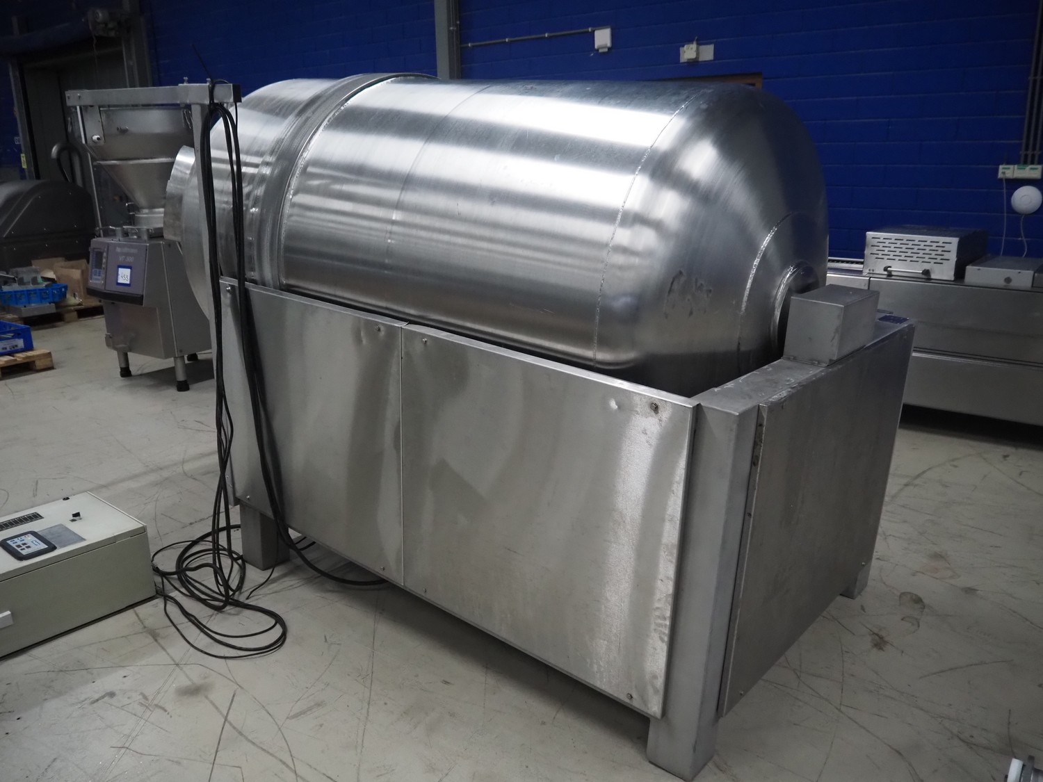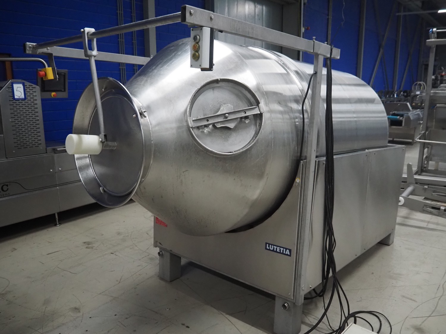 Lutetia vacuum tumber, type: 4, number: 15230, year of construction: 1996, 380 V, 50 Hz, 6.6 kW, 1400 kg, volume: 1800 liter, dimensions: 3300 mm x 1500 mm x 2100 mm. Without vacuum pump.