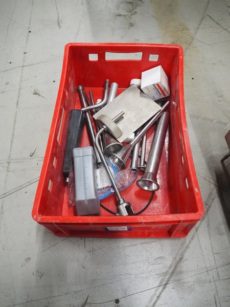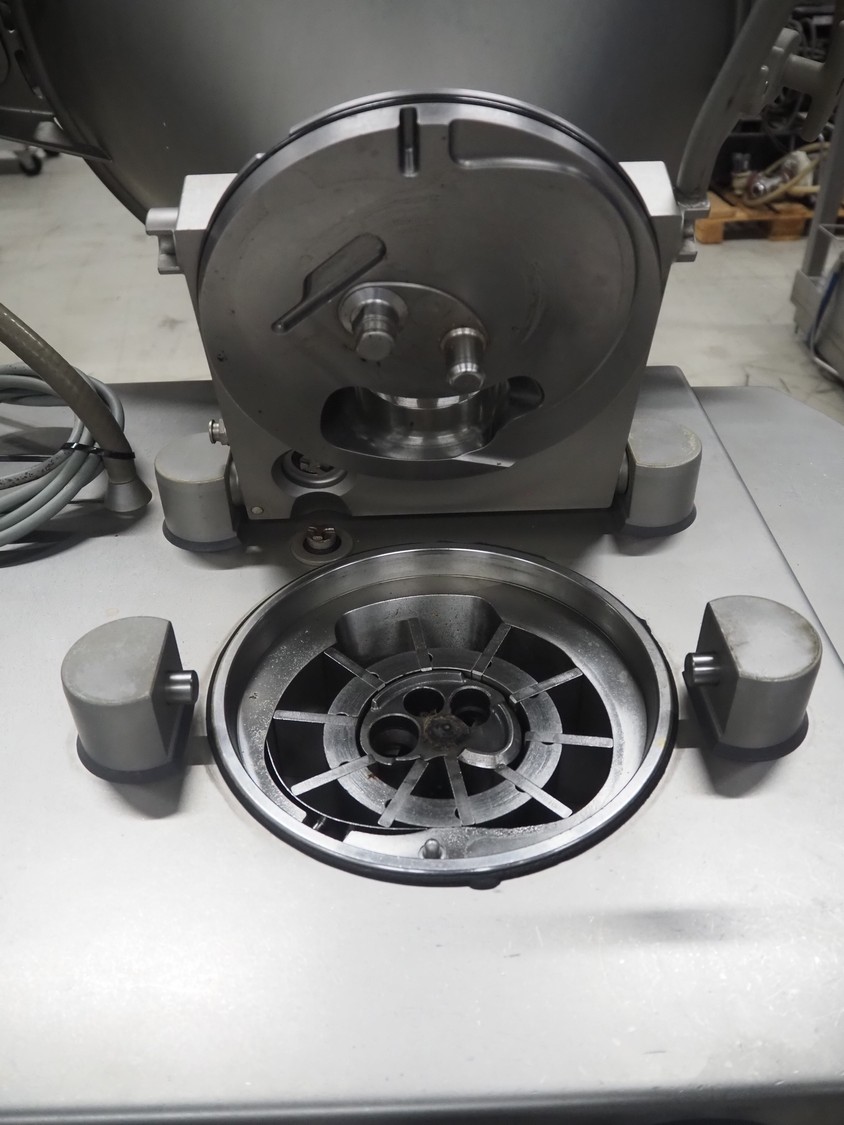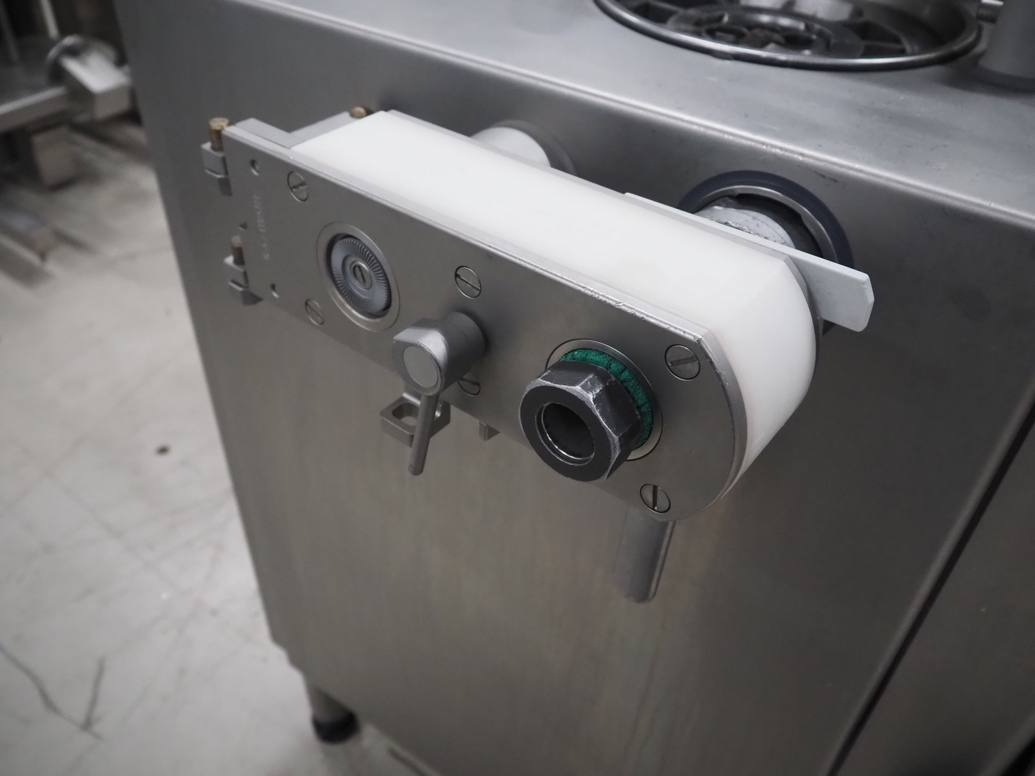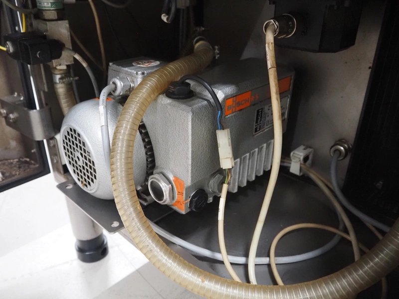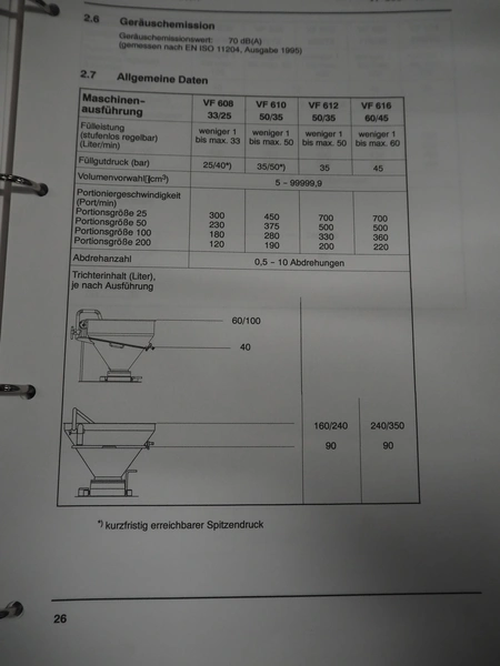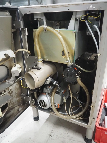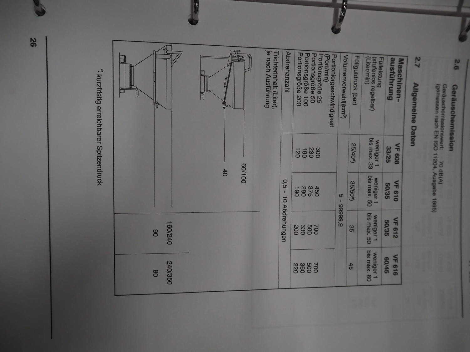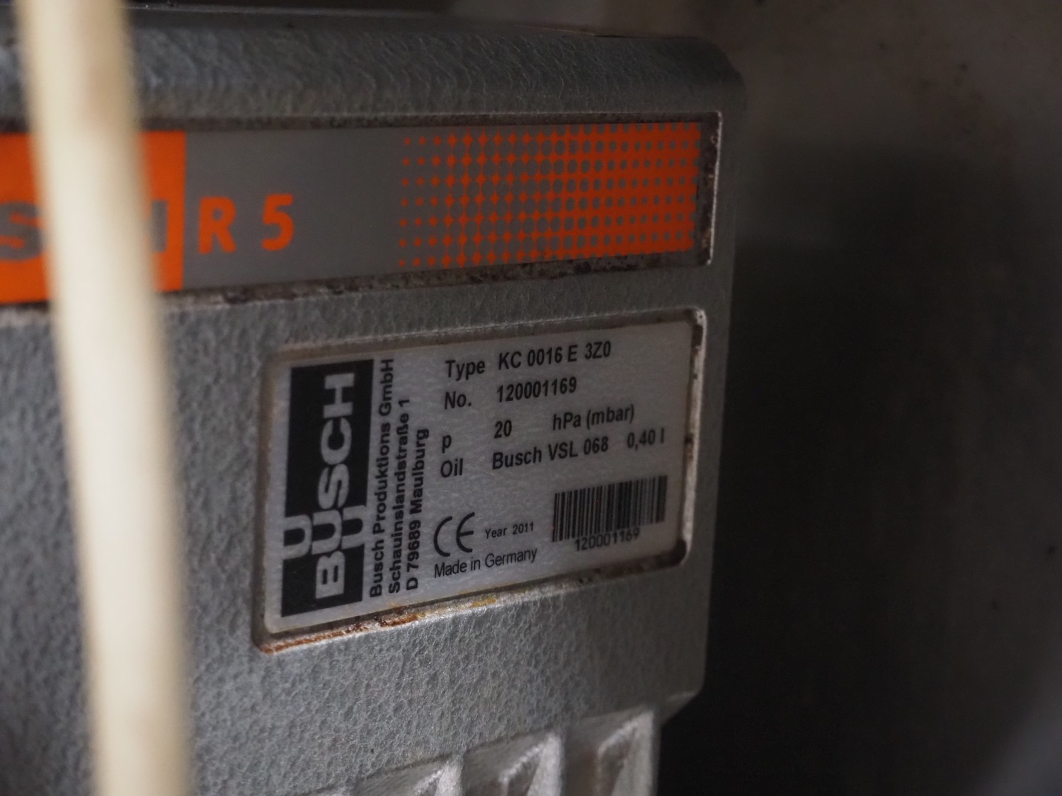 Handtmann vacuum filling machine with linking attachment, type: VF610, number: 30865, year of construction: 2012, 400 V, 3 Ph, 50 Hz, 3.5 kW, number attachment: 34-5/13325773, Busch vacuum pump, type: KC 0016 E 3Z0, number: 120001169, year of construction: 2011, capacity: 16 m³ per hour, dimensions: 870 mm x 780 mm x 1770 mm.