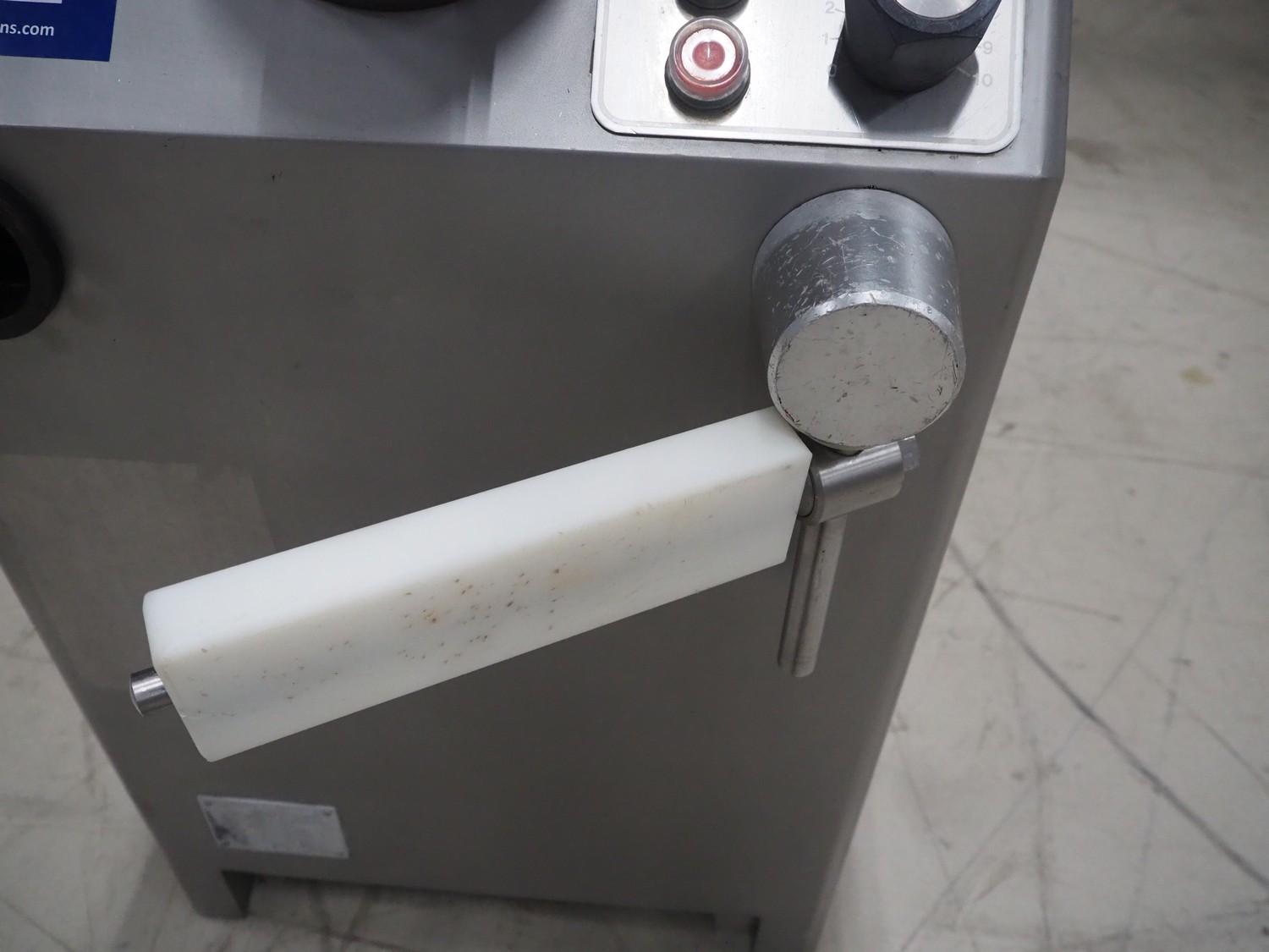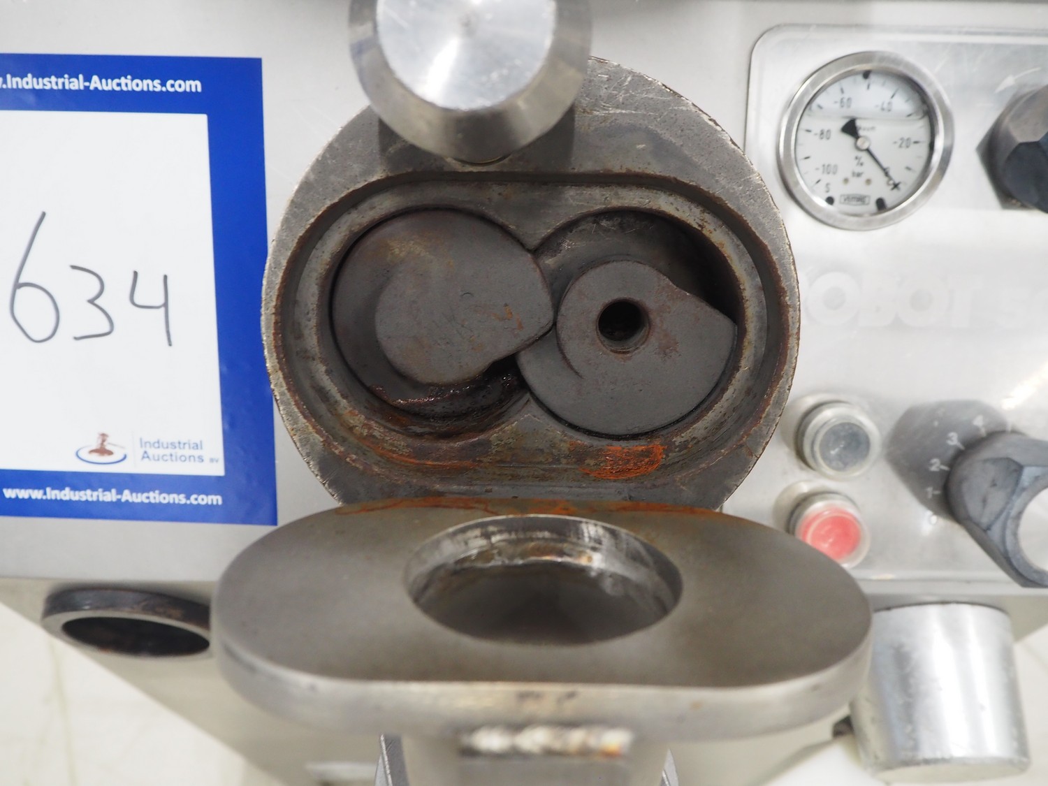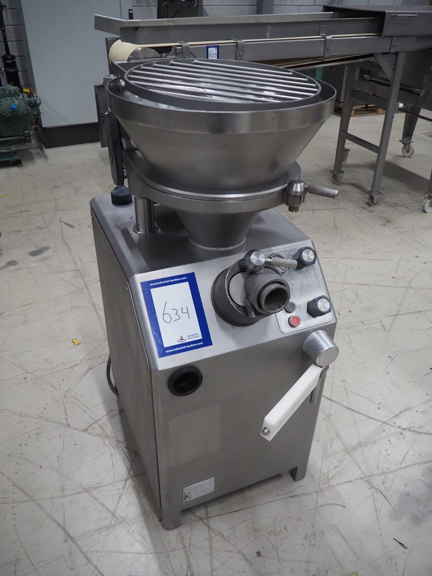 Vemag vacuum filling machine, model: Robot 500, type: 128/40, number: 128.1087-1, 380/280 V, 50 Hz, 25 A, Rietschle vacuum pump, type: VVL I5 (01), capacity: 15 m³ per hour, dimensions: 580 mm x 1020 mm x 1320 mm.