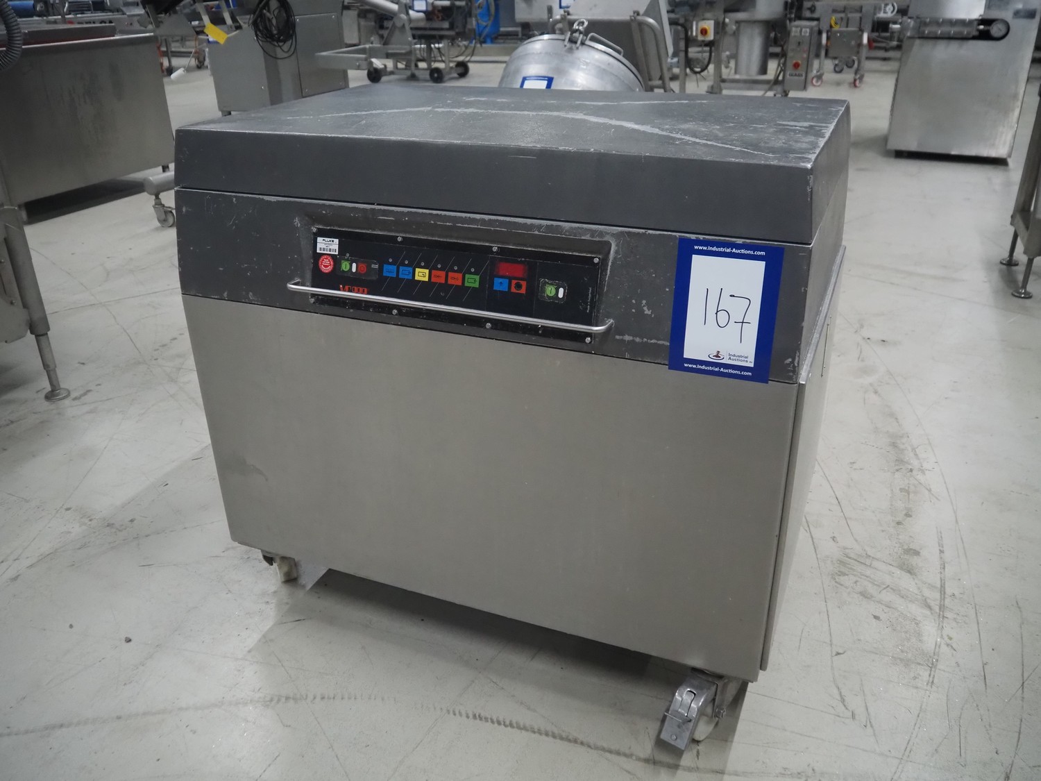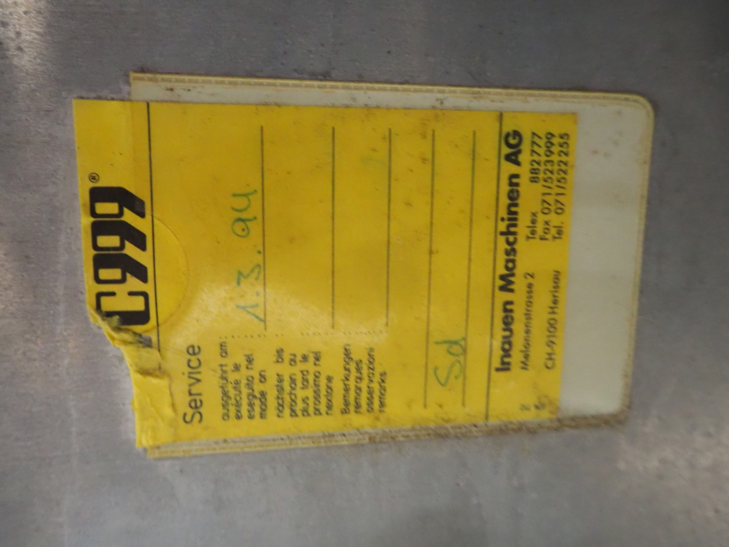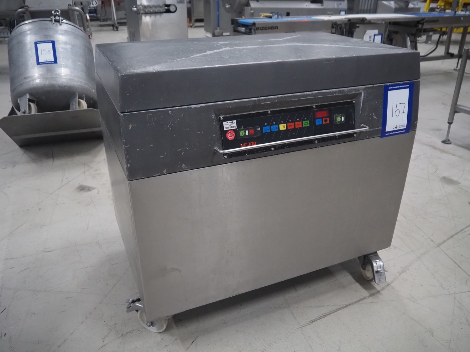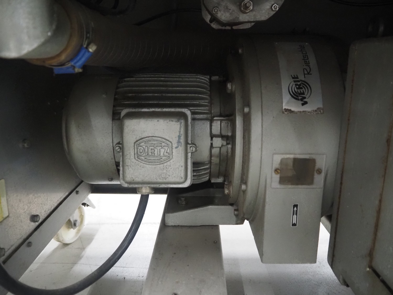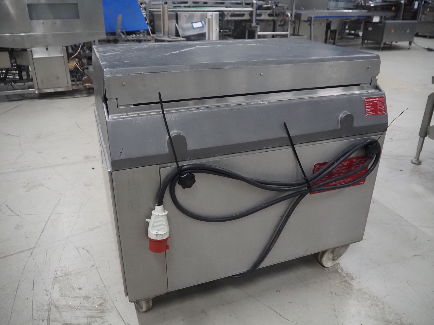 Inauen Maschinen AG mobile vacuum machine, type: VC999/03 P, machine number: 0392 717, 380 V, 3 Ph, 50 Hz, 15 A, 10 kW, seal width: (1x) 1000 mm and (2x) 450 mm, Rietschle vacuum pump, type: CLFH 220 V (01), fabrication number: 1414623, year of construction: 1991, capacity: 220 m³ per hour, total dimensions: 1130 mm x 750 mm x 1030 mm.