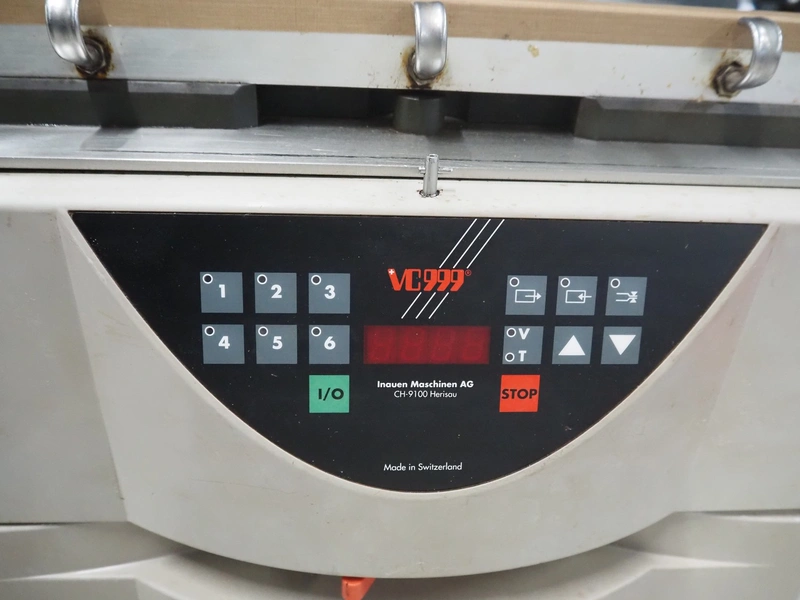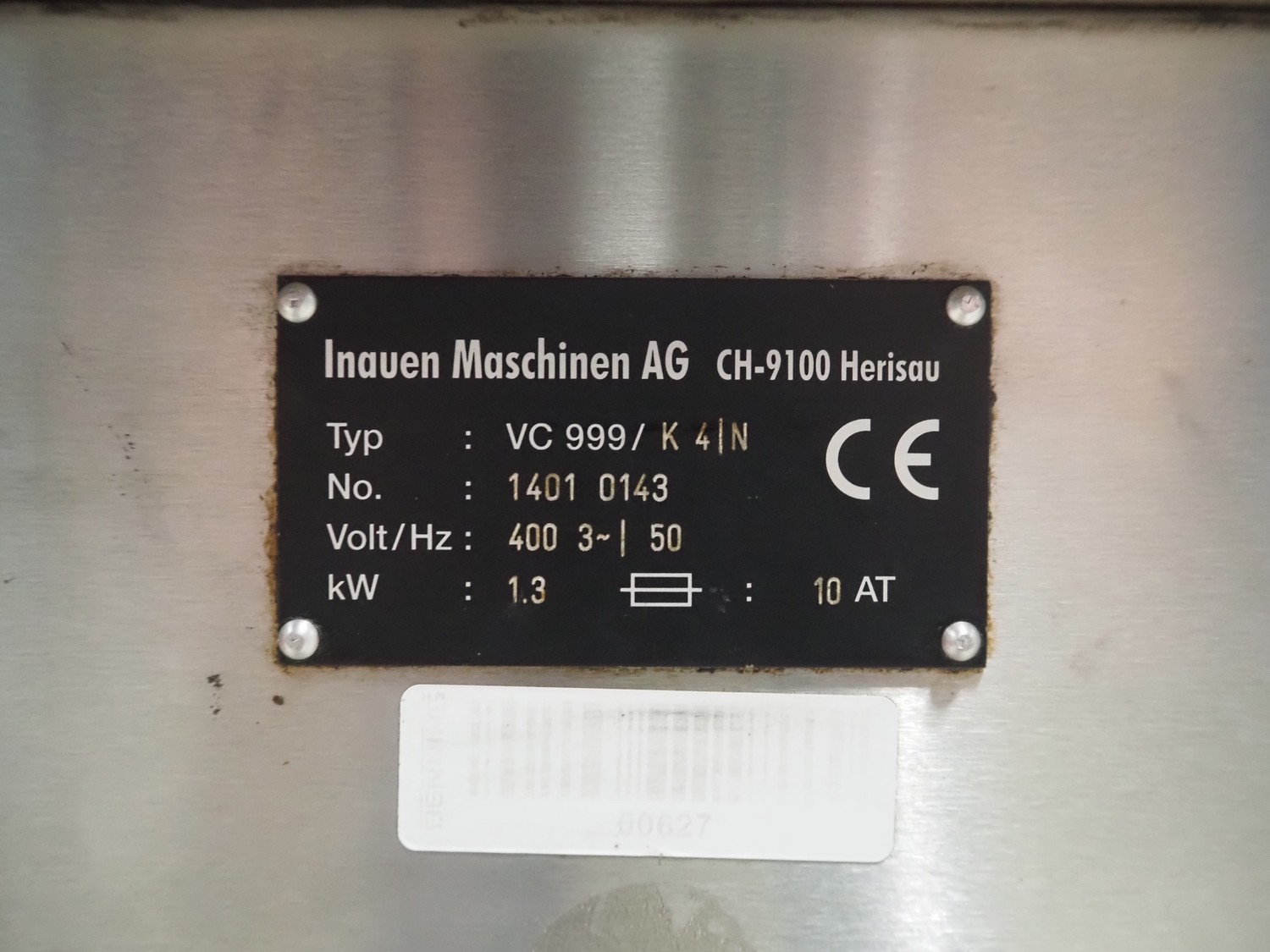 Inauen Maschinen AG mobile vacuum machine, type: VC999/K4|N, number: 1401 0143, 400 V, 3 Ph, 50 Hz, 1.3 kW, seal length: 460 mm, dimensions chamber: 510 mm x 470 mm, total dimensions: 780 mm x 520 mm x 1030 mm.