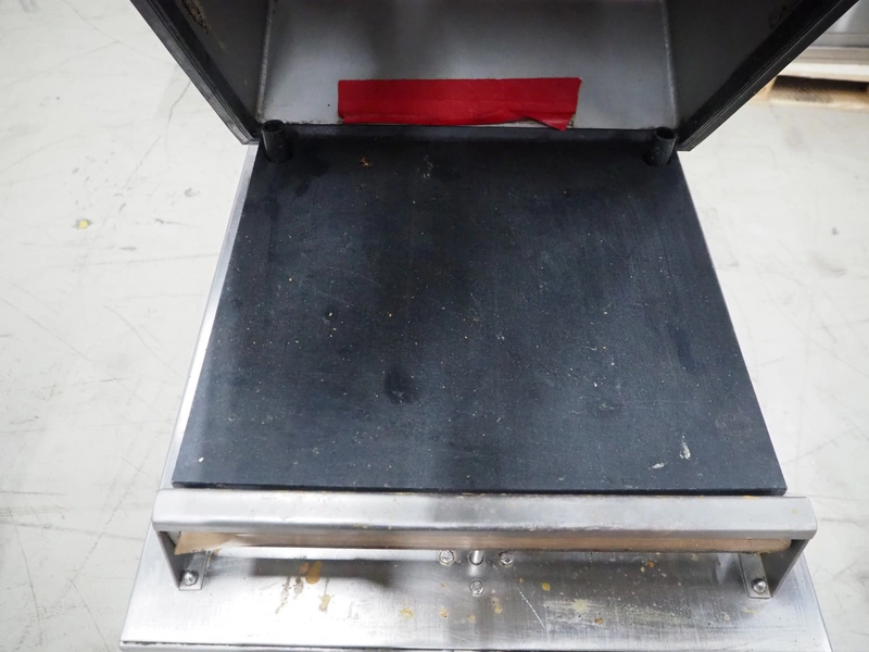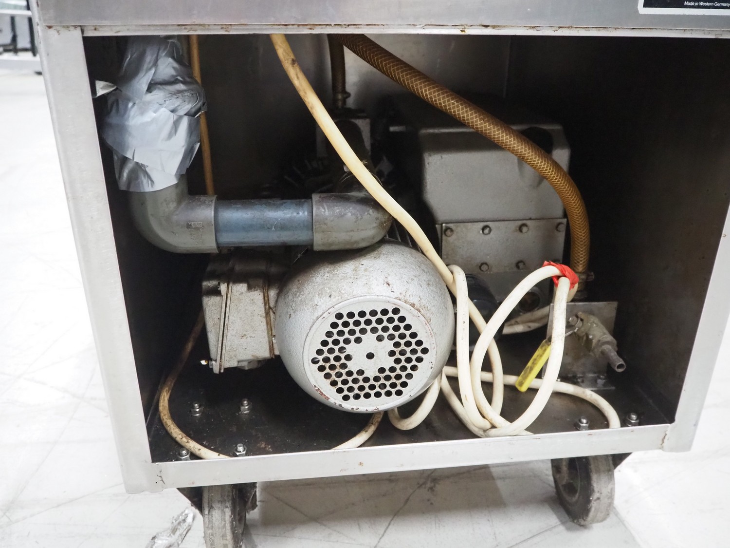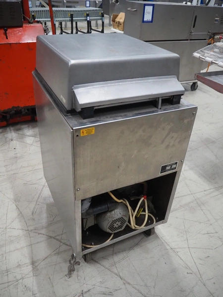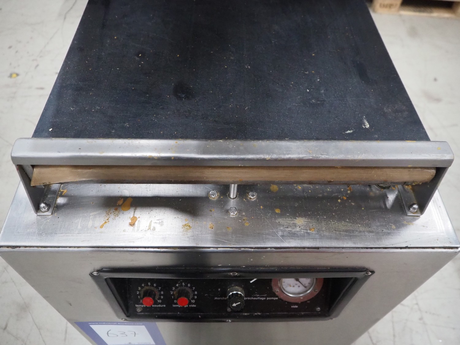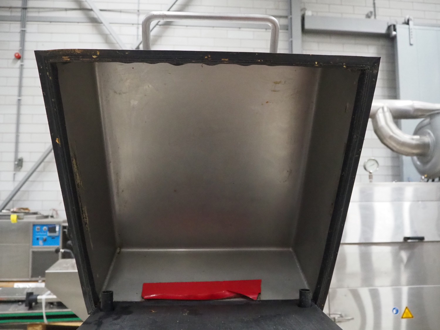 Läcovac mobile vacuum machine, type: CV-super, number: 1585, 220/380 V, 1.5 kW, Busch vacuum pump, seal length: 460 mm, dimensions chamber: 490 mm x 490 mm, total dimensions: 750 mm x 570 mm x 1100 mm.