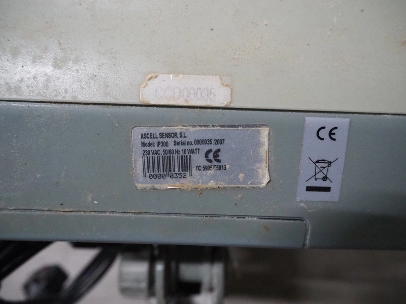 Ascell Sensor S.L. weighing scale, model: IP300, serial number: 0000035, year of construction: 2007, 230 V, 50/60 Hz, 10 W, maximum weight: 30 kg, minimum weight: 200 gram, e= 10 gram, dimensions scale: 400 mm x 300 mm, total dimensions: 510 mm x 300 mm x 550 mm.