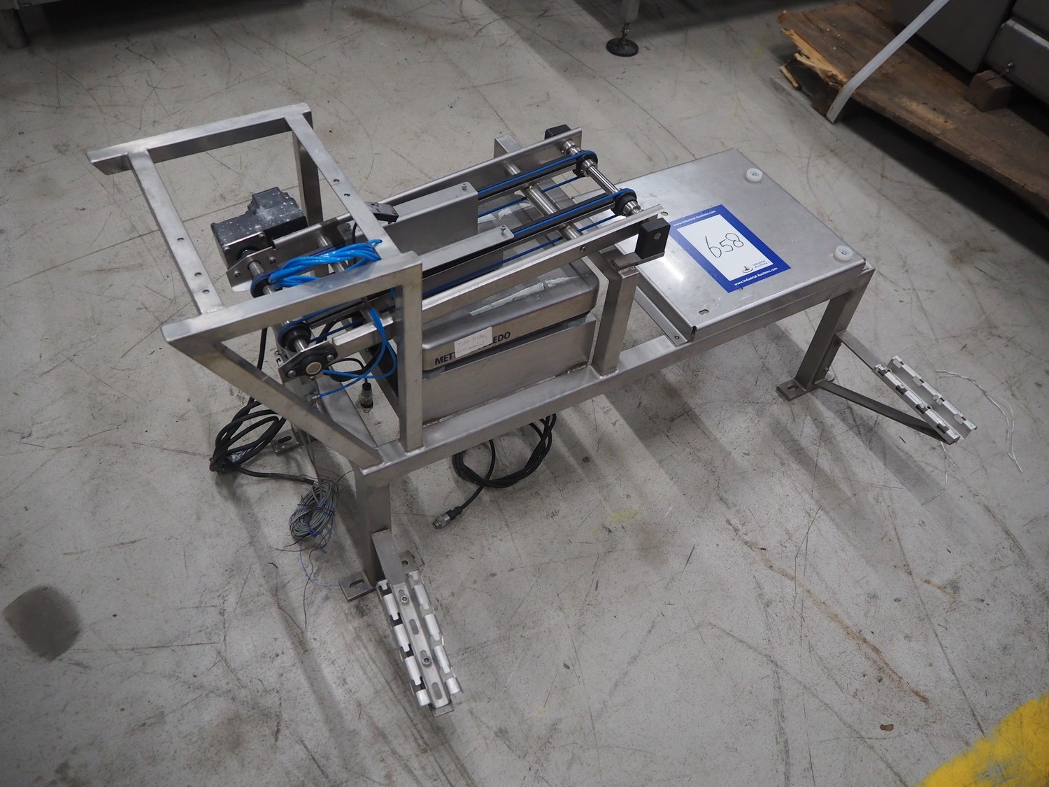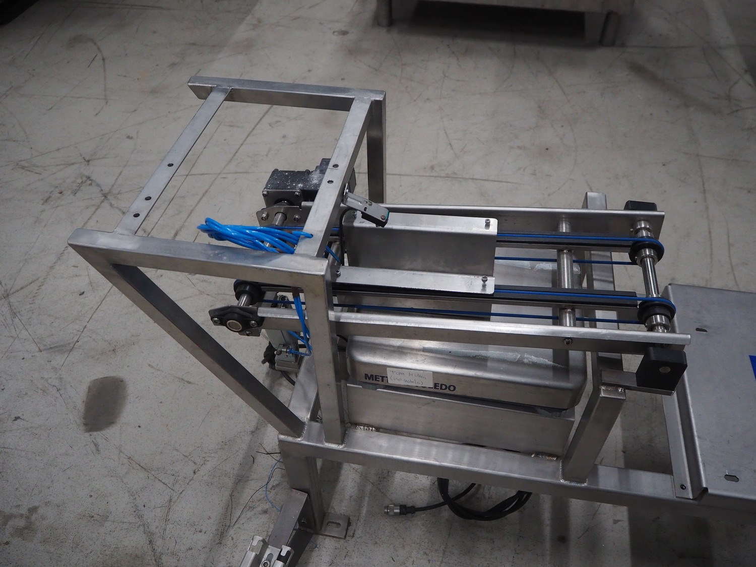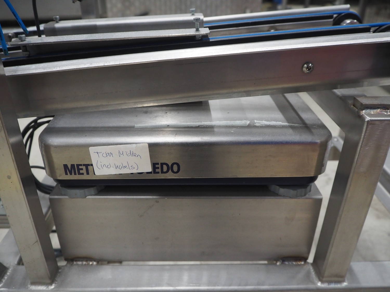 Mettler Toledo weighing scale, plastic string belt, belt width: 120 mm, total dimensions: 1200 mm x 680 mm x 700 mm. Incomplete.
