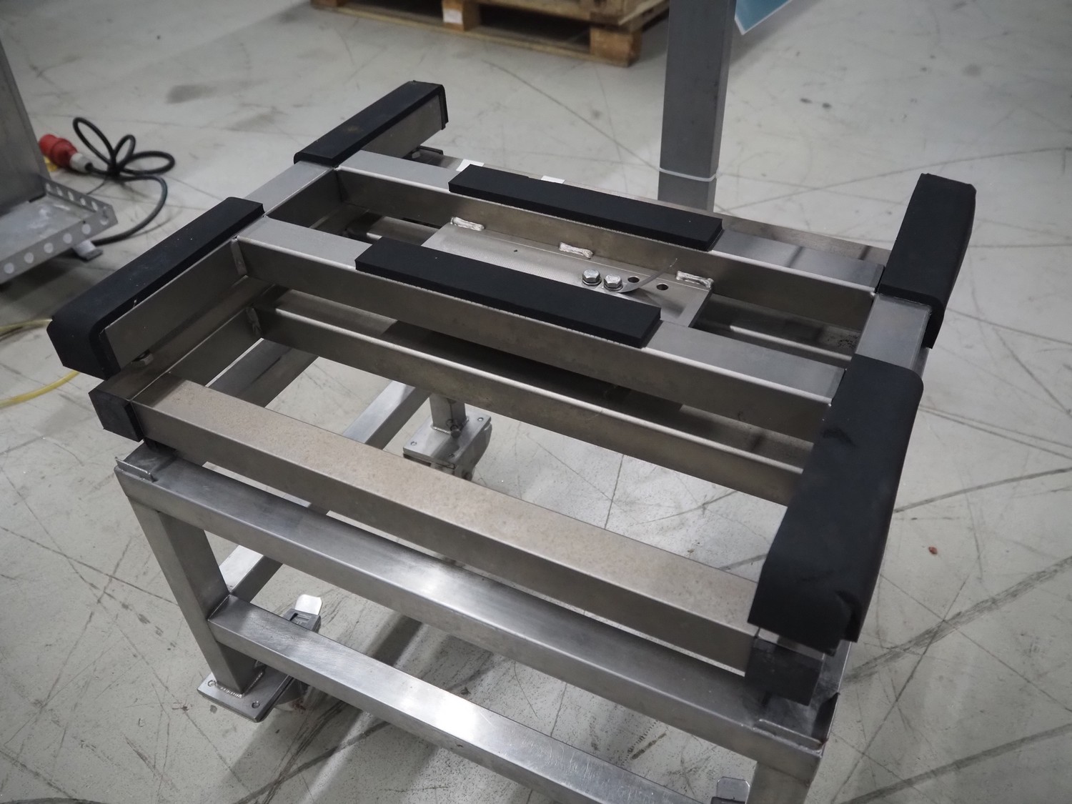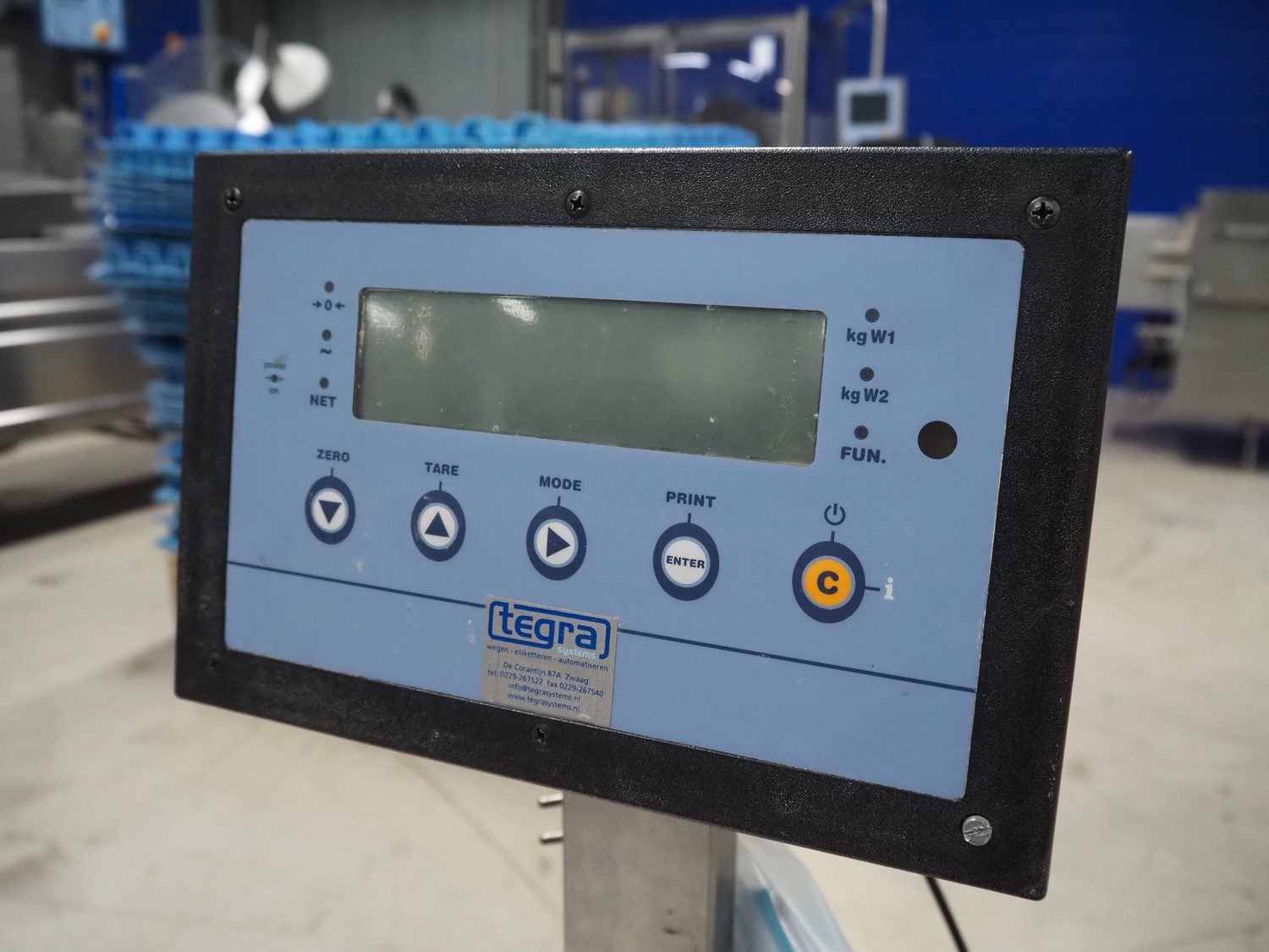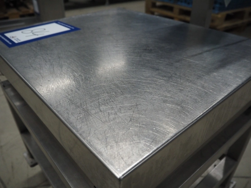 Dini Argeo weighing scale on s/s trolley, model: DFW-03, serial number: 91985, 220 V, 50-60 Hz, 15 W, maximum weight: 150 kg, e= 20 gram, dimensions scale: 500 mm x 600 mm, total dimensions: 600 mm x 600 mm x 1120 mm.