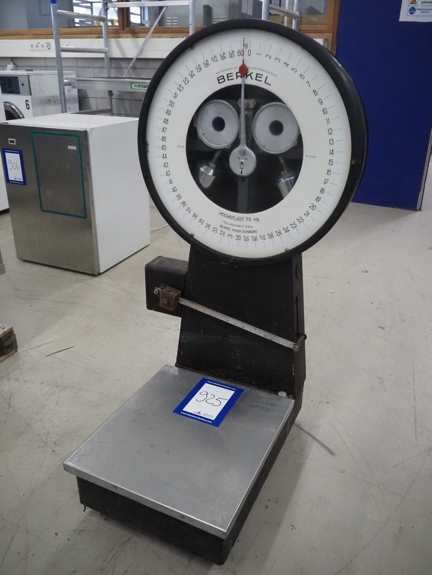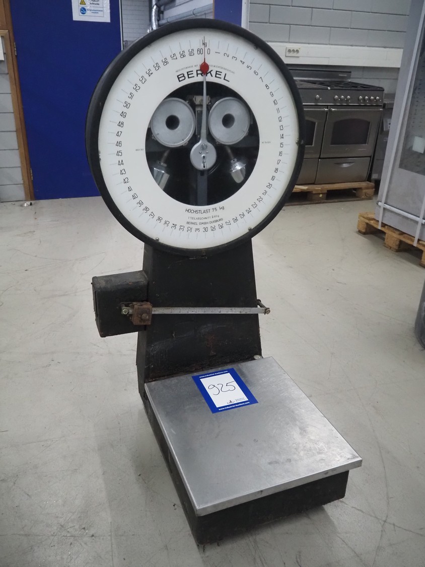 Berkel weighing scale, number: 54 023, maximum weight: 75 kg, dimensions: 700 mm x 670 mm x 1200 mm.