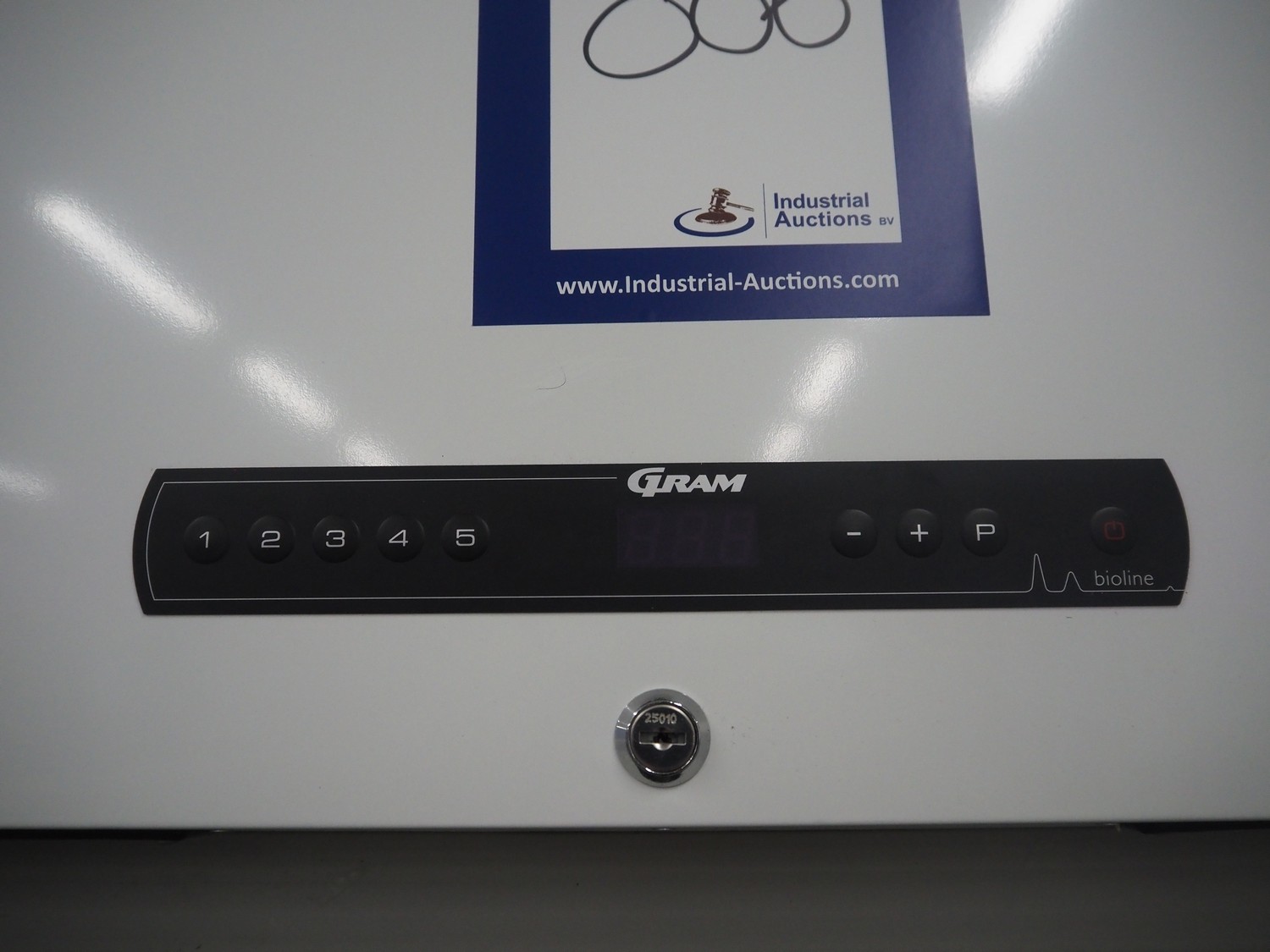 Gram mobile laboratory refrigerator, type: ER 930 LG E 11213041, serial number: 101887221, year of construction: 2015, 230 V, 50 Hz, 2.75 A, 464 W, refrigerant: R290, 126 gram, dimensions: 1070 mm x 780 mm x 2150 mm.