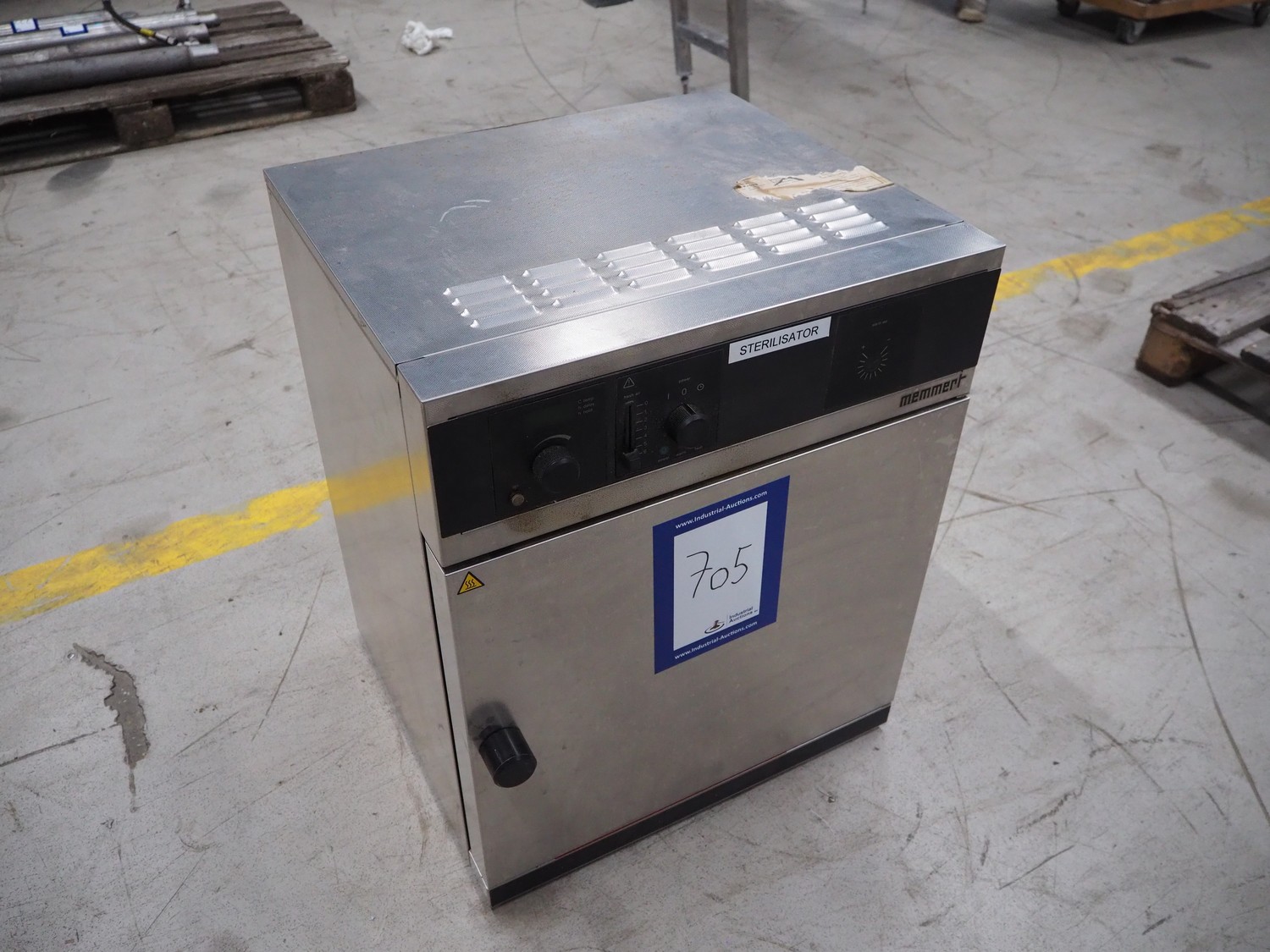 Memmert heating and drying oven, type: ULE 400, fabrication number: g402.0684, 230 V, 50/60 Hz, 6.1 A, 1400 W, dimensions: 550 mm x 550 mm x 670 mm.