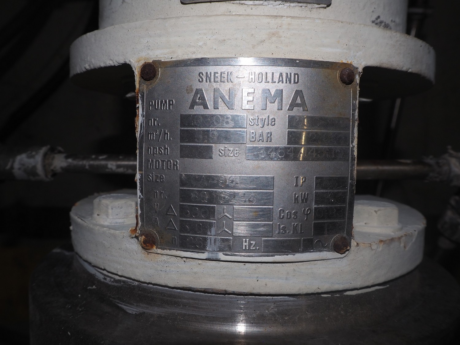 Anema centrifugal pump, capacity: 5.8 m³ per hour, dimensions: 600 mm x 250 mm x 500 mm.