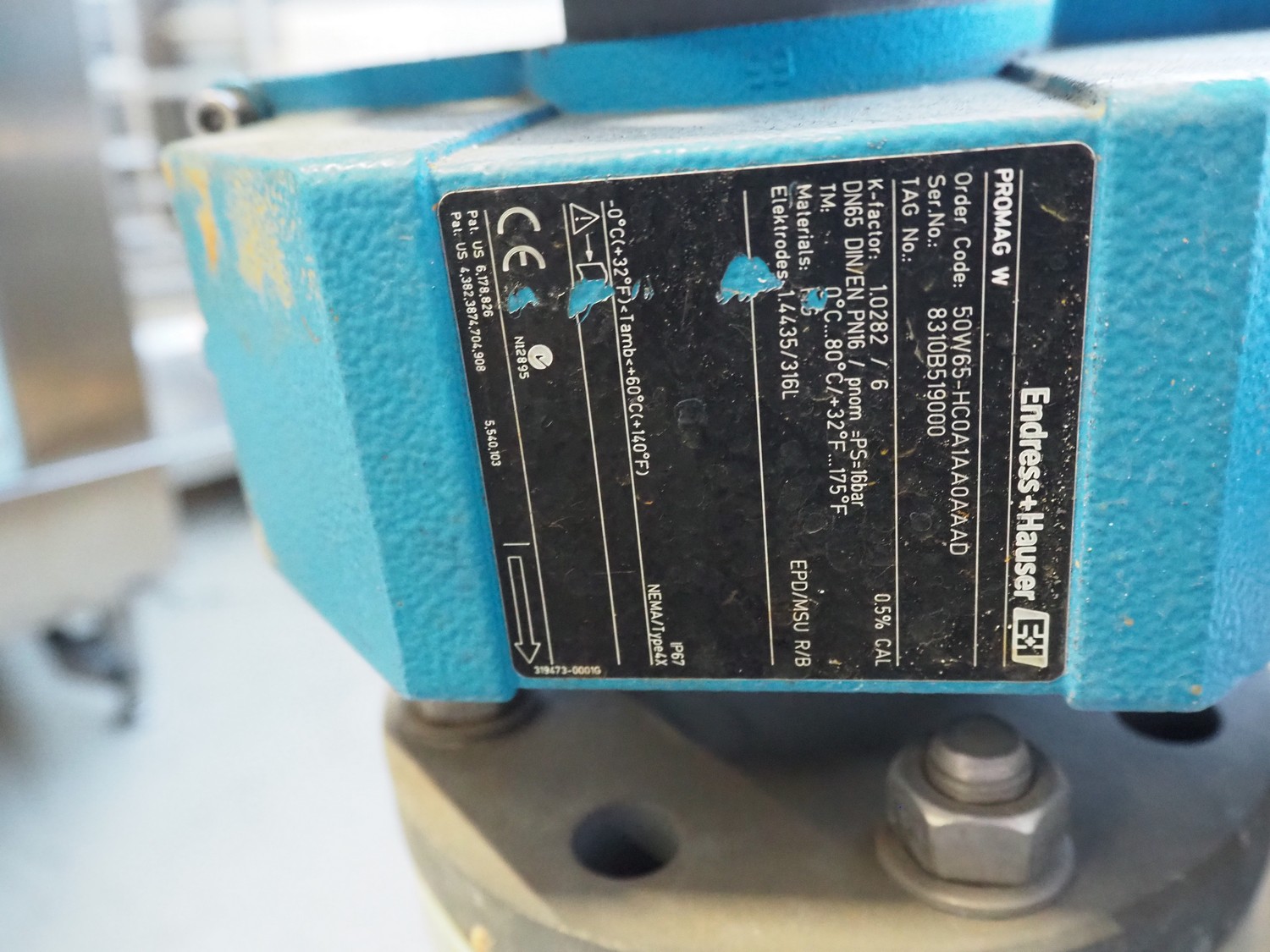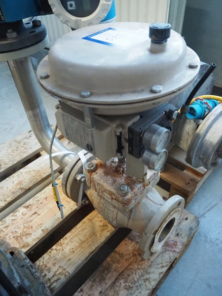 Samson valve with Endress + Hauser flowmeter, total dimensions: 670 mm x 400 mm x 630 mm.