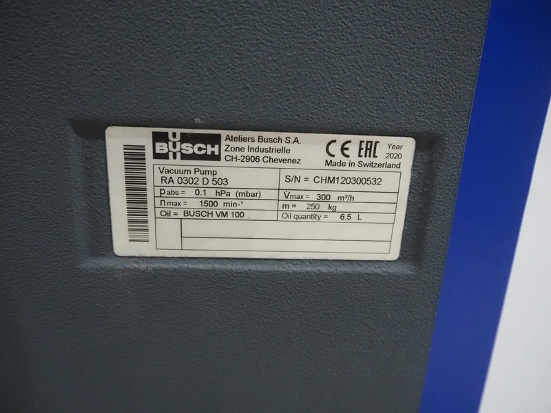 Busch vacuum pump, type: RA 0302 D 503, serial number: CHM120300532, year of construction: 2020, capacity: 300 m³ per hour, dimensions: 1030 mm x 550 mm x 460 mm.
