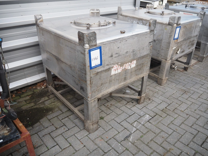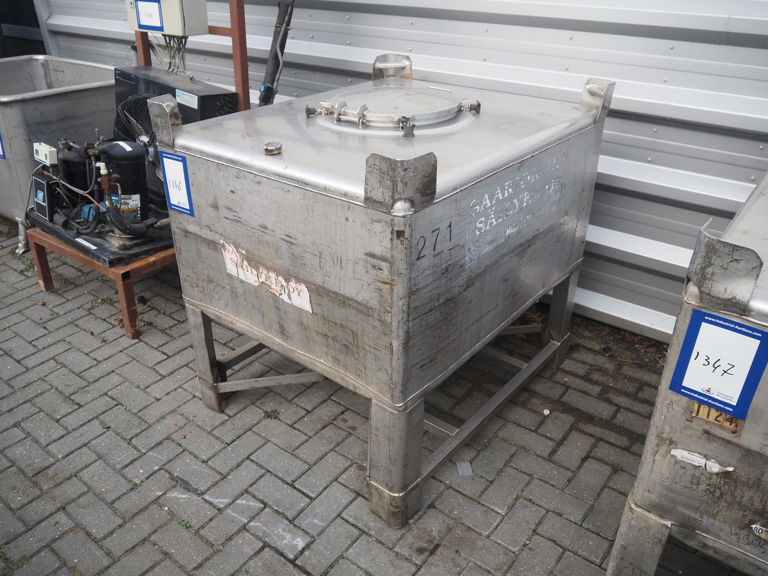Finncont s/s tank, volume: 800 liter, dimensions: 1200 mm x 1000 mm x 1150 mm.