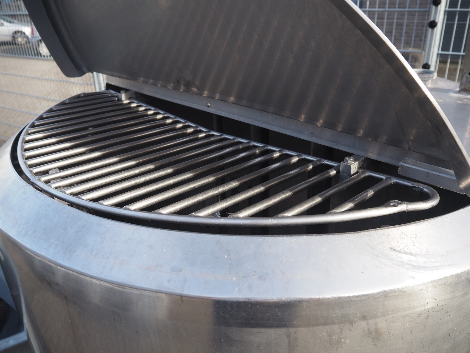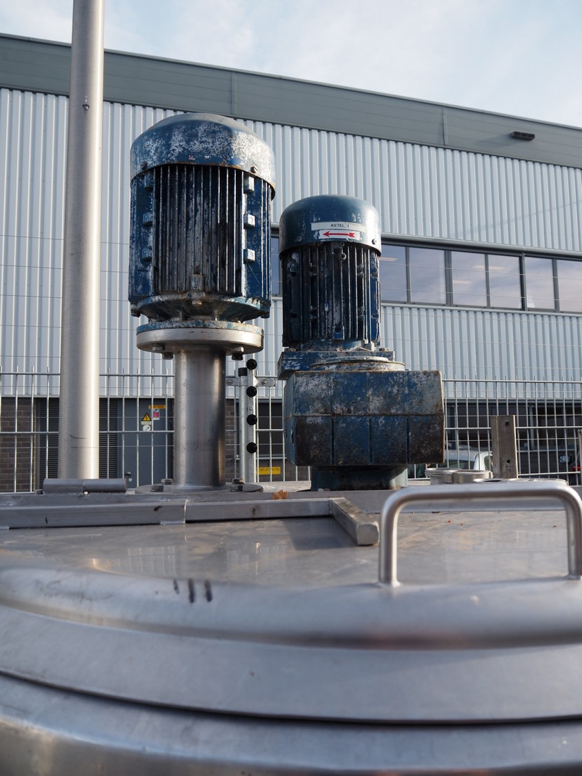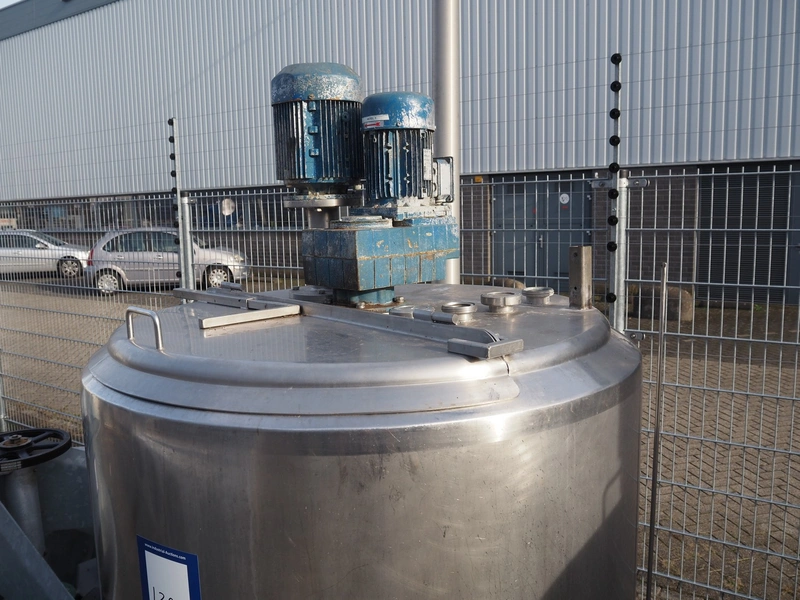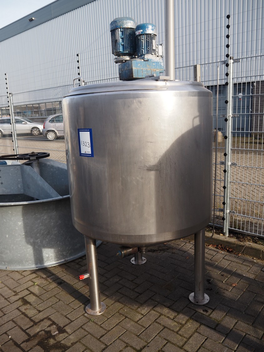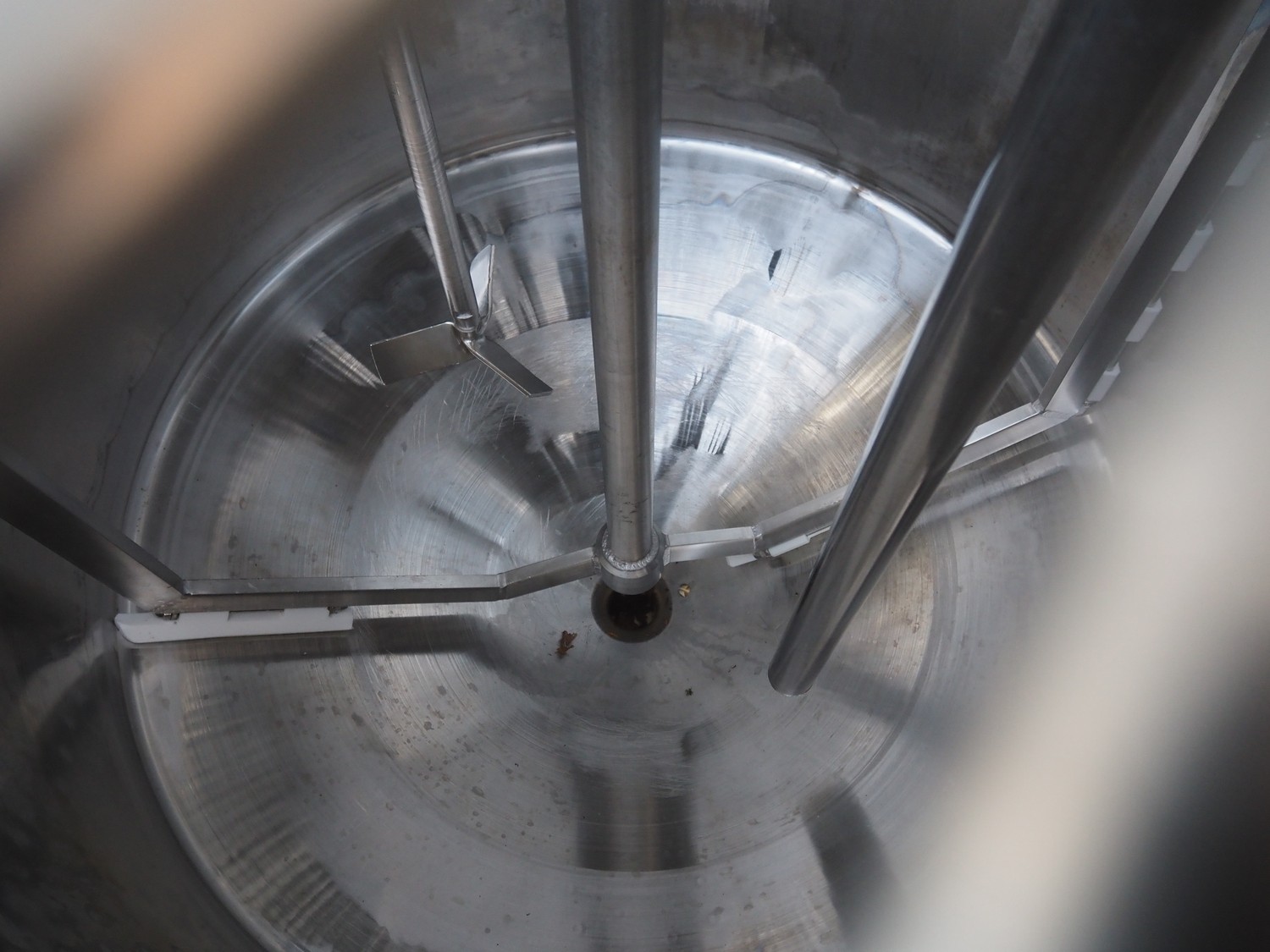 S/s tank with mixing arm and agitator, dimensions: Ø 1250 mm x 2500 mm.