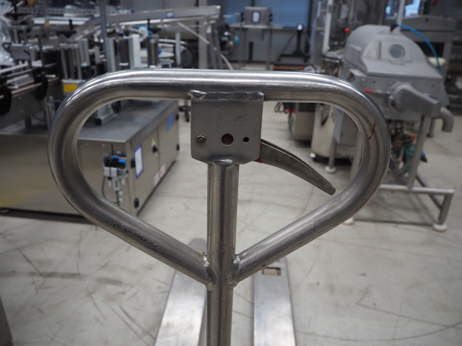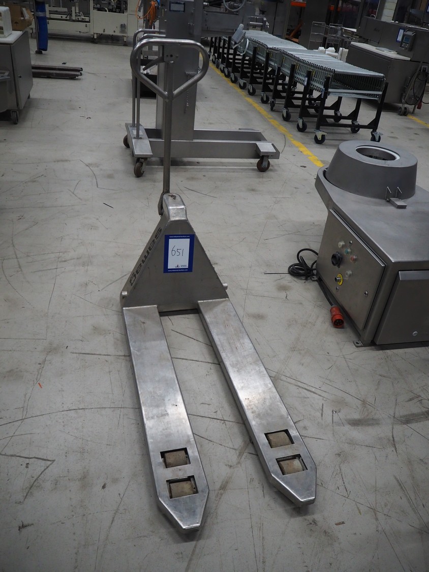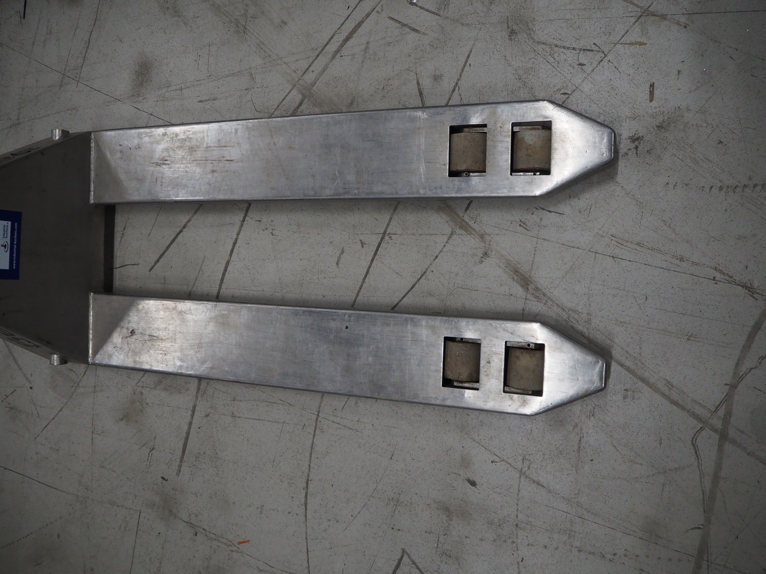 Samag s/s pallet lifter, fork length: 1150 mm, total dimensions: 1450 mm x 470 mm x 170 mm. Defect.